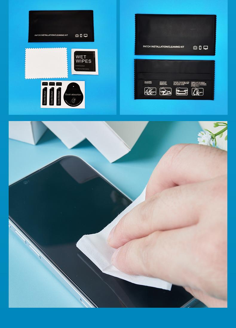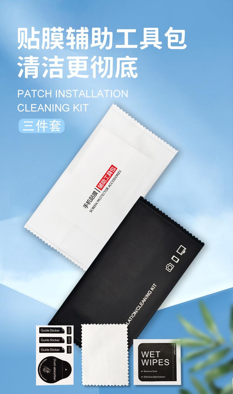 Kit de película para teléfono móvil de tres piezas, kit de limpieza de pantalla de cámara, kit de limpieza de pantalla negra de computadora