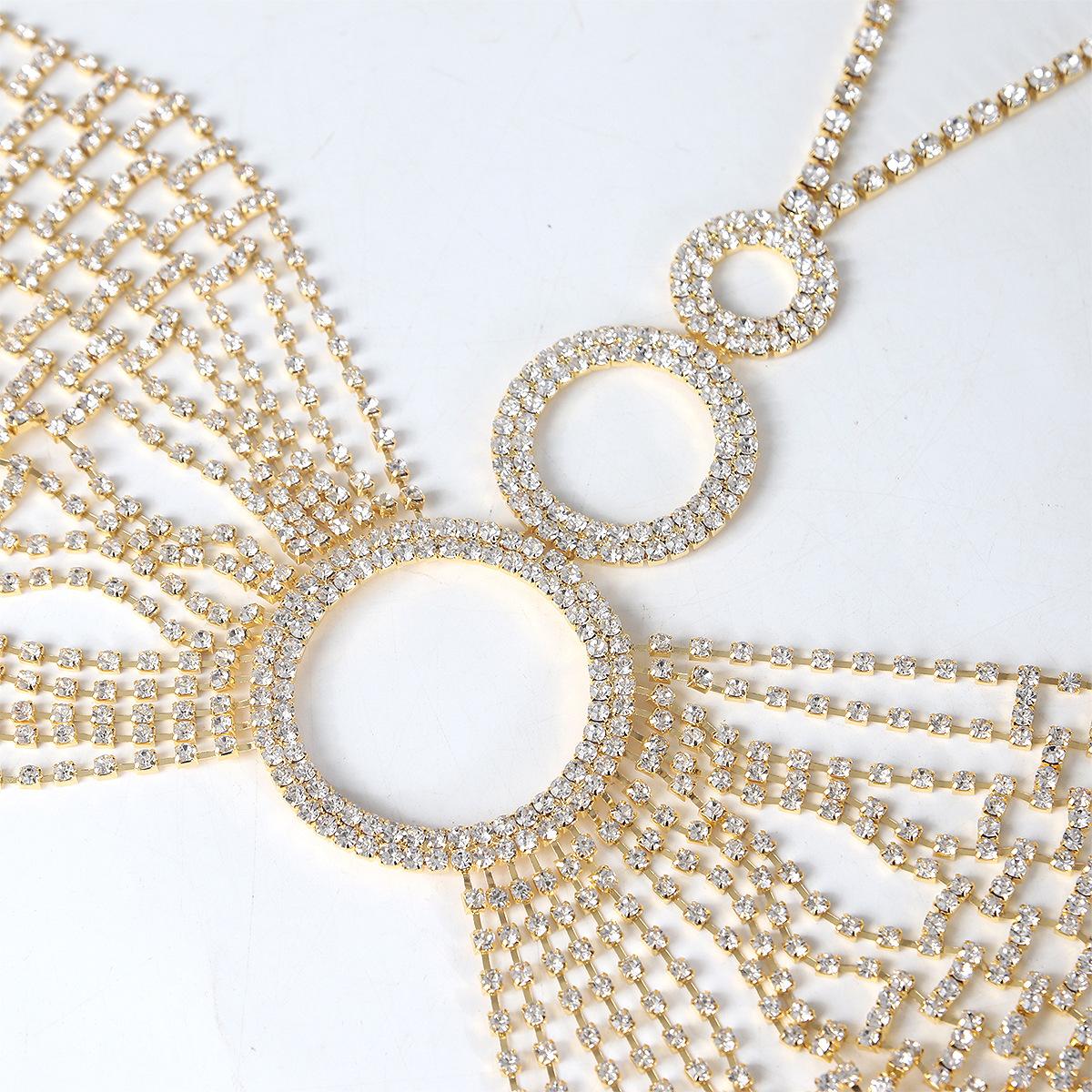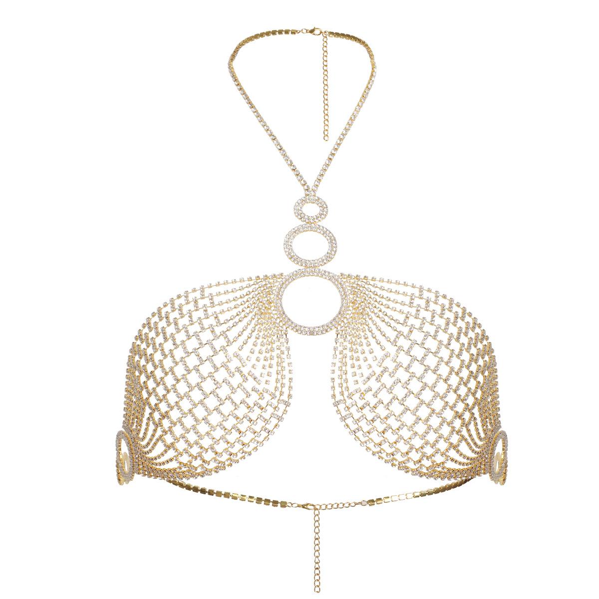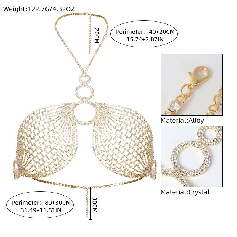Cadena de pecho para mujer, estilo europeo y americano, diseño de moda de playa para discoteca, sujetador de bikini con diamantes de imitación sexy, accesorios de cadena corporal