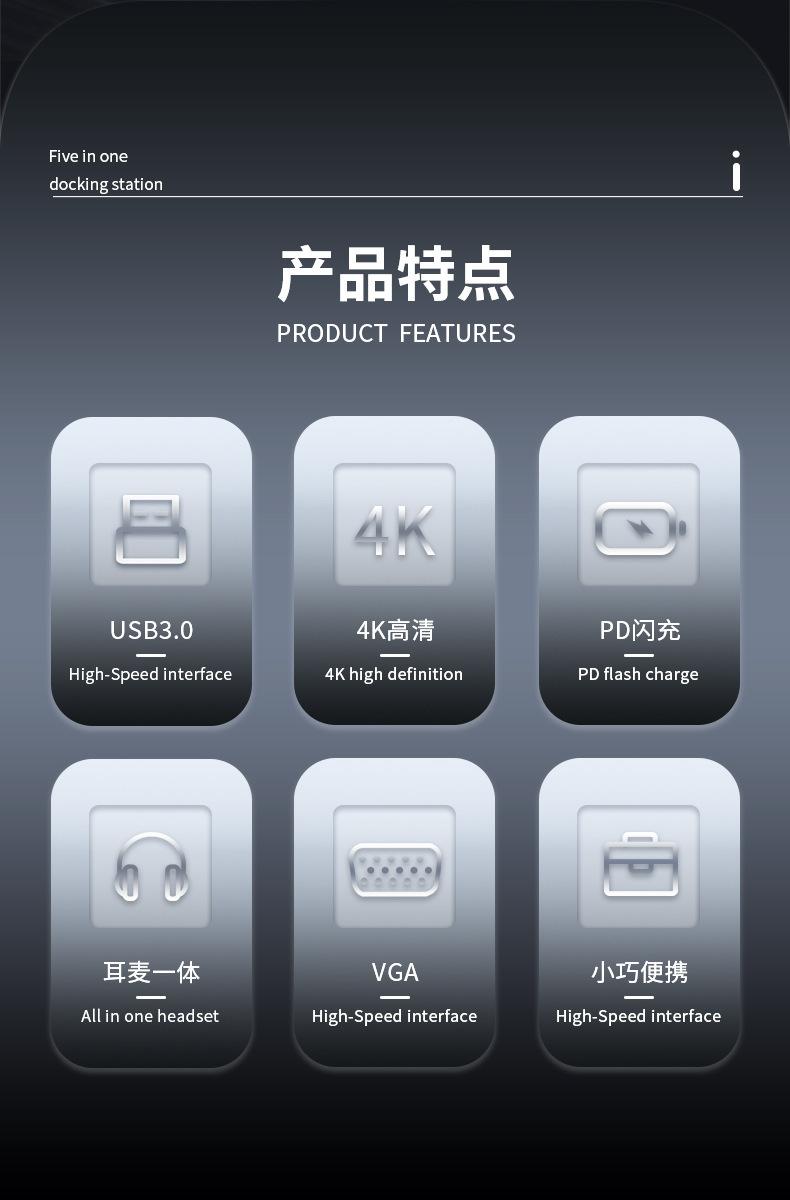 | tipo de base c | concentrador USB | Estación de acoplamiento cinco en uno | Estación de acoplamiento para computadora | Estación de acoplamiento TypeC cinco en uno |