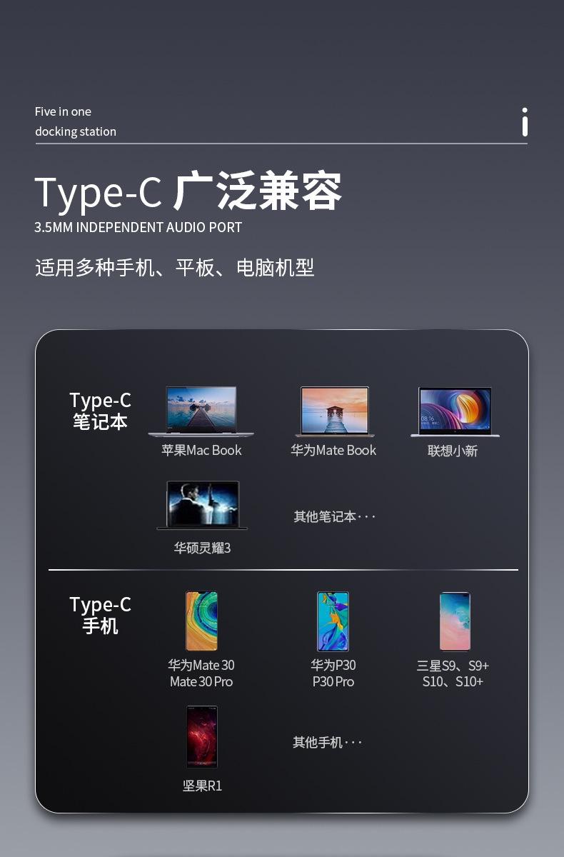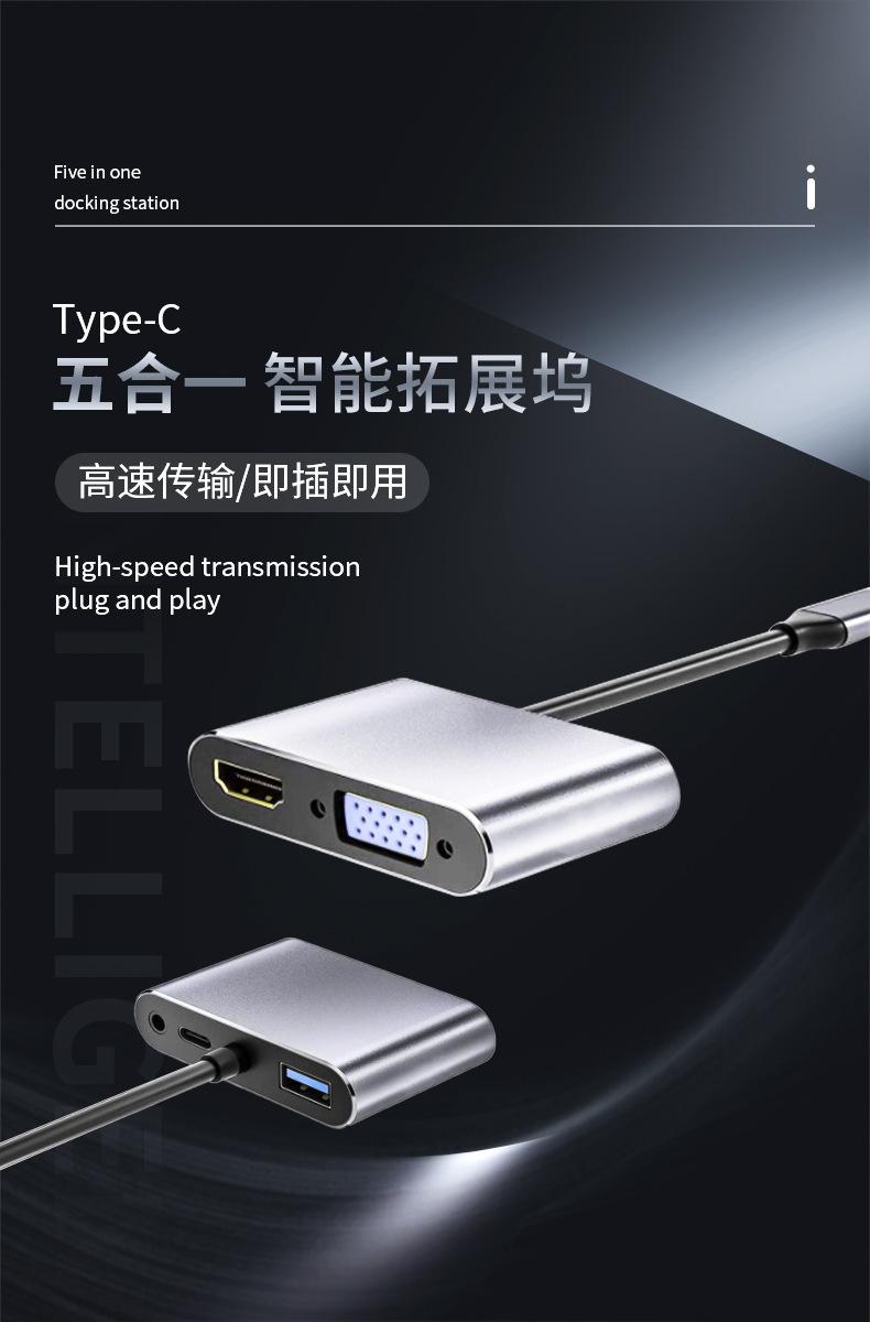 | estación de acoplamiento | USB-Hub | estación de acoplamiento typec | concentrador tipo C | typec cinco en uno |