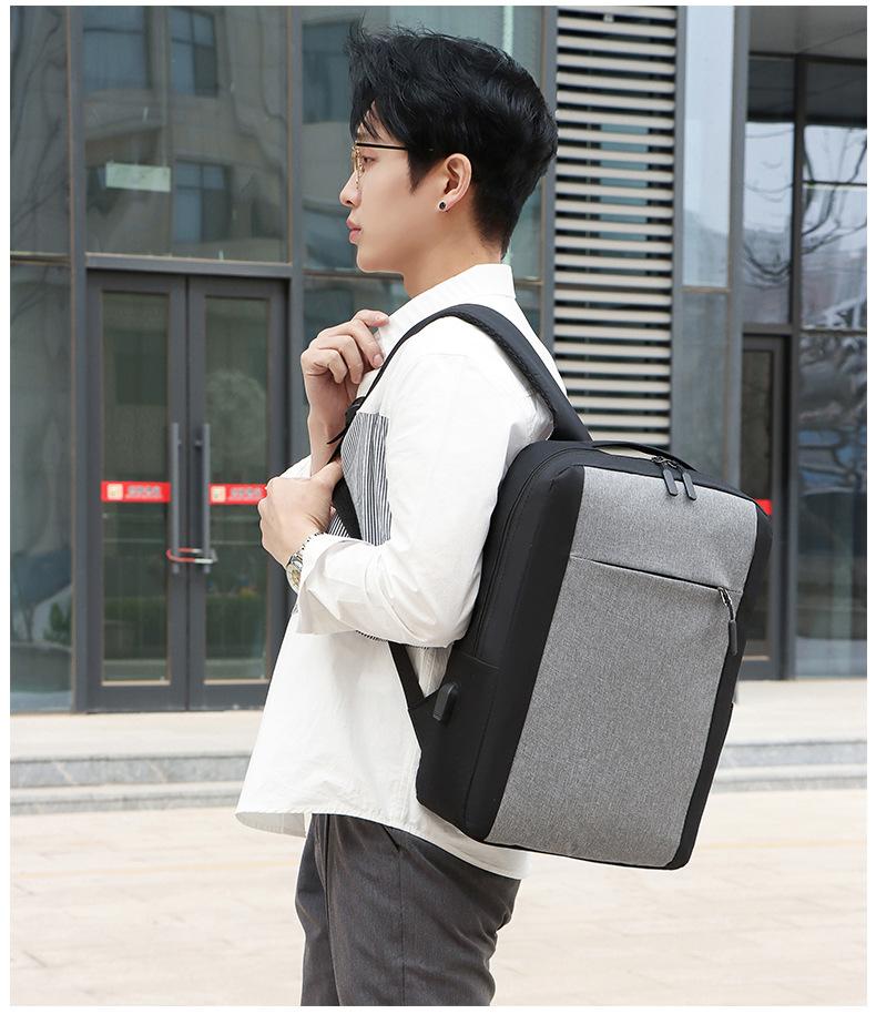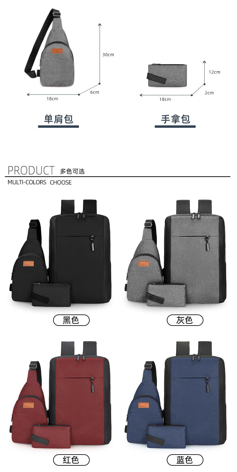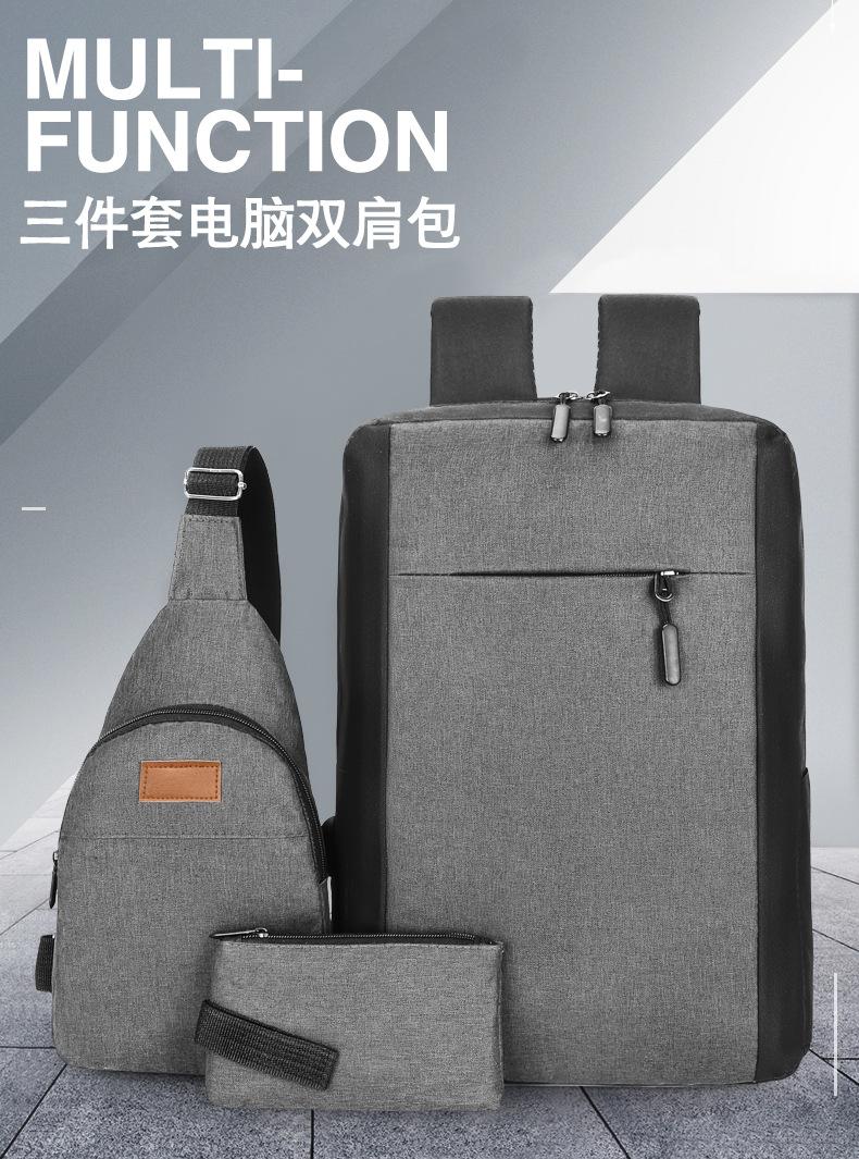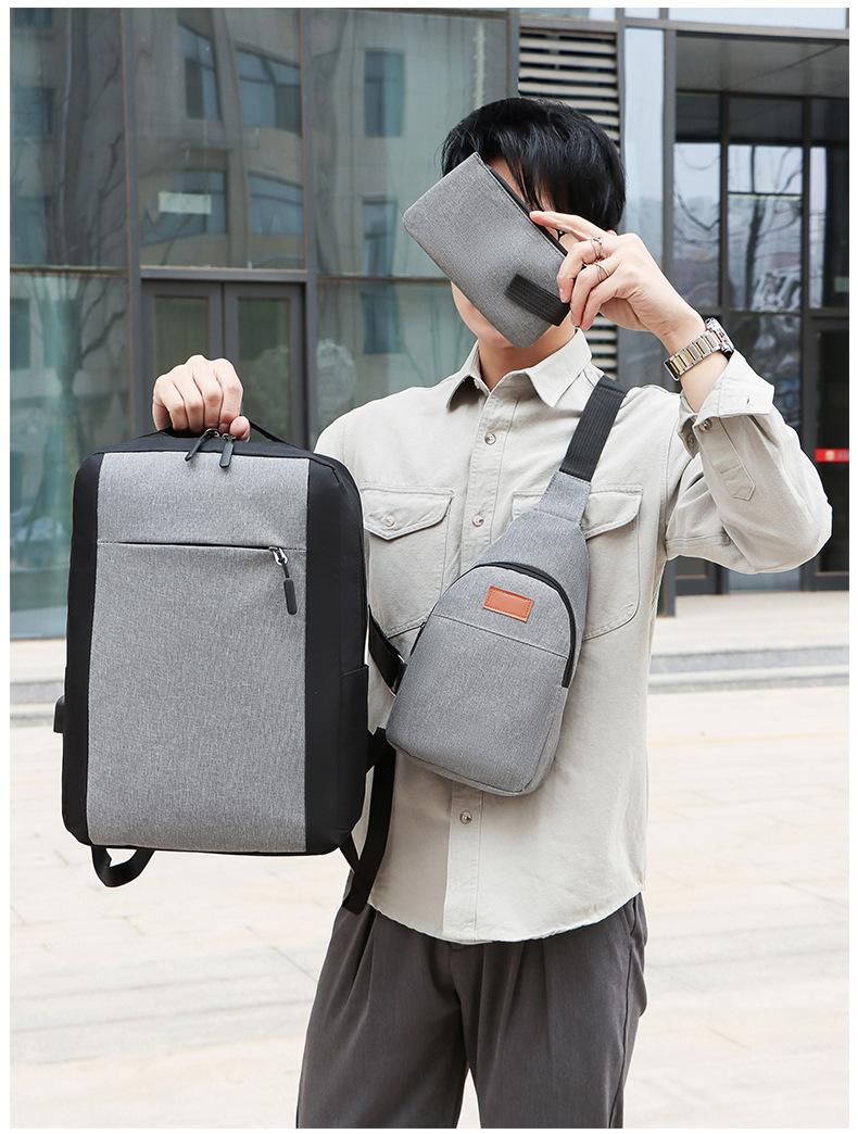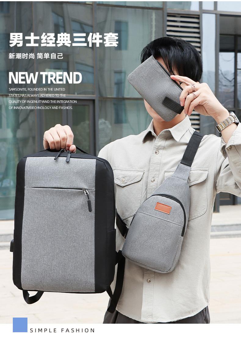 Mochila informal de moda para hombre, sencilla, de tres piezas, de gran capacidad, recargable por USB, para negocios y portátil.