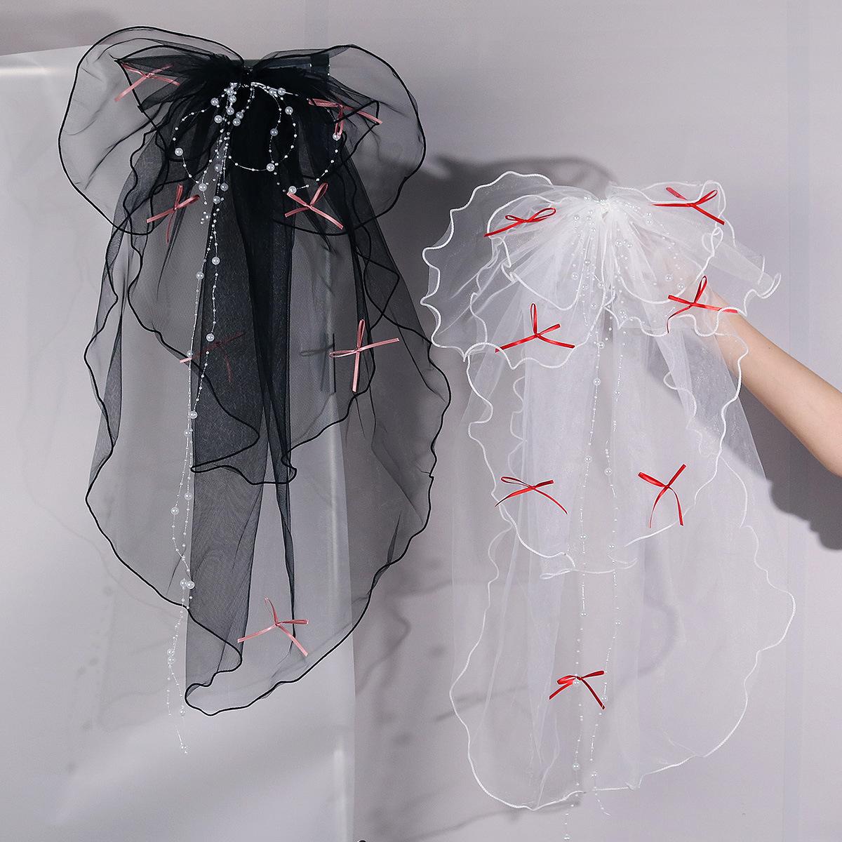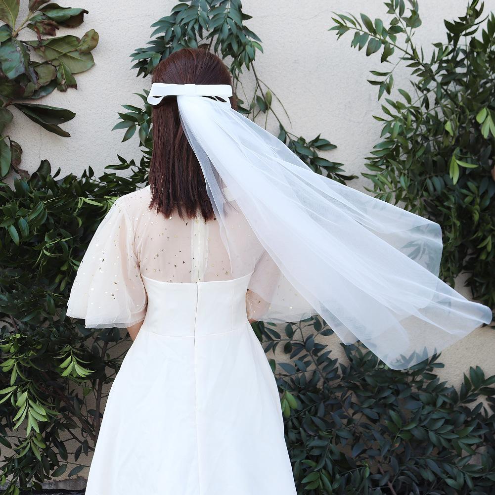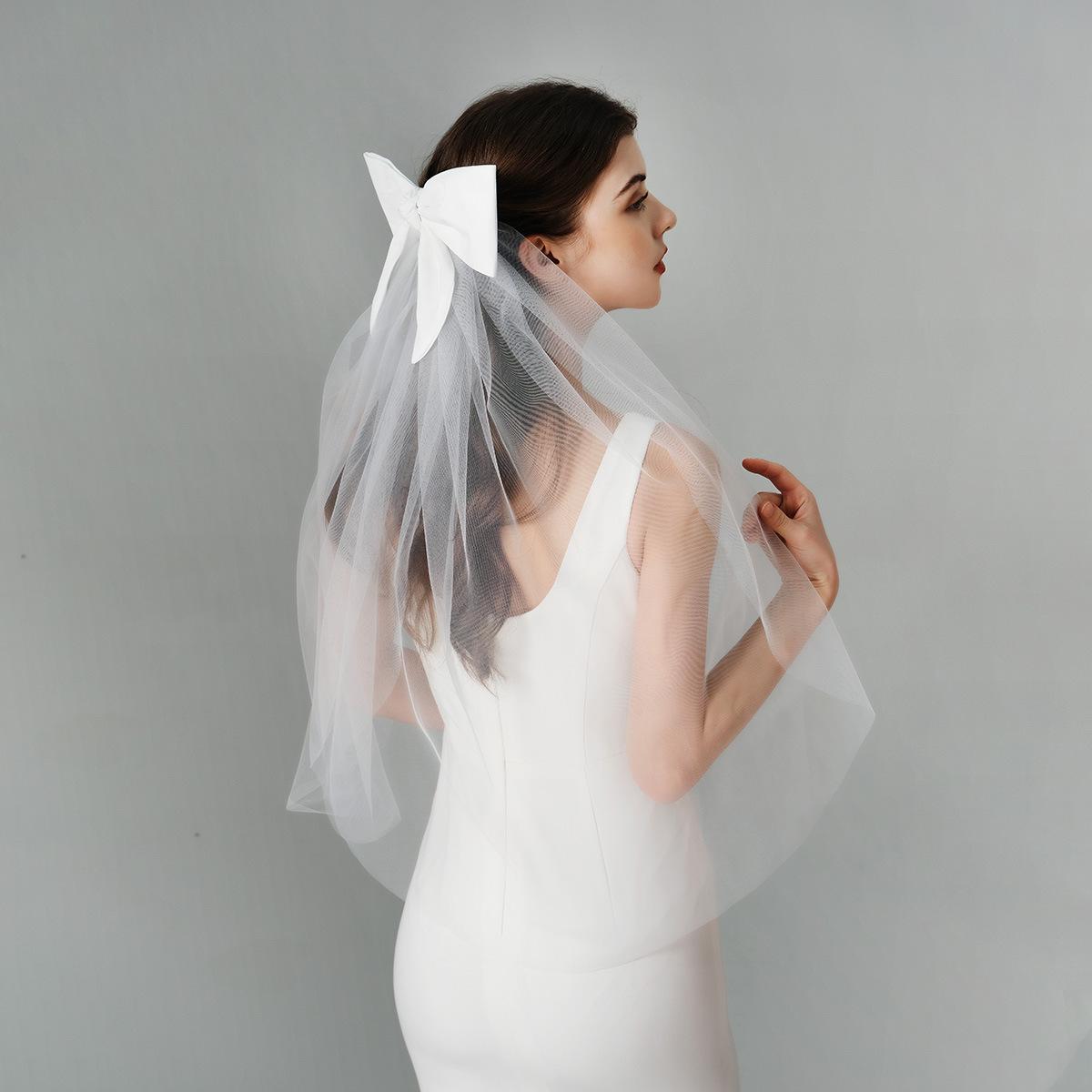 Nuevo Tocado de Boda Transfronterizo Velo Corto Rosa Certificado Lazo Francés Dulce Cinta Velo Nupcial