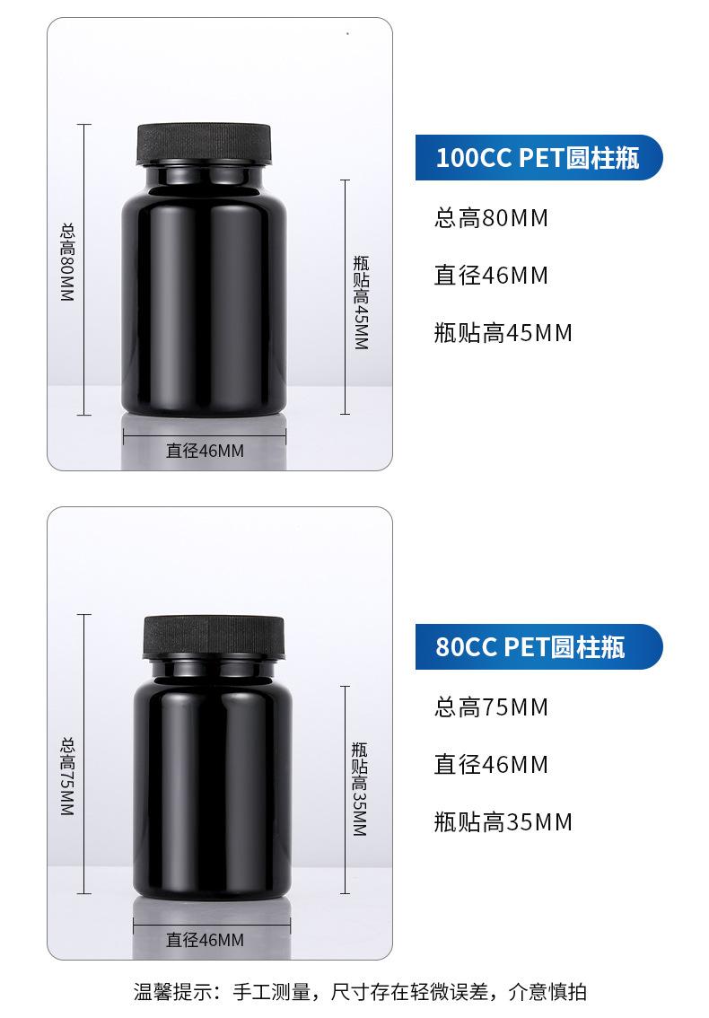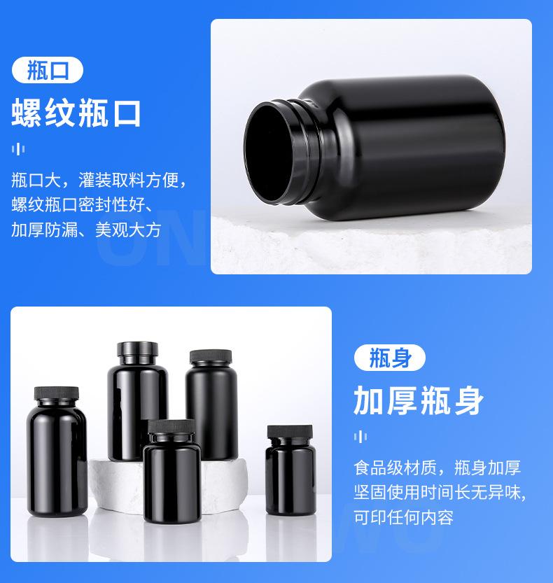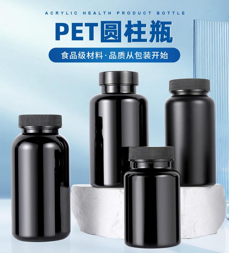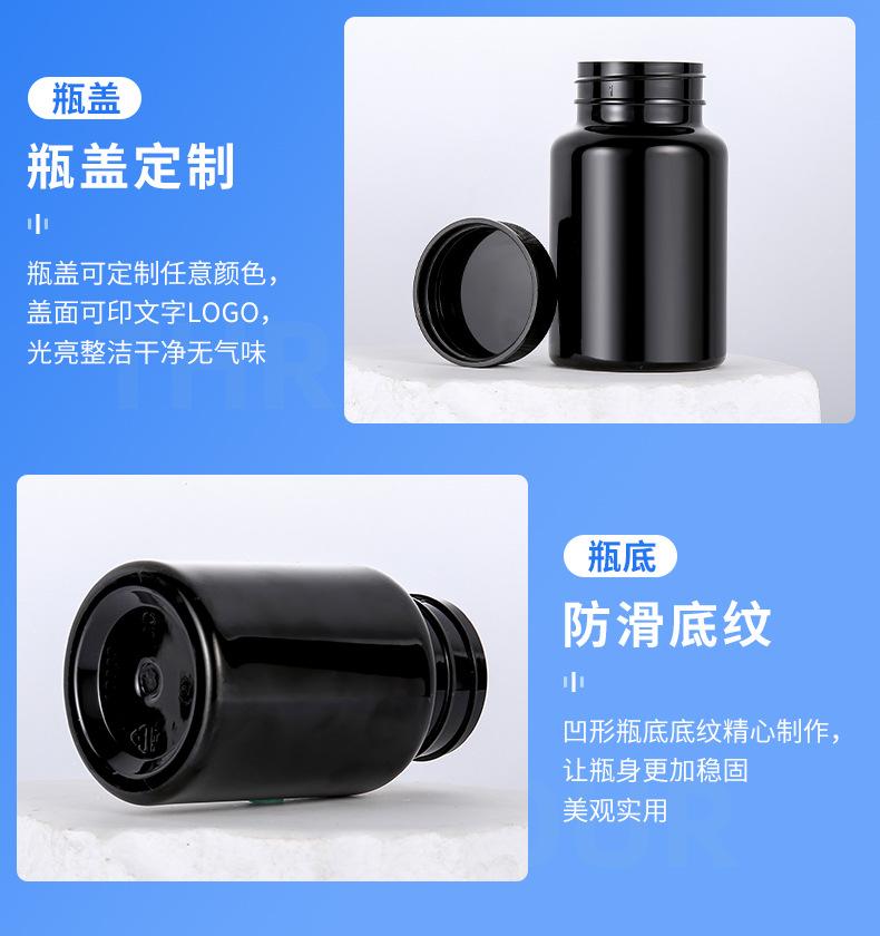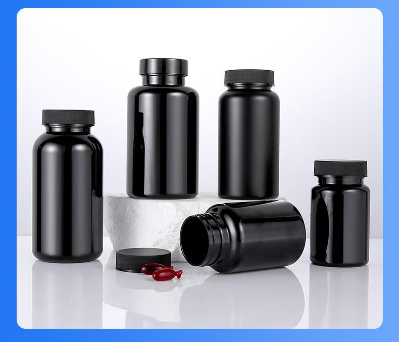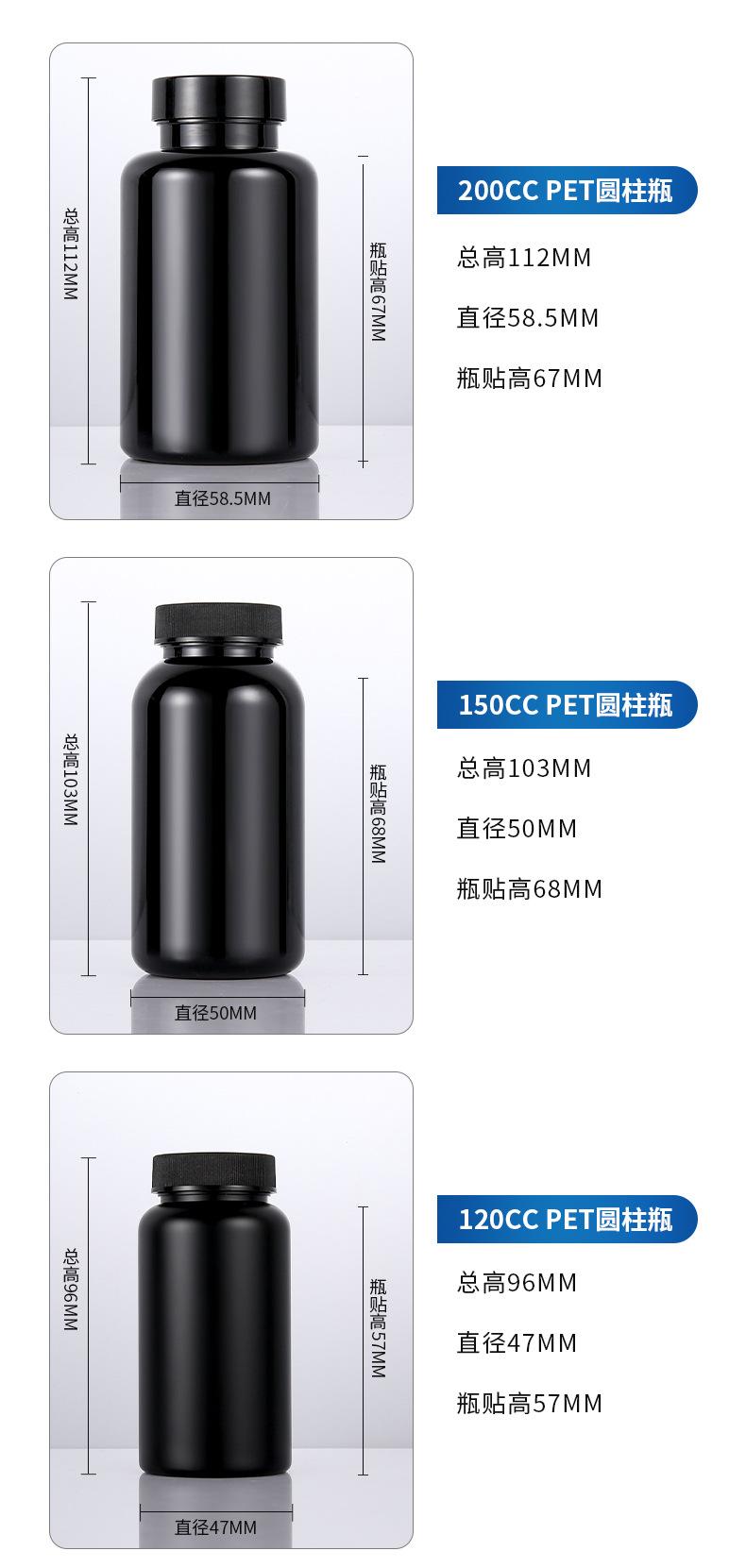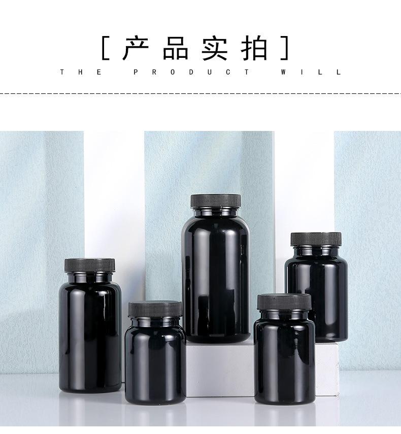 Botella de medicina negra de 100 ml, 120 ml, 150 ml y 200 ml, botella vacía para el cuidado de la salud, botella dividida para mascotas, botella con cápsula