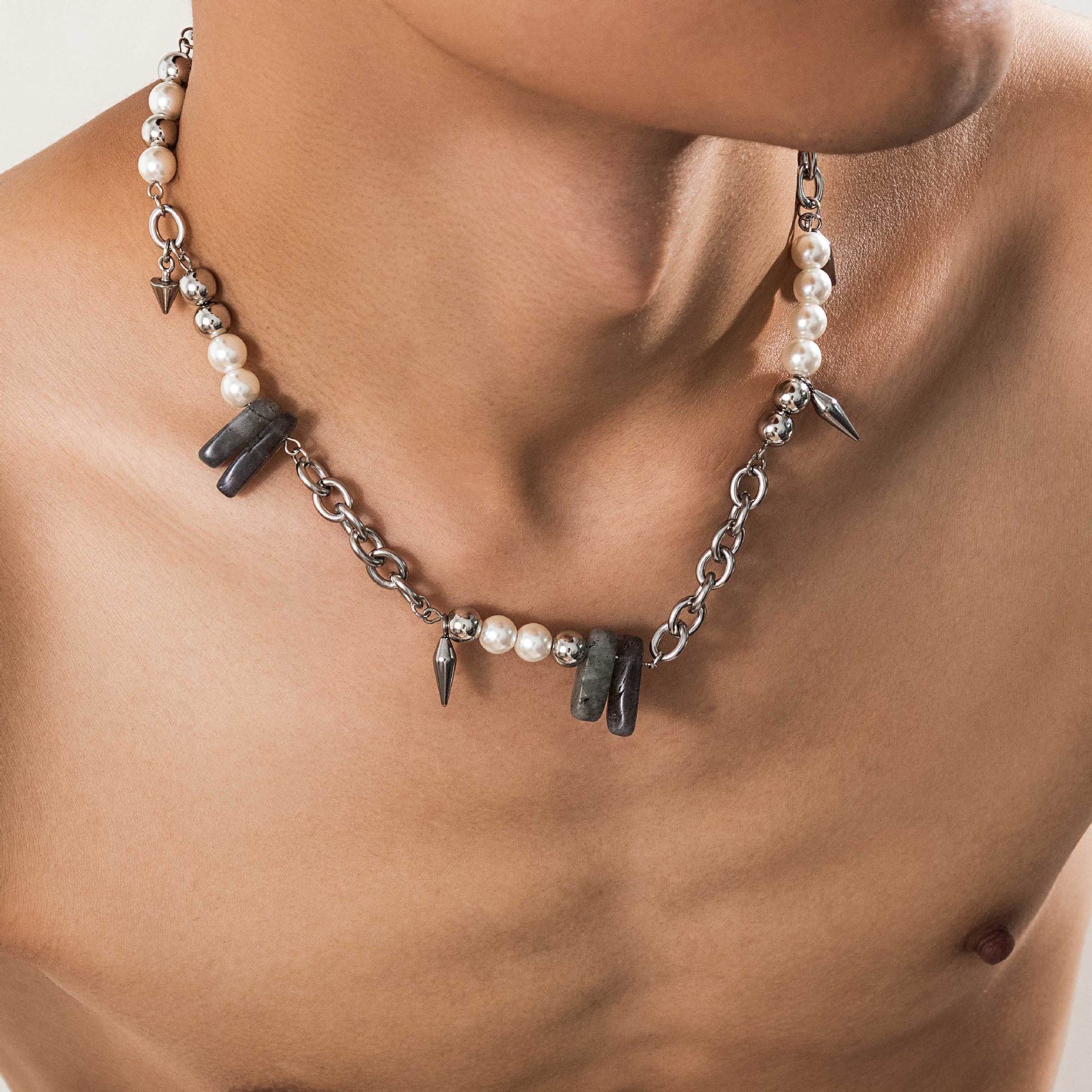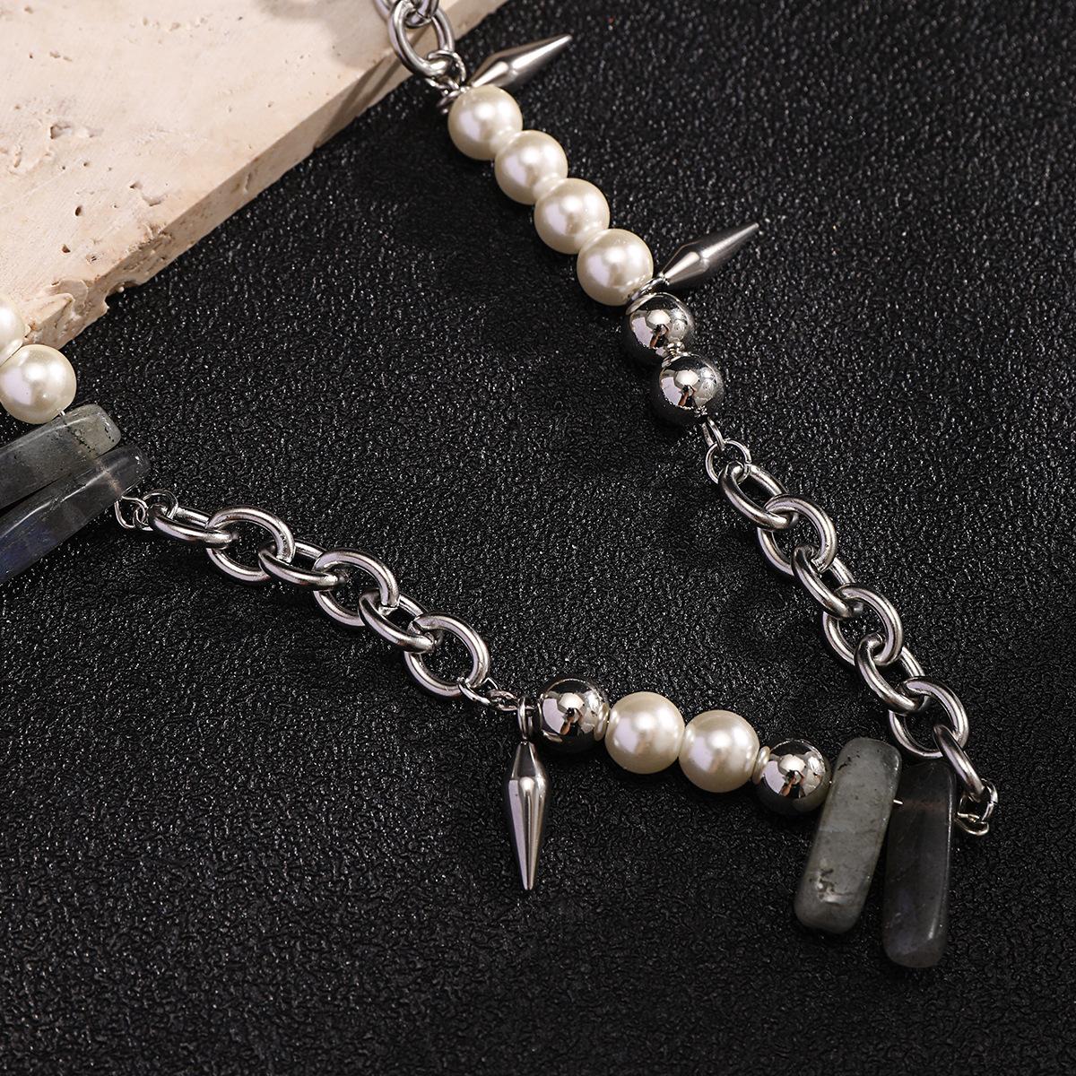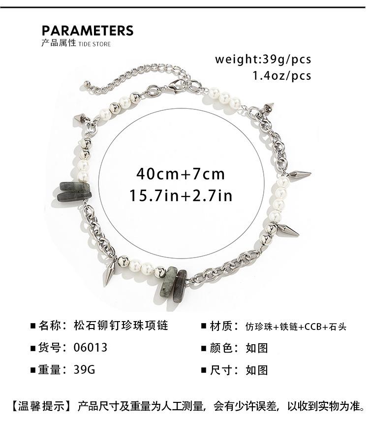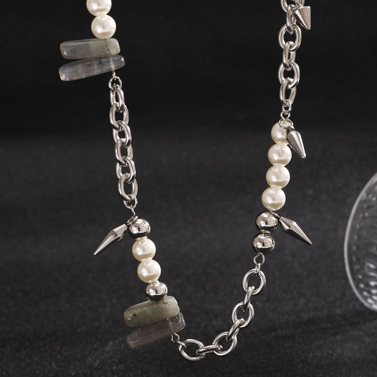 Collar de piedra de perla con costuras que combinan con todo, estilo europeo y americano, para hombre, estilo hip hop, cadena de clavícula con remaches simples de alta calidad.