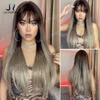 Peluca naranja europea y americana para mujer, cabello castaño rojizo, largo y rizado, con flequillo, fibra química, nuevo producto, mecanismo de cobertura total.