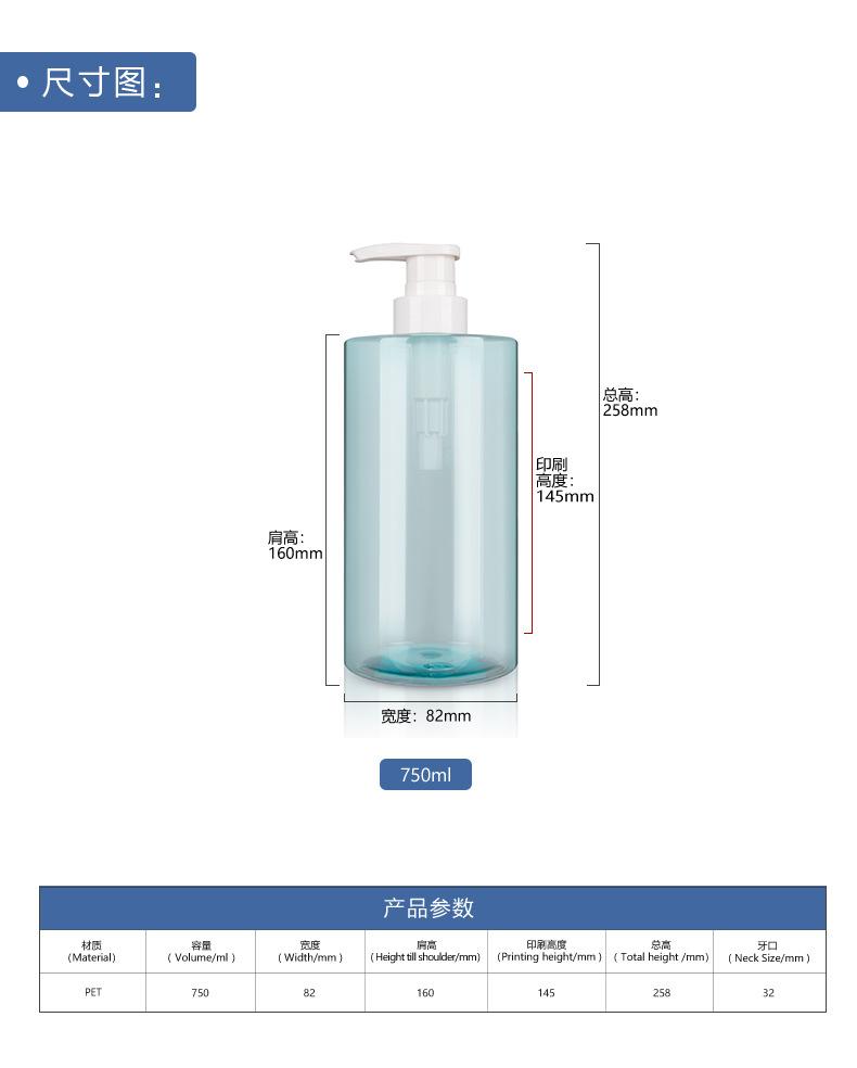 Botella de Plástico PET Personalizada para Mascotas 750ml Botella para Gel de Ducha Loción Corporal Botella para Loción Champú Botella para Champú Personalizable