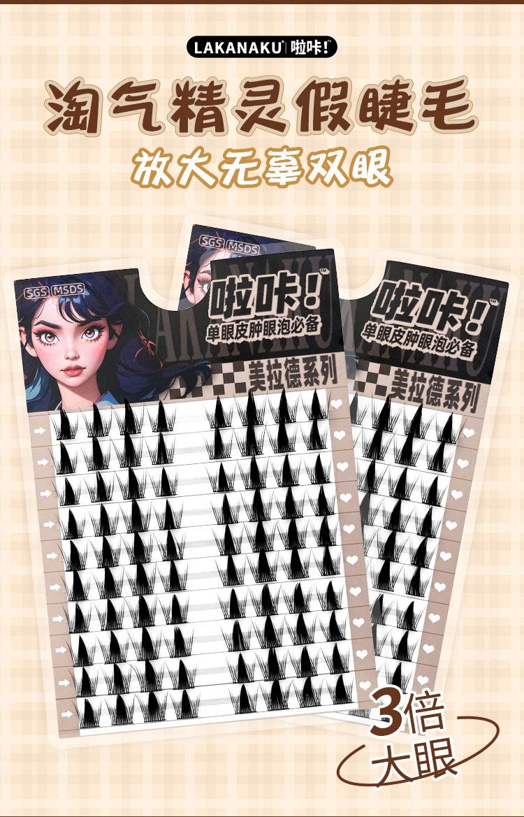 Pestañas postizas gruesas de elfo travieso de gran capacidad, de un solo grupo, segmentadas, de Barbie de dibujos animados, ligeras y perezosas, con espejo europeo y americano.