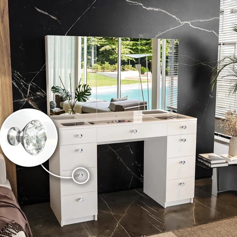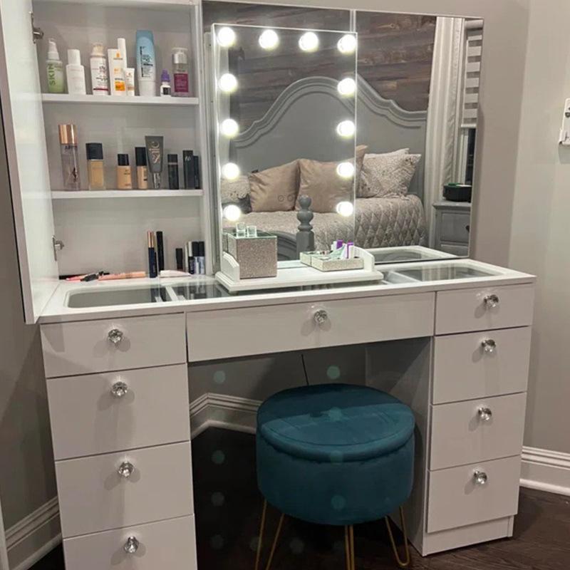 Tocador de Dormitorio de Lujo Ligero Gabinete de Cubeta Simple Hogar Estilo Crema Mesa de Maquillaje Moderno Simple Blanco Gabinete de Maquillaje de Estudio