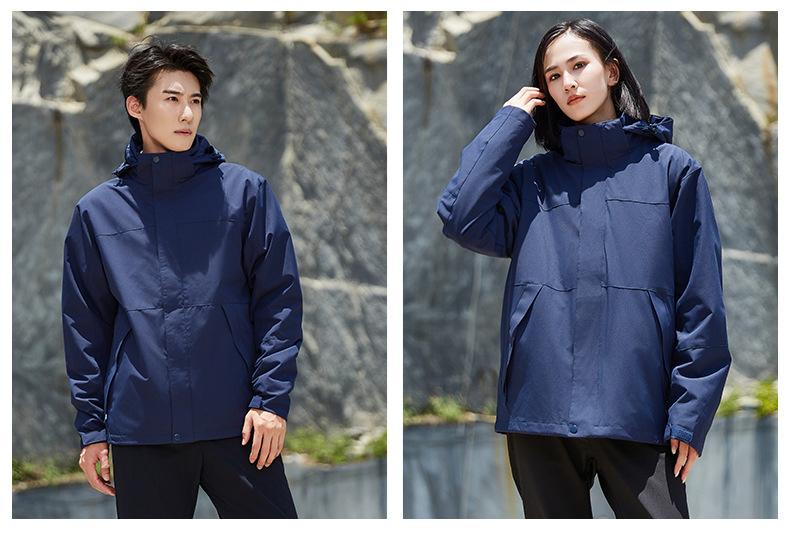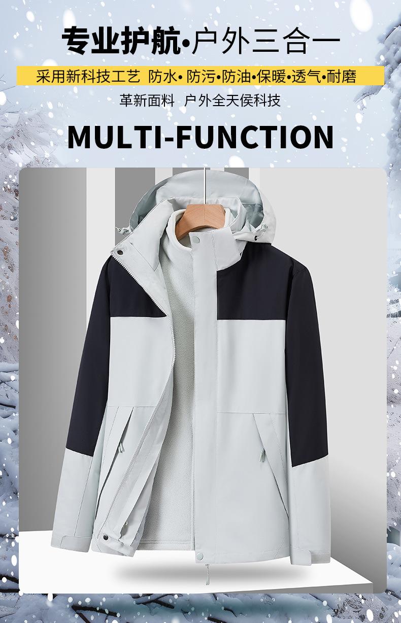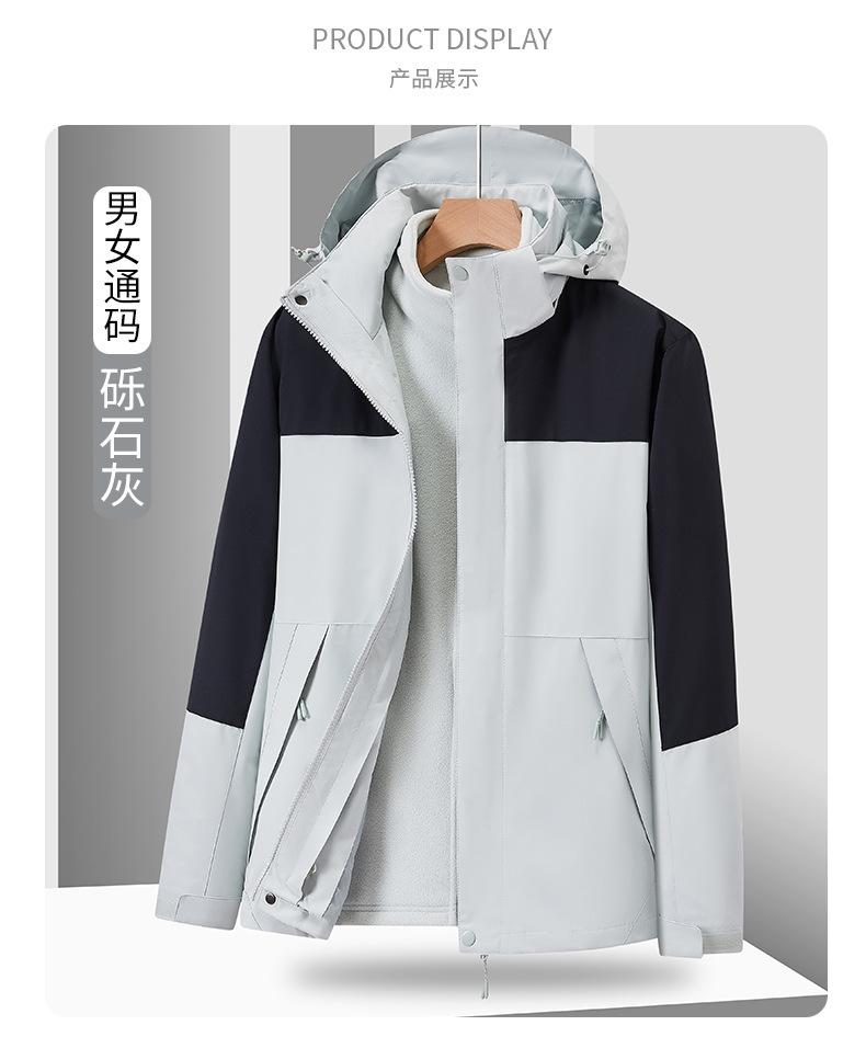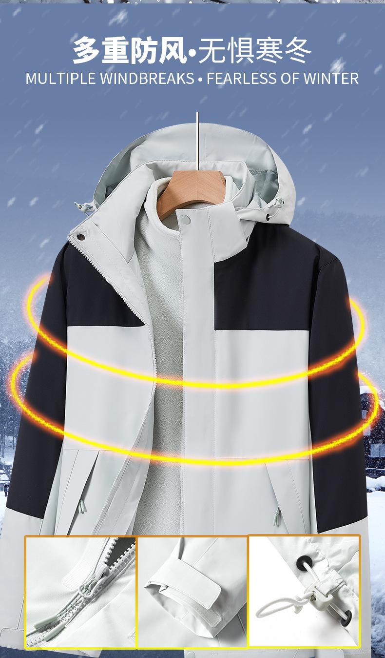 Ropa de asalto para exteriores de otoño e invierno, personalizada, tres en uno, desmontable, de dos piezas, para hombre, ropa de montañismo cálida para mujer, disponible en stock