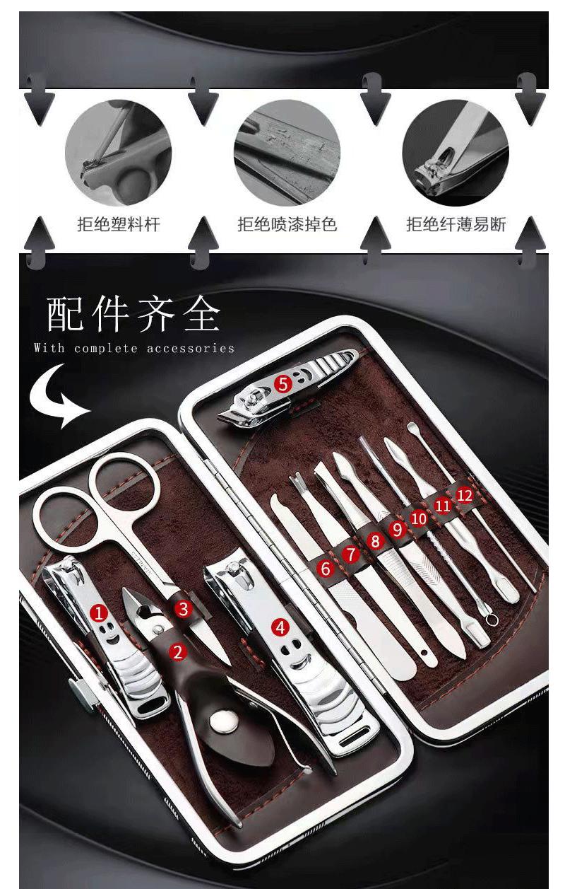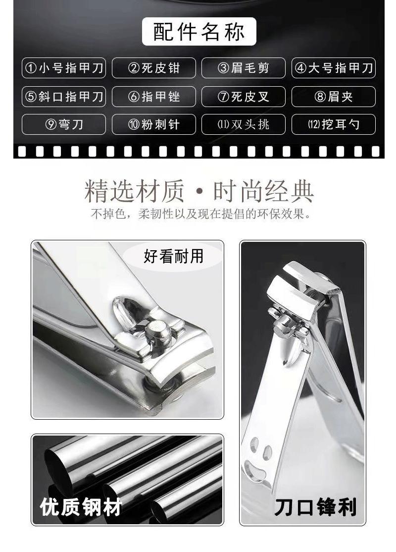 Set de Cortauñas de Acero Inoxidable de 12 Piezas de Fábrica Herramientas de Belleza para Manicura Set de Manicura Herramientas