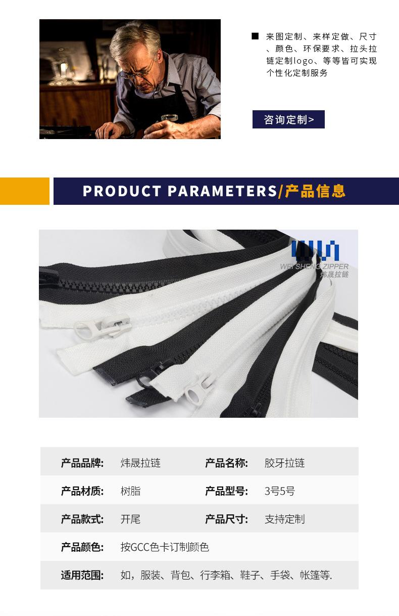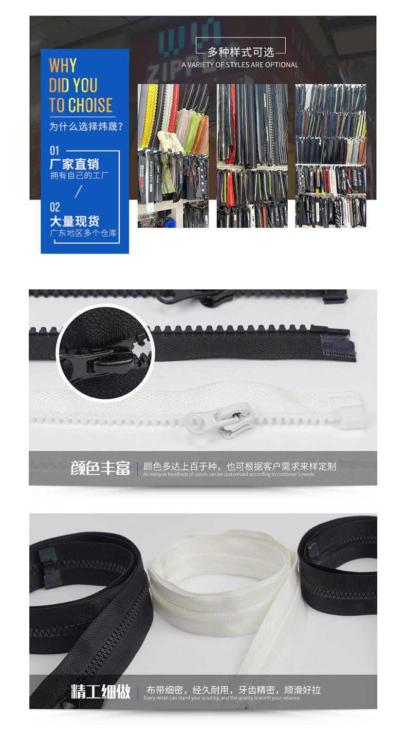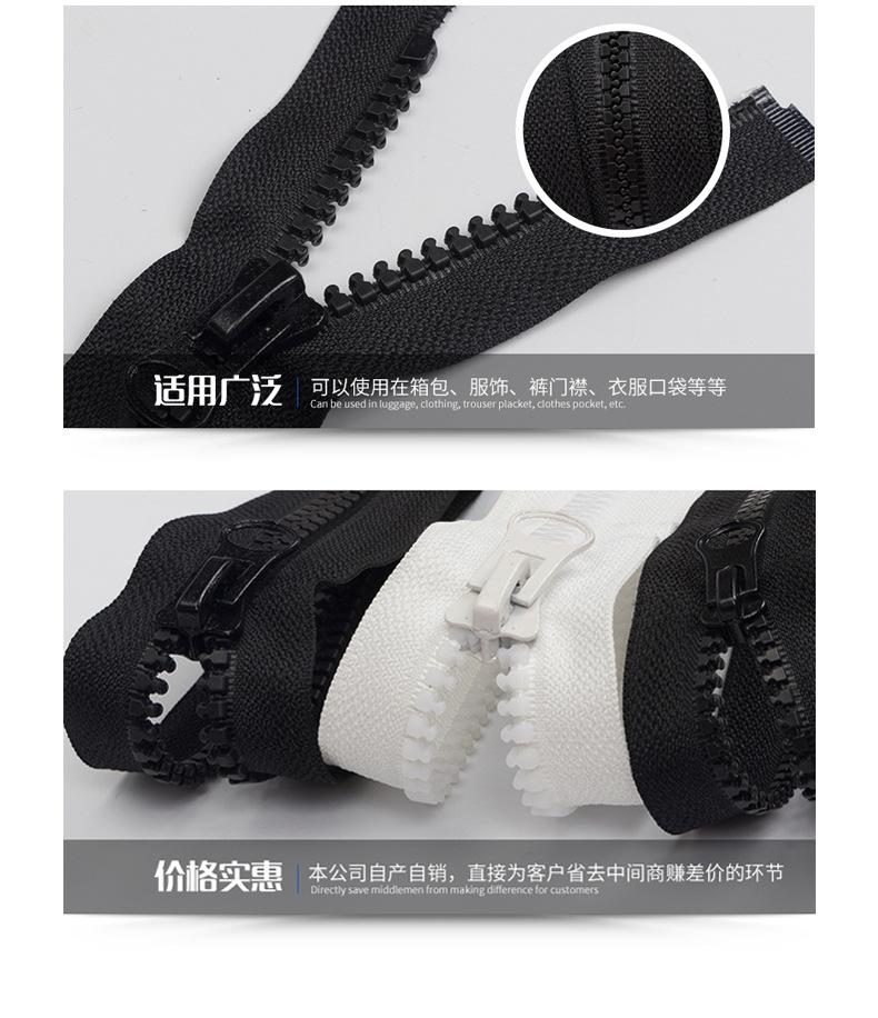 Fabricante de cremalleras No. 5 jaladeras de cremallera de resina arriba y abajo cremallera autoblocante cremallera de cola abierta cremallera de diente de goma cremallera de plástico para ropa hacia abajo