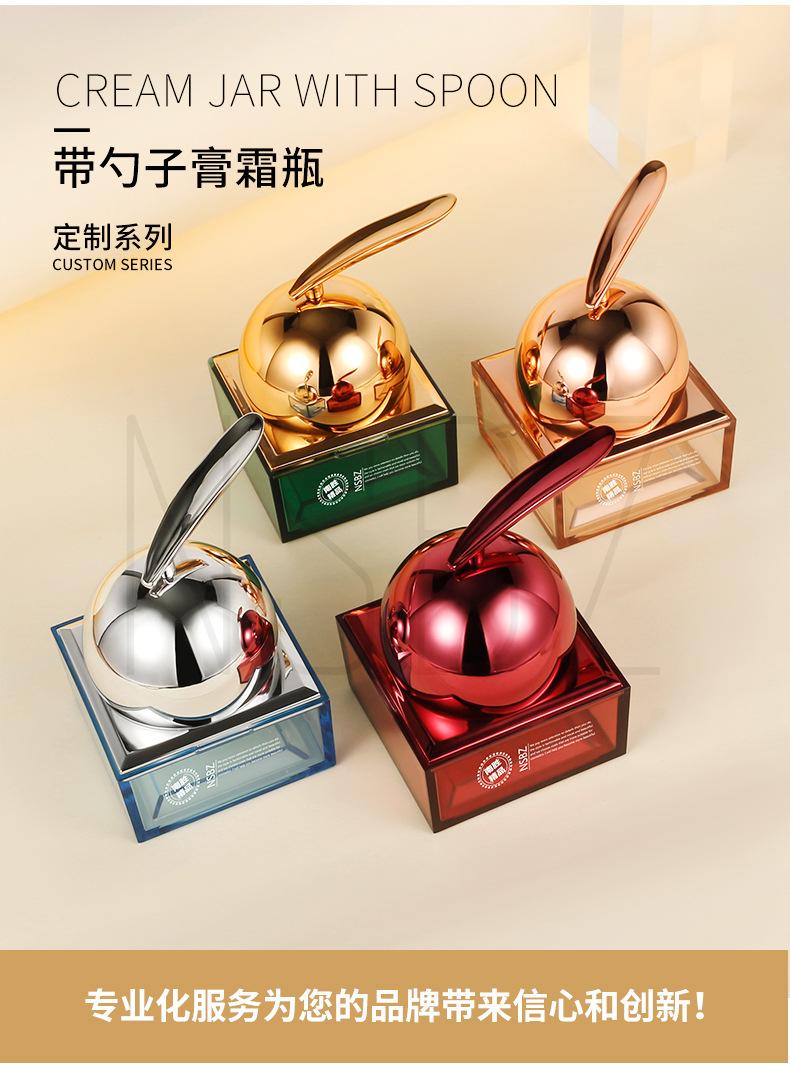 Botella de crema acrílica con bola redonda y succión magnética para crema facial con cuchara, material de embalaje para crema cosmética para ojos, botella de acrílico.