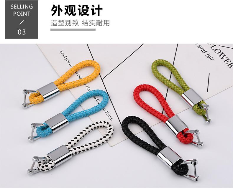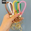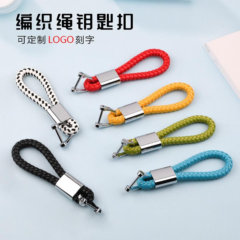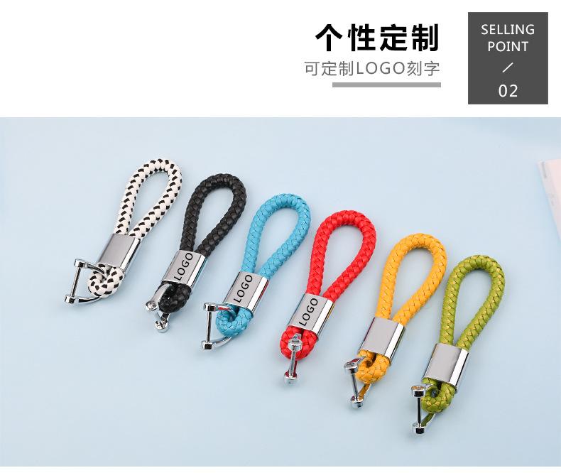 Llavero creativo de cuerda de cuero trenzado para muñeca, colgante sencillo para llave de coche, llavero de metal con forma de herradura, pequeño regalo