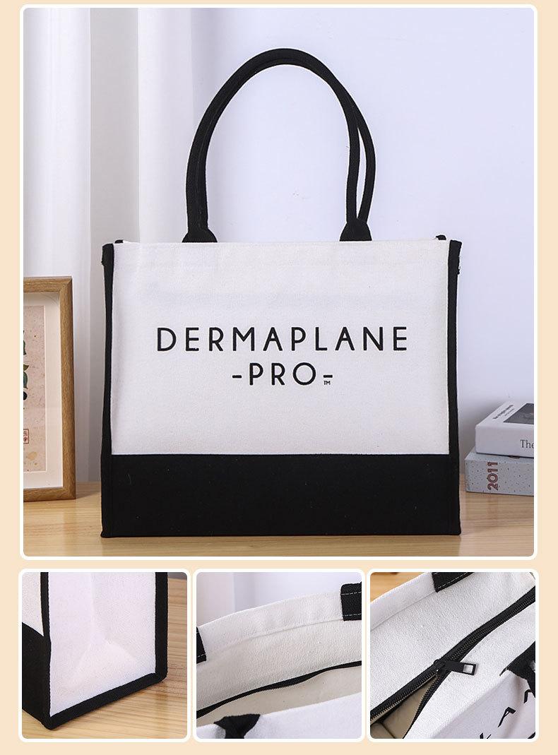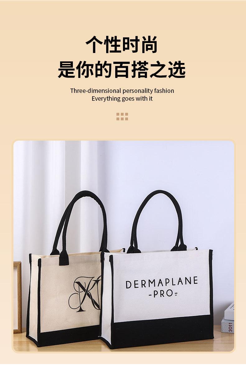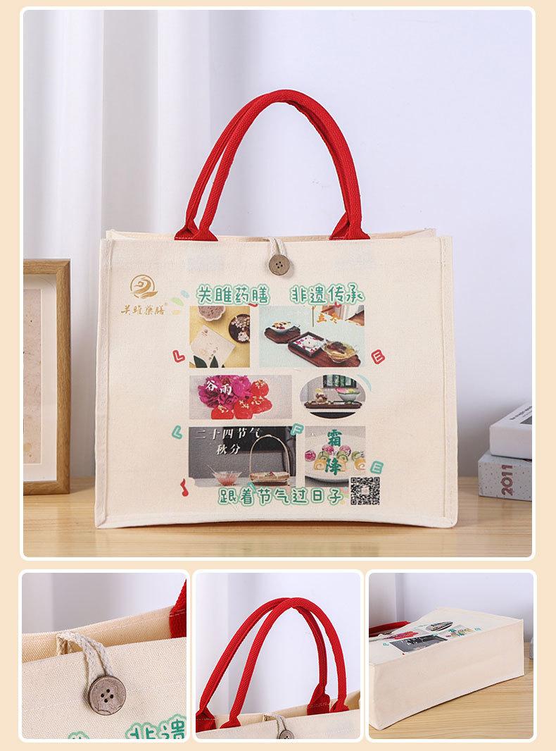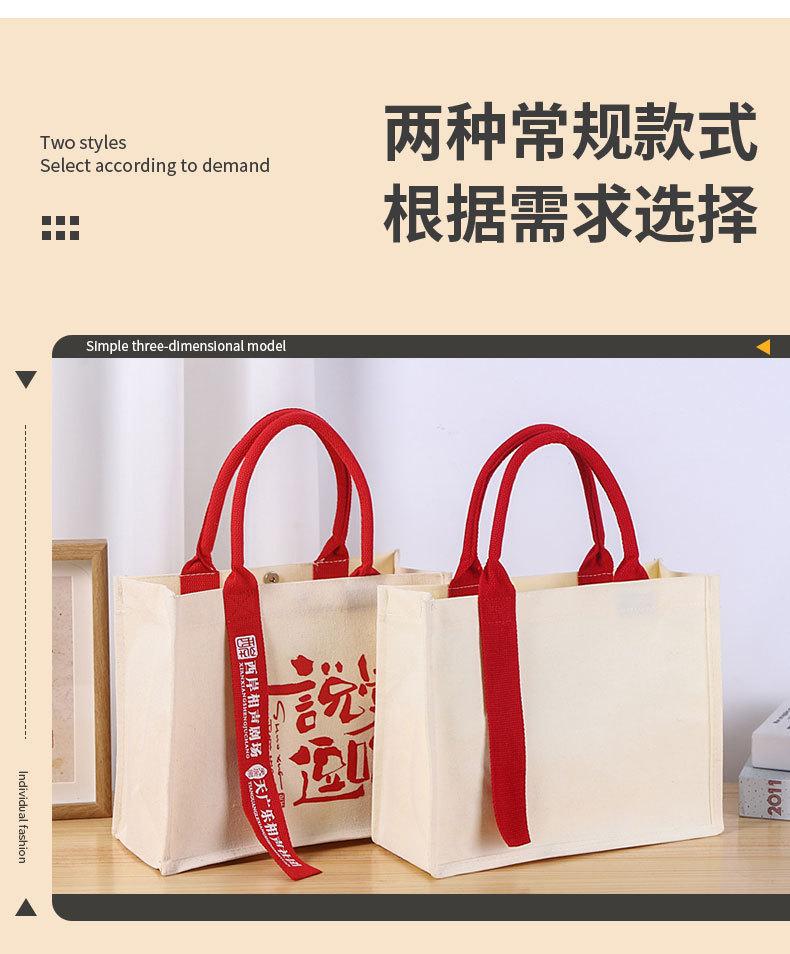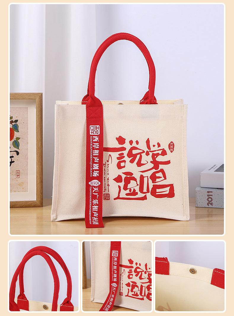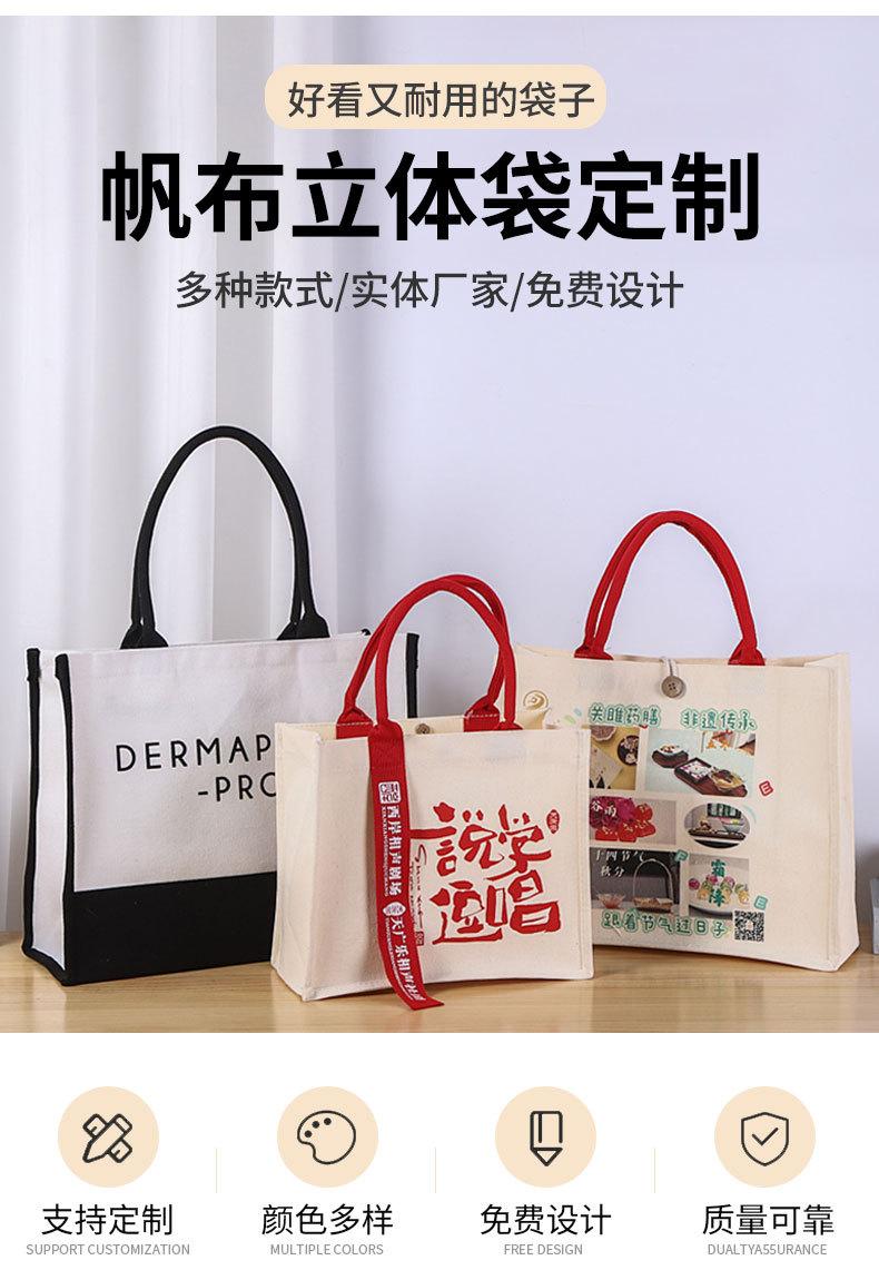 Bolsa de lona laminada con logotipo personalizado impreso, bolsa de lona estéreo publicitaria, bolso de mano de lote pequeño con correa