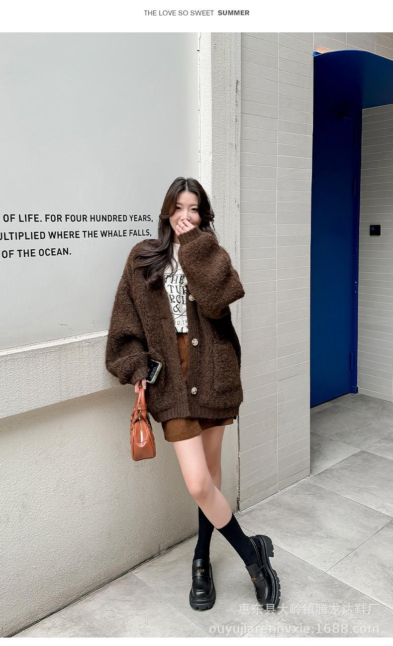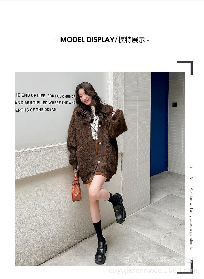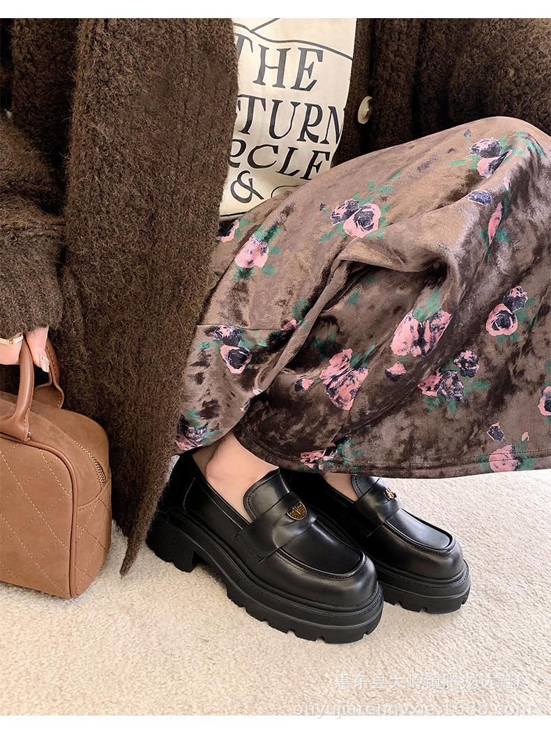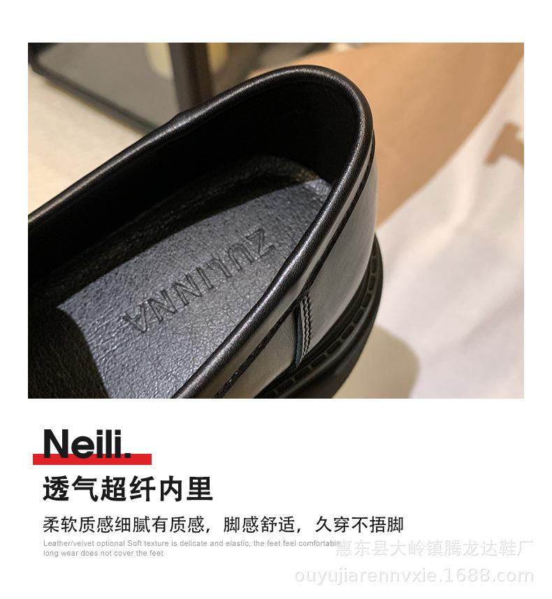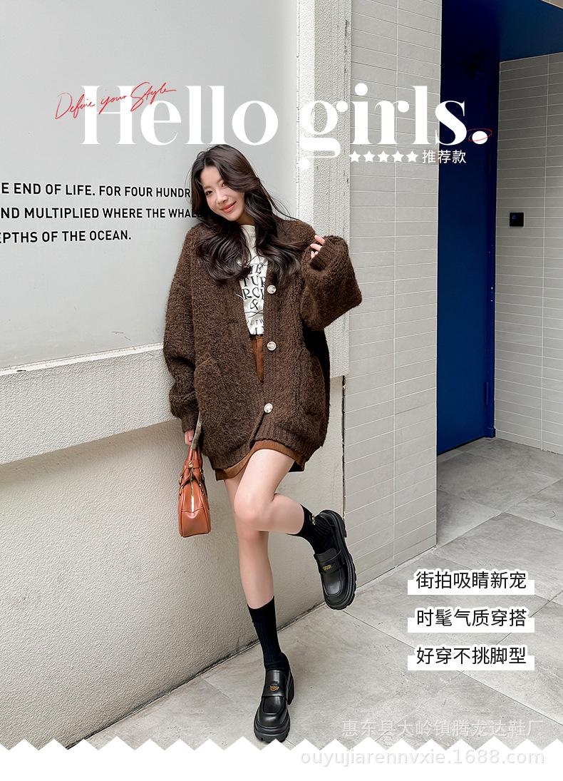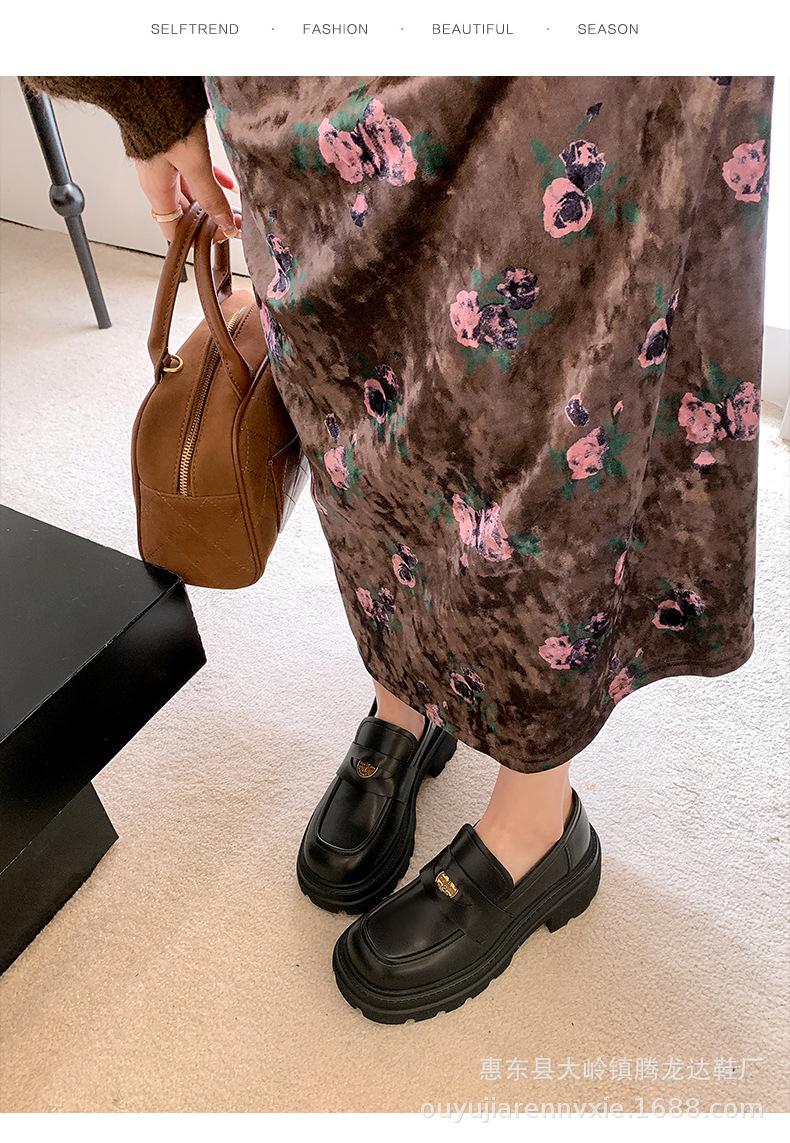 2023 nuevos zapatos de cuero de terciopelo de otoño e invierno, mocasines versátiles de estilo británico de cuero genuino, zapatos negros con cordones y suela gruesa para mujer