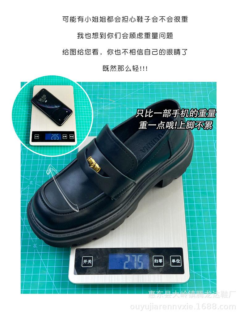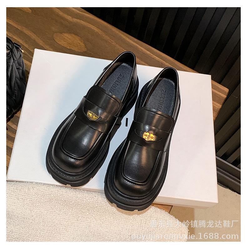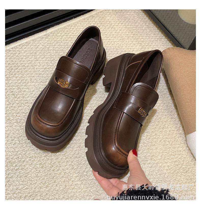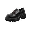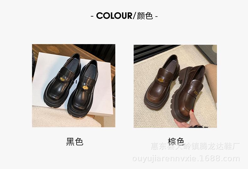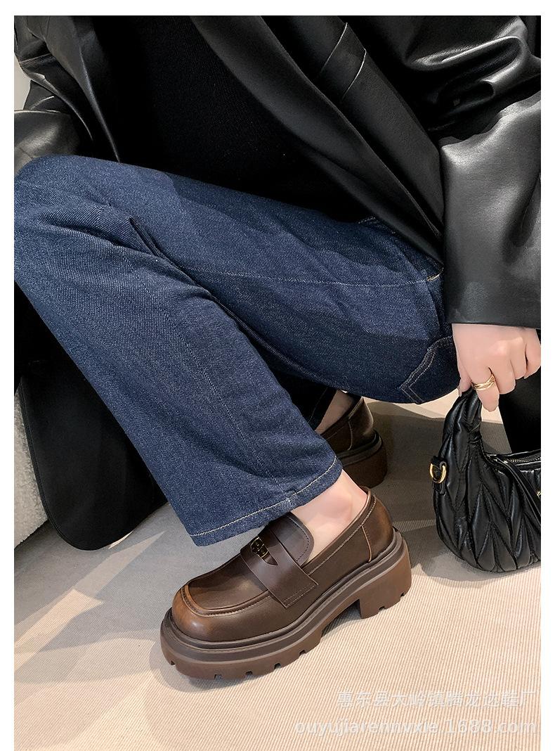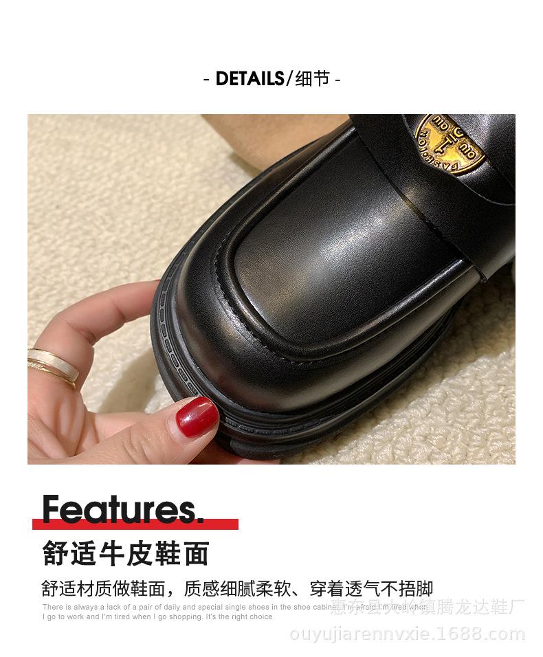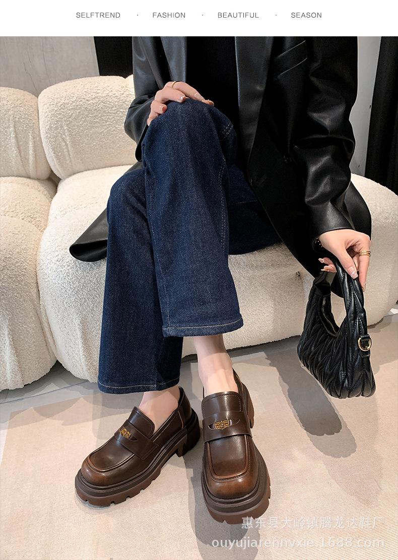 Mocasines de mujer, zapatos de plataforma de suela gruesa, estilo británico, con hebilla de metal del Arco del Triunfo, zapatos sencillos de tacón grueso, zapatos casuales de cuero pequeños que combinan con todo.