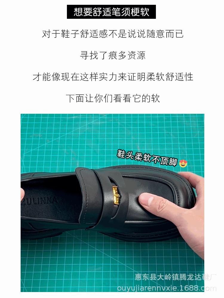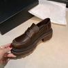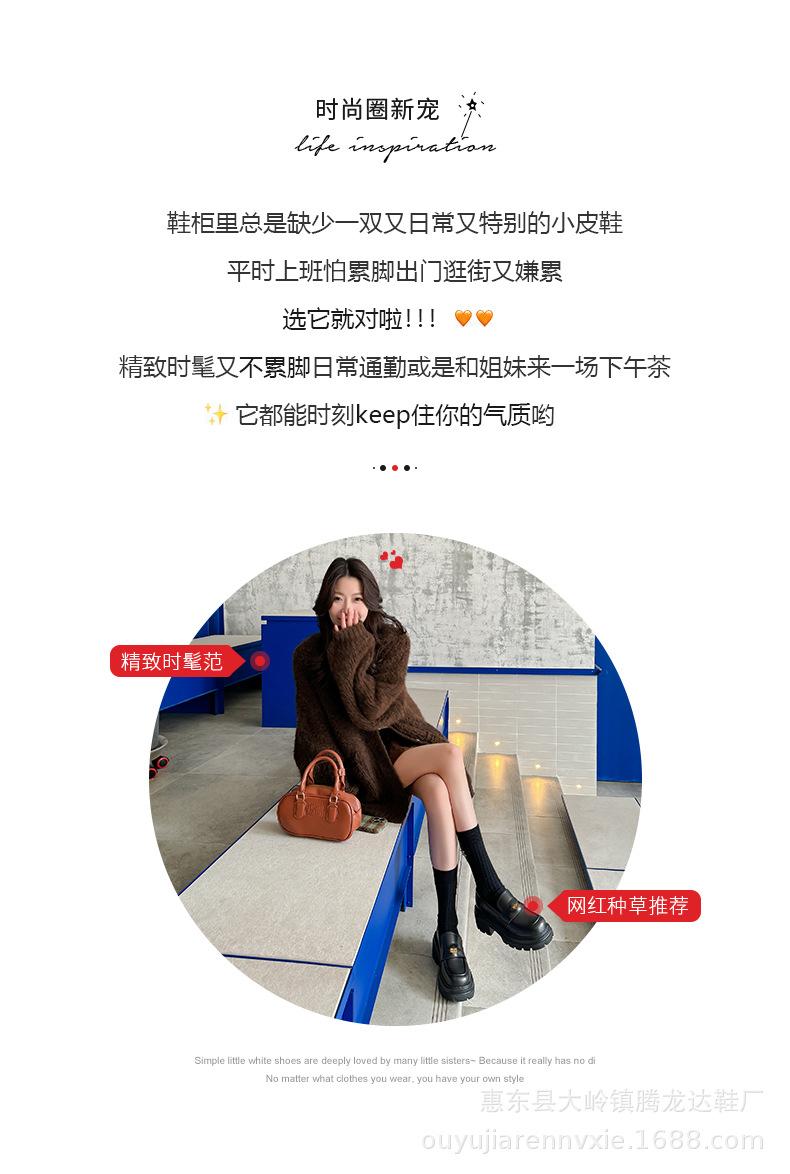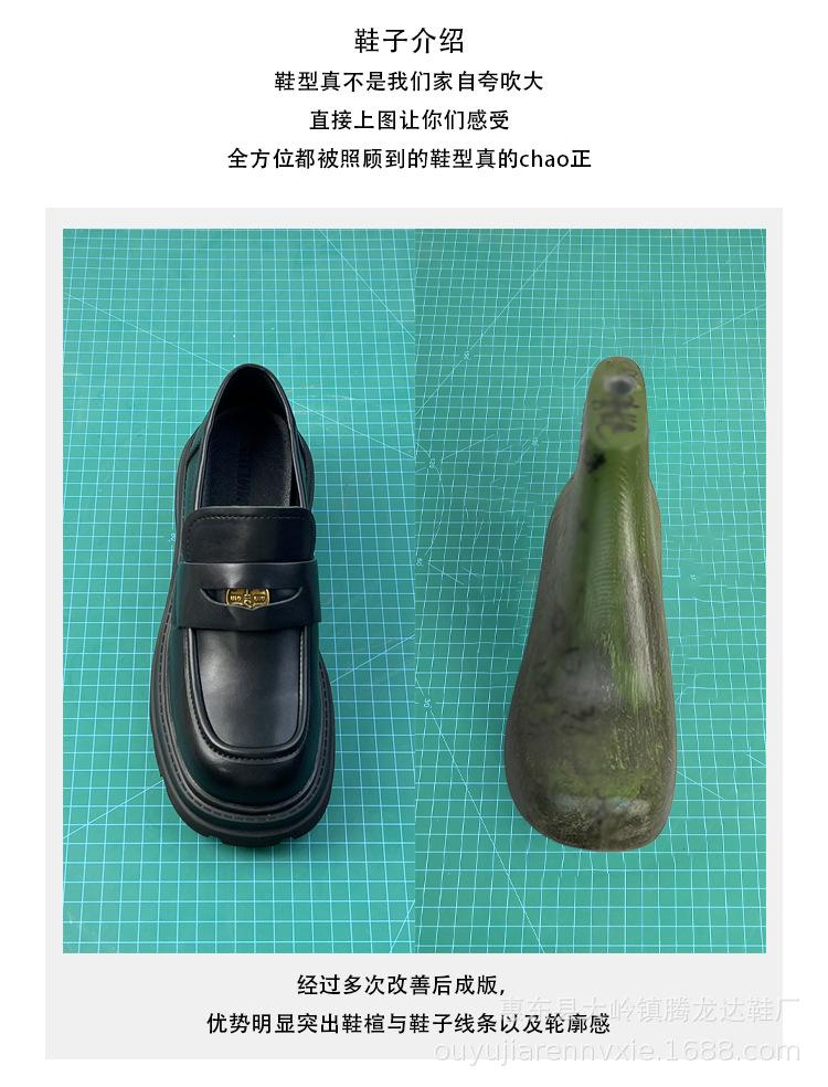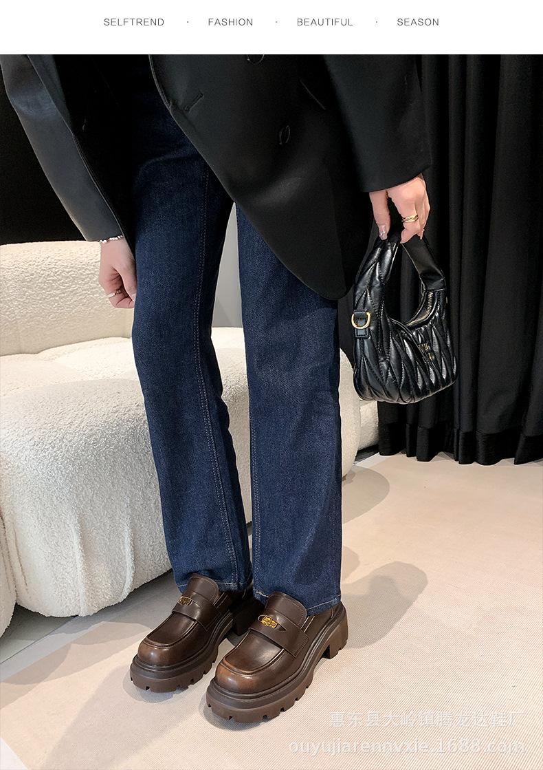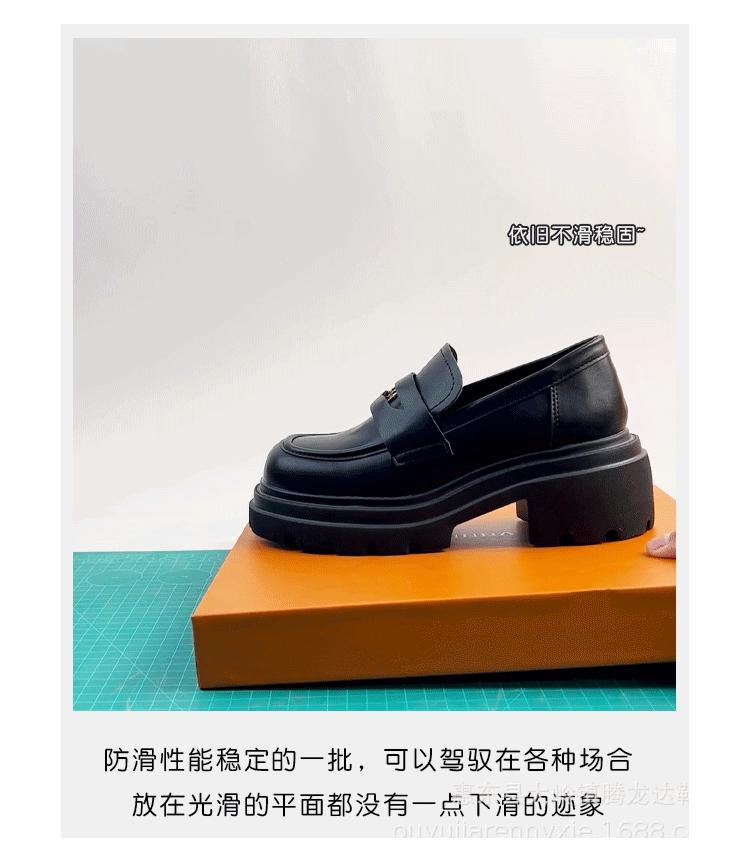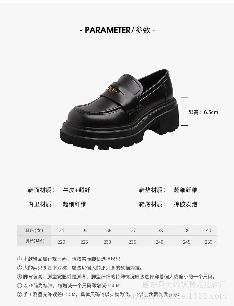 Mocasines de mujer, zapatos de plataforma de suela gruesa, estilo británico, con hebilla de metal del Arco del Triunfo, zapatos sencillos de tacón grueso, zapatos casuales de cuero pequeños que combinan con todo.