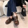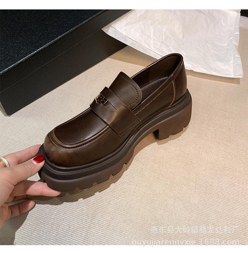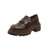 Mocasines de piel auténtica con suela gruesa para mujer, primavera 2024, nuevos zapatos de piel pequeños sin cordones estilo británico retro marrón