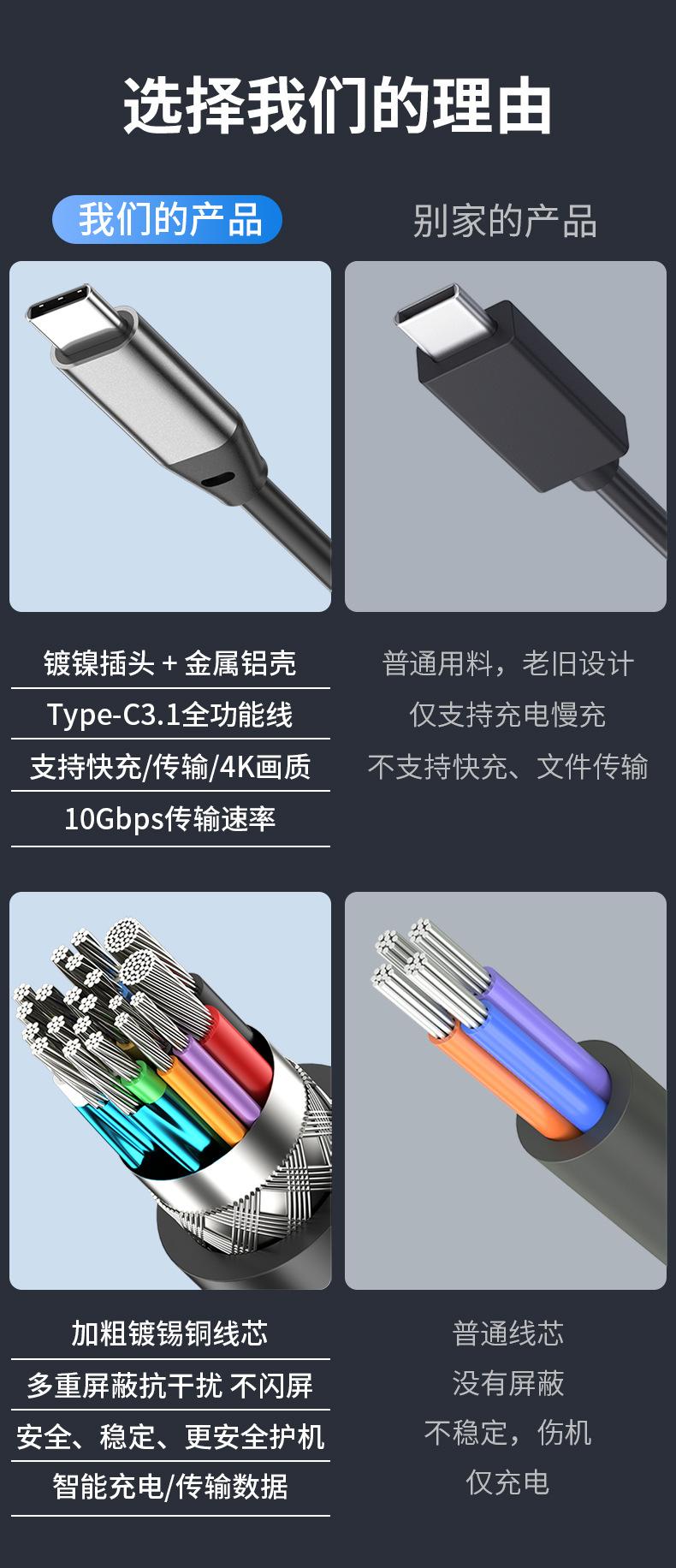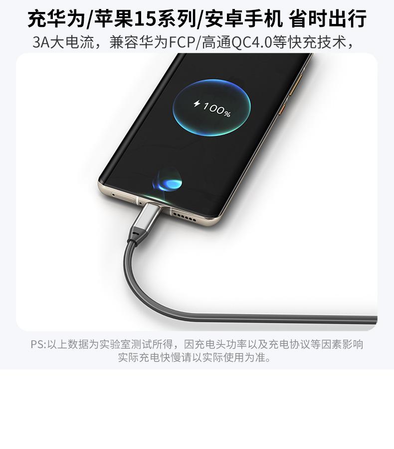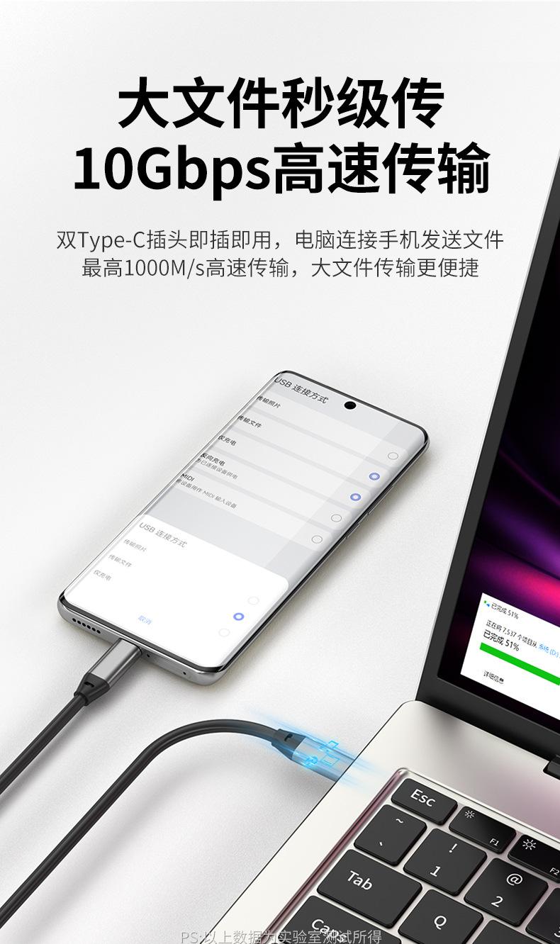 Línea de datos tipo C, línea de carga rápida de 60 W, línea de conexión de transmisión de disco duro de computadora de 10 G, línea de carga de teléfono móvil de 3 A, tipo C