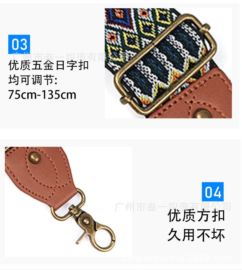 Bolso estilo bohemio transfronterizo con bandolera ancha ajustable, bolso bandolera con accesorios, correa tejida para bolso de mujer