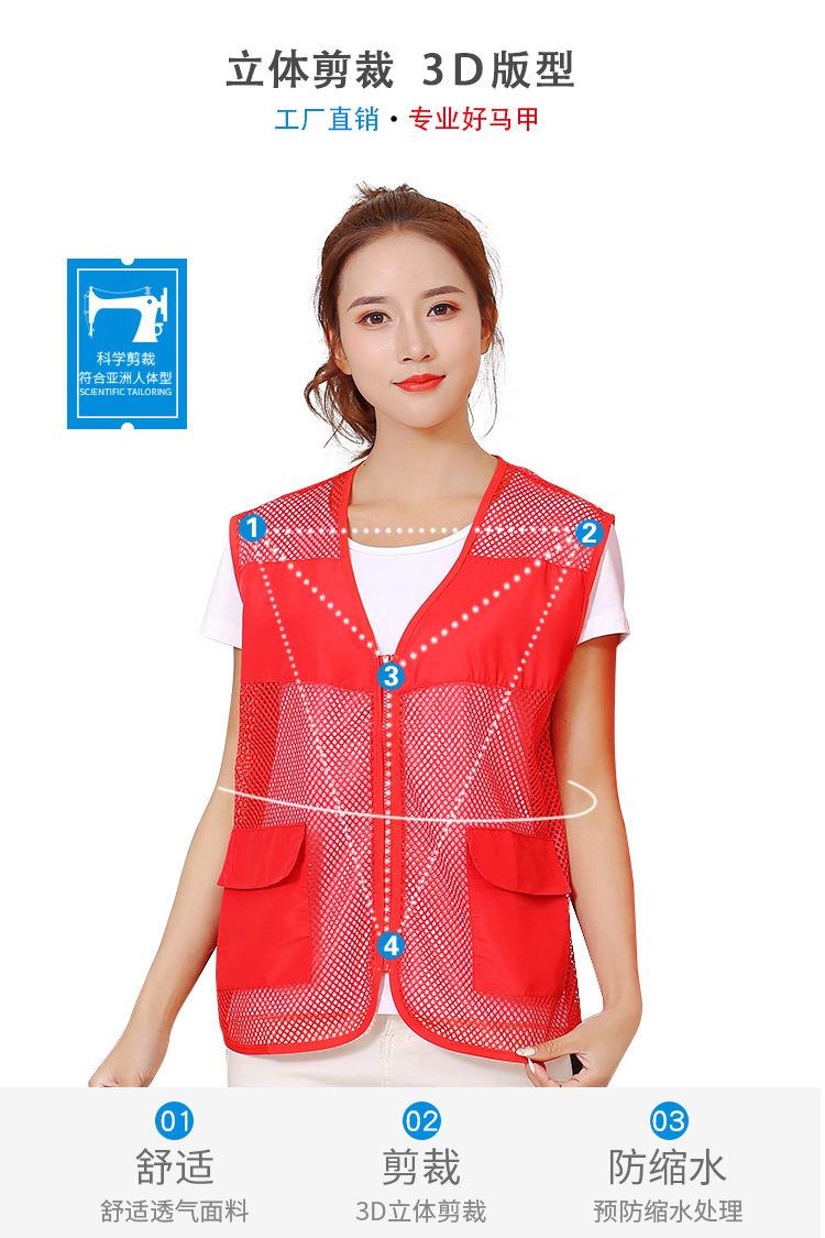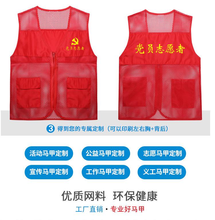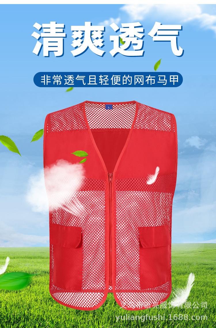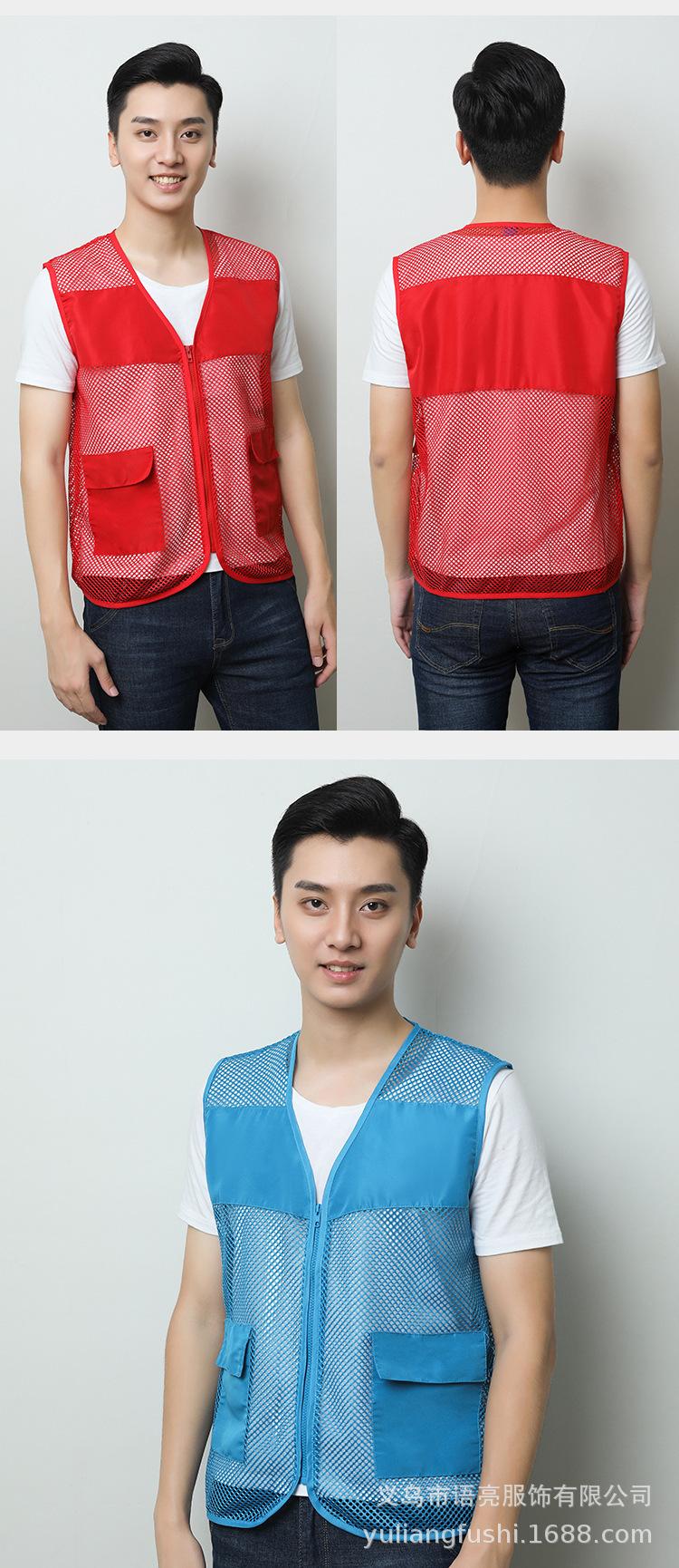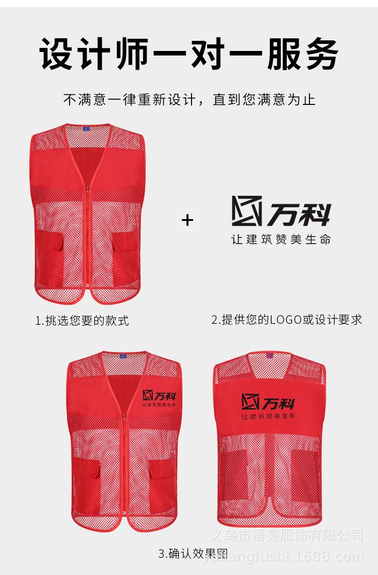 Chaleco Logotipo personalizado Voluntario Mujer Hombre Verano Malla Rojo Función Voluntario Saneamiento Publicidad Impresión