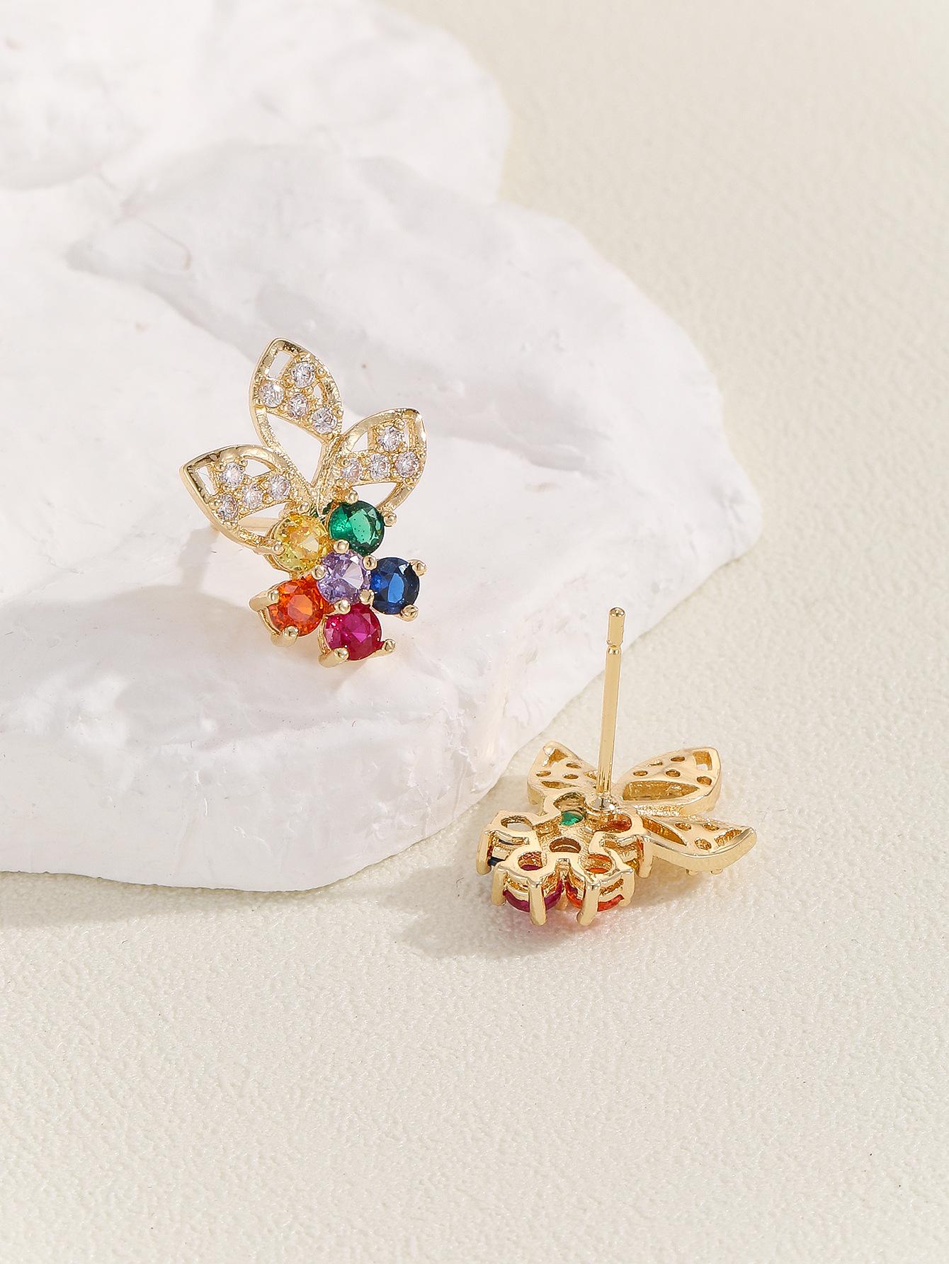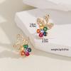 Pendientes de flores exquisitas con circonitas coloridas europeas y americanas para mujer, nuevos pendientes de moda de 2023 que combinan con todo, sencillos y frescos.