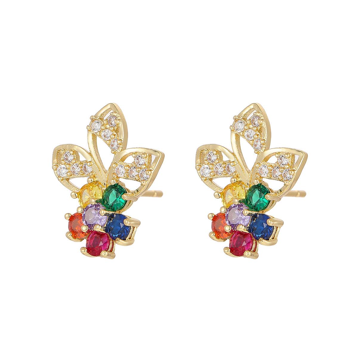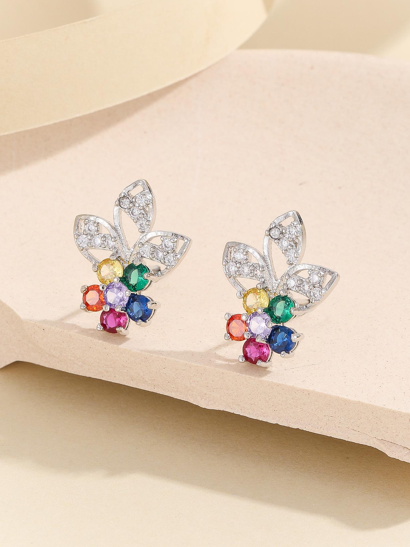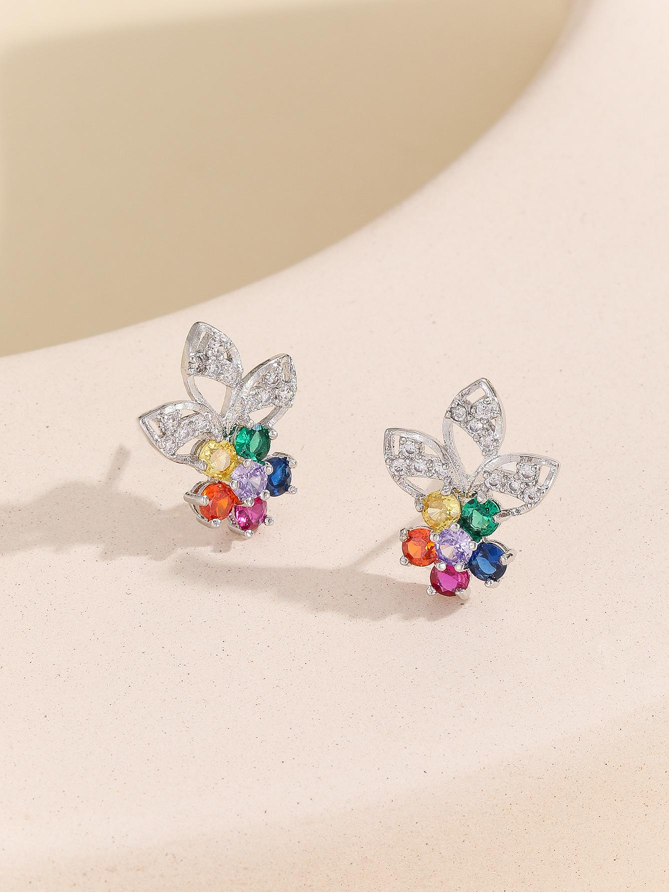 Compra Pendientes de flores exquisitas con circonitas coloridas europeas y americanas para mujer, nuevos pendientes de moda de 2023 que combinan con todo, sencillos y frescos. al por mayor en Joom.pro
