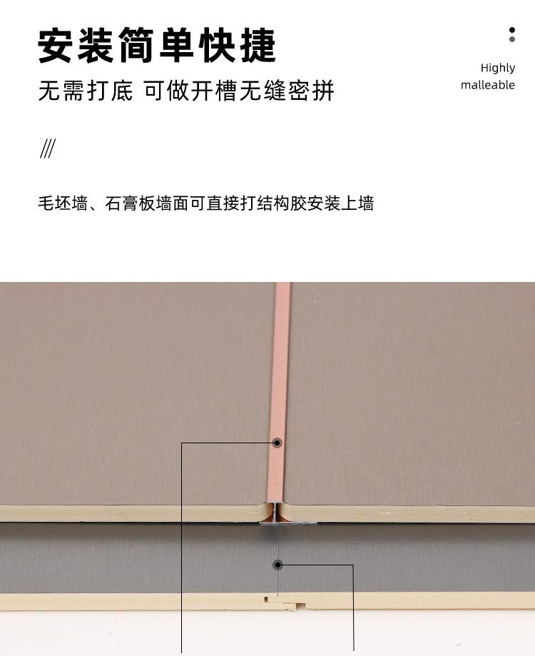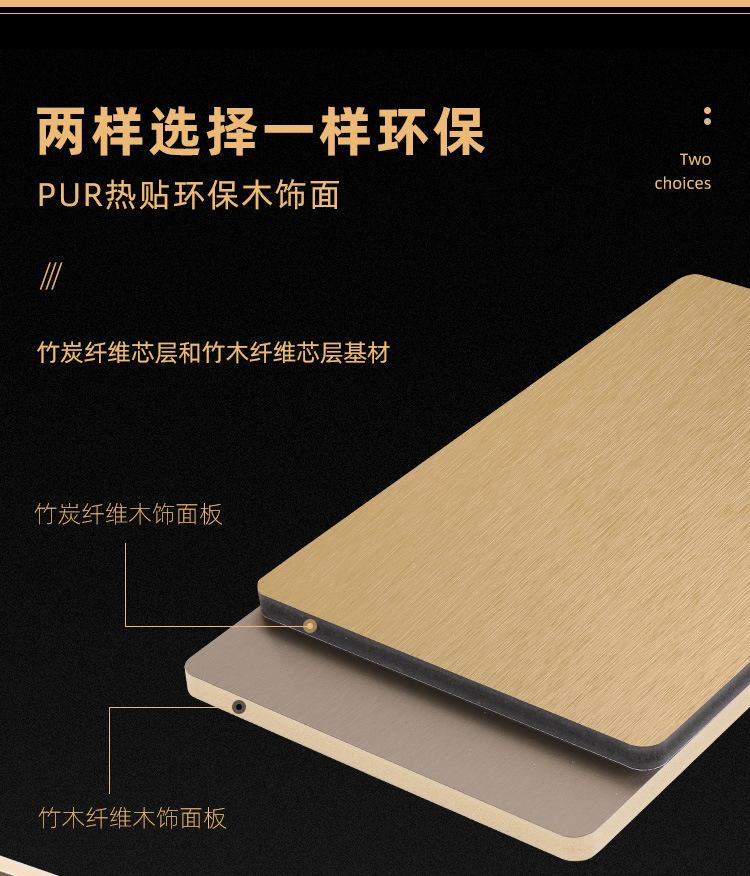 Panel de pared de carbón de bambú, placa de cristal de carbono de metal sólido, suministro de fábrica, metal cepillado, luz interior de lujo, chapa de madera sin pintura
