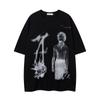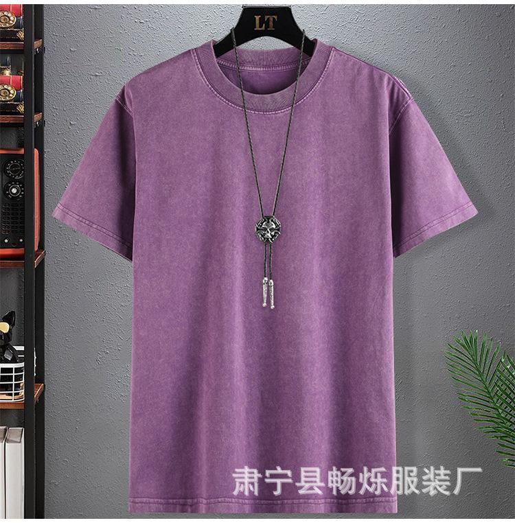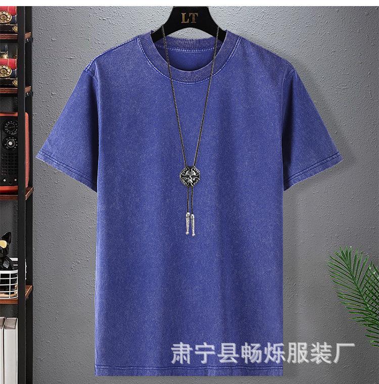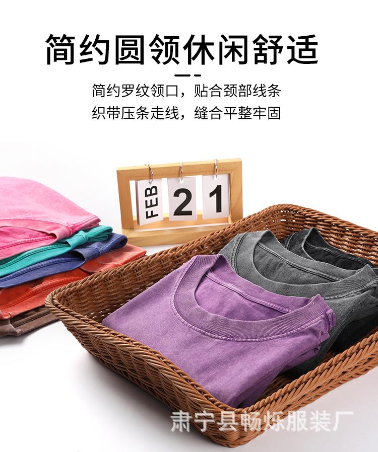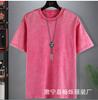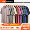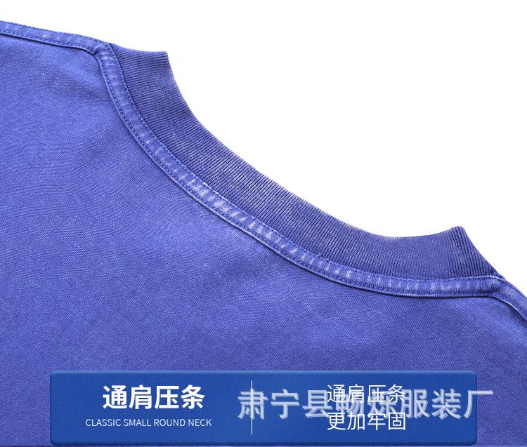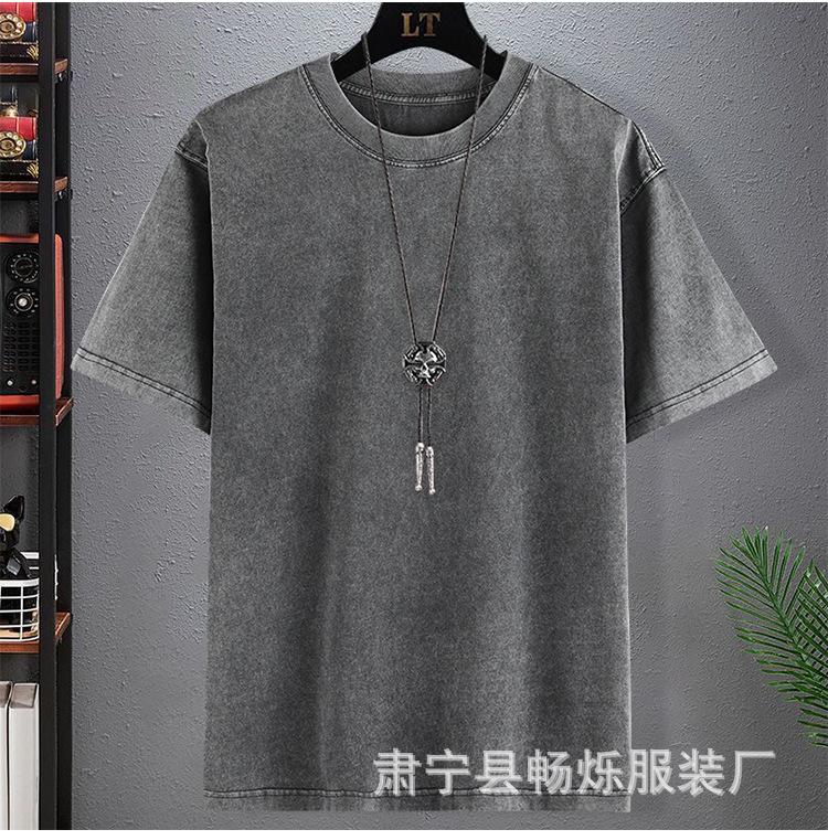 Camiseta de manga corta de algodón grueso de 230 g para hombre y mujer, con hombros descubiertos, estilo vintage japonés, lavada.