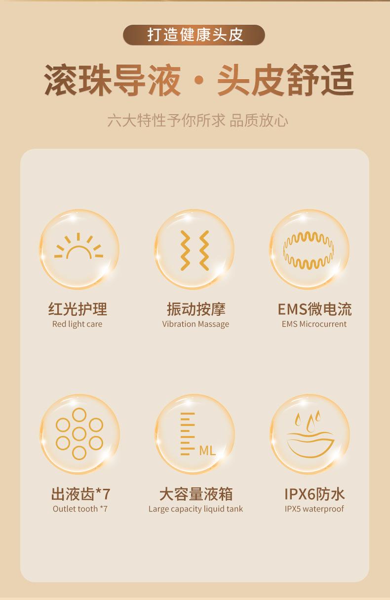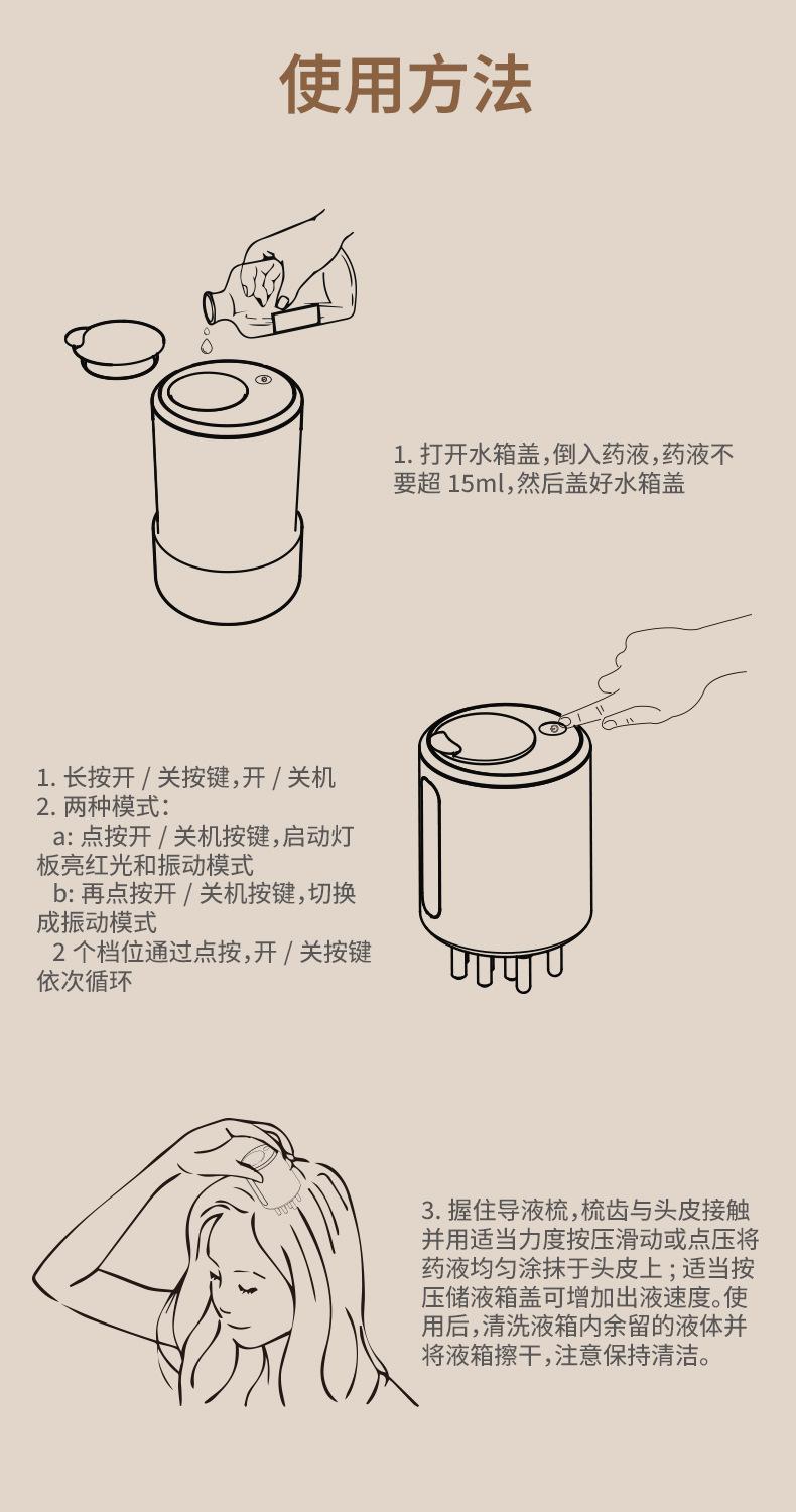Aplicador de medicina para el cuero cabelludo Mino, cabezal eléctrico, bola de masaje, peine guía para el crecimiento del cabello, aplicador de aceite esencial para el cabello