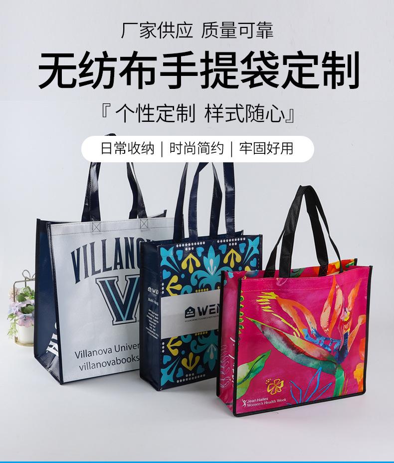 Bolsa de mano de tela no tejida recubierta con impresión a color personalizada de gran capacidad para supermercado laminada para compras bolsa para regalo de ropa al por mayor