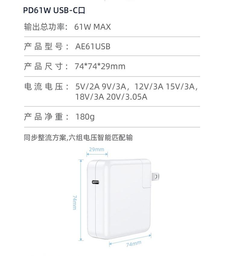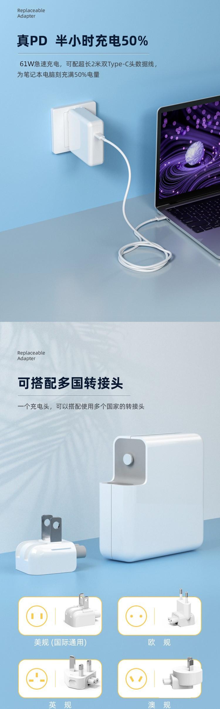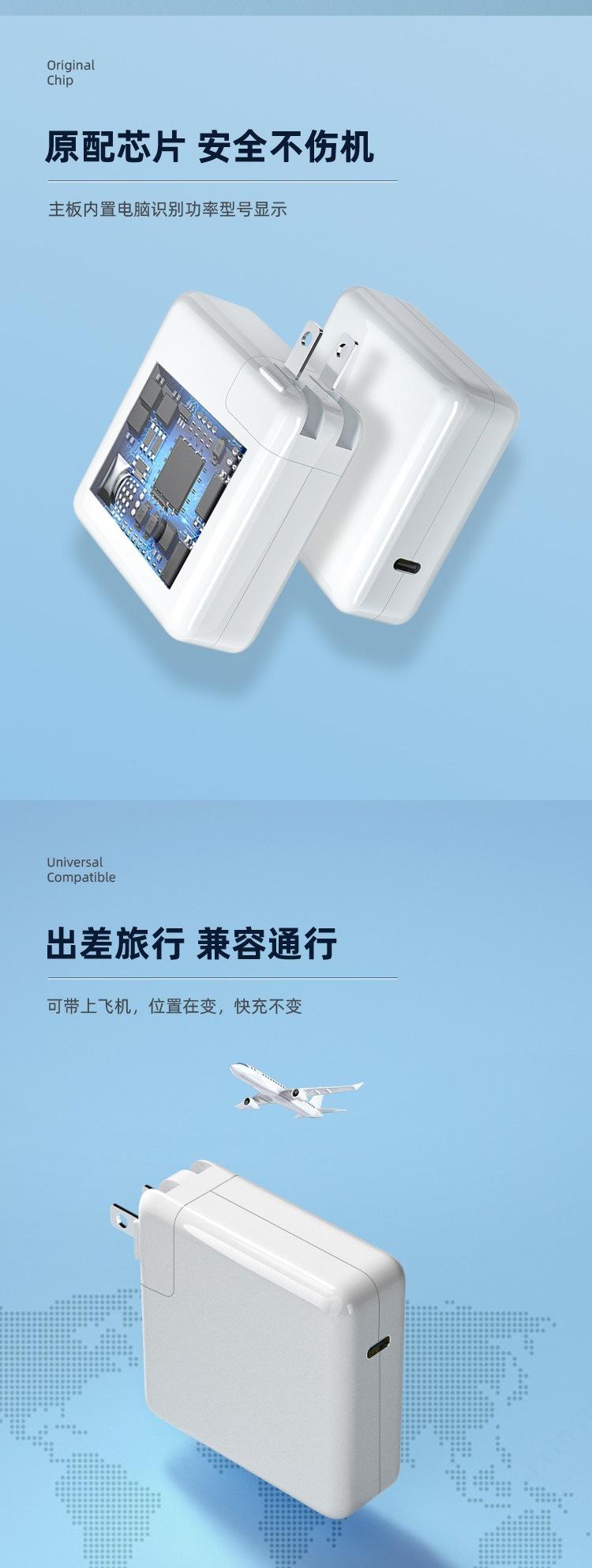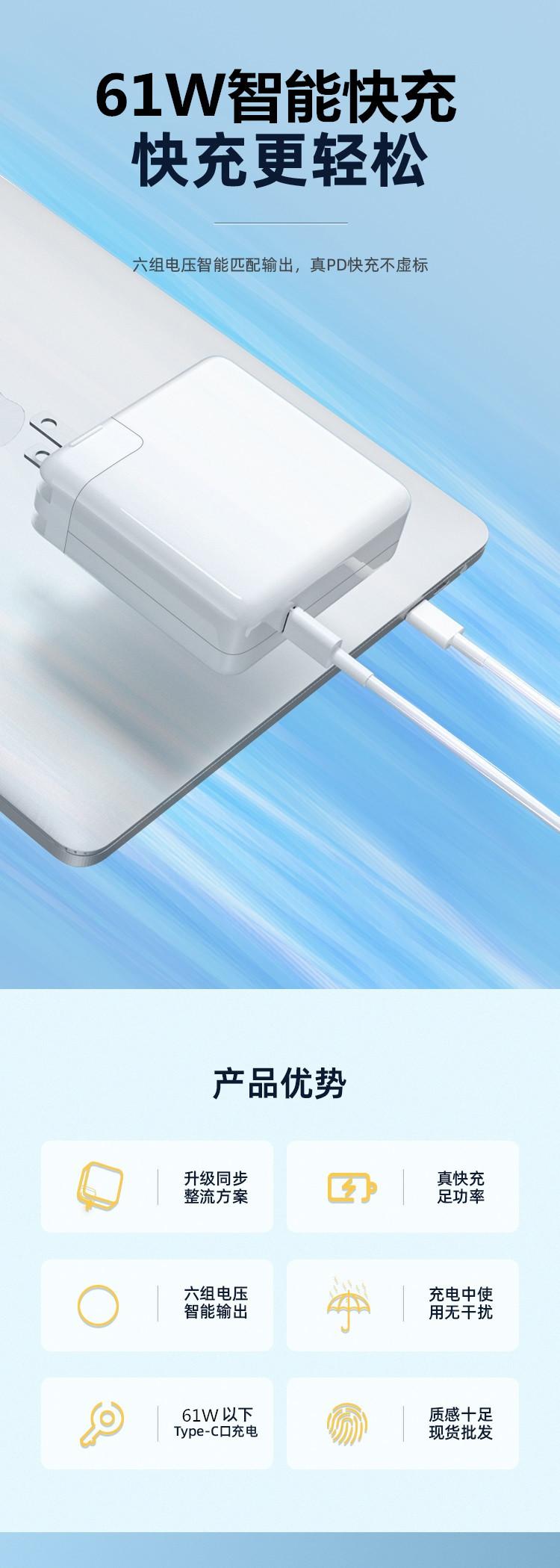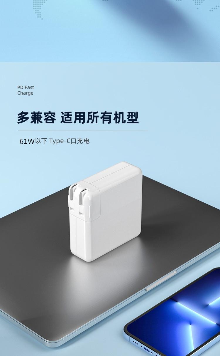 61W Adecuado para MacBook Cargador de Laptop Apple Carga Rápida PD Adaptador de Corriente Inteligente USB-C