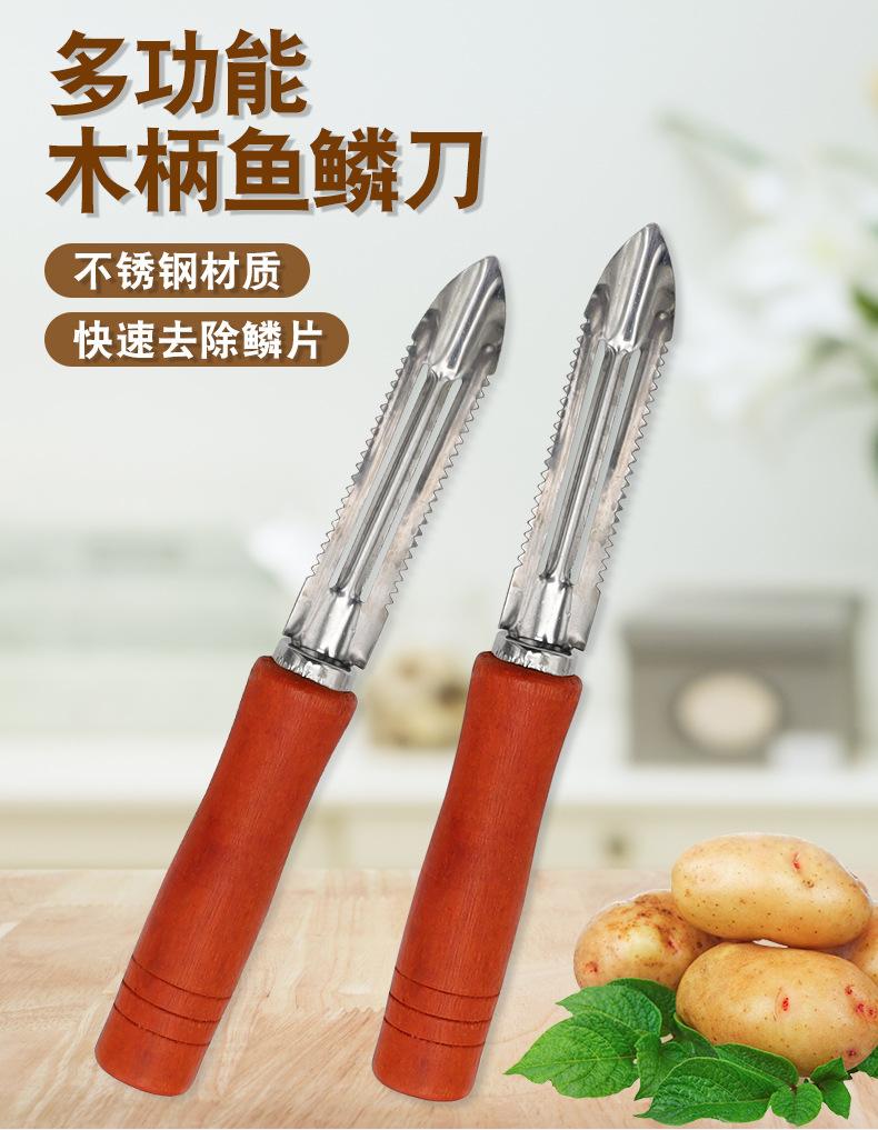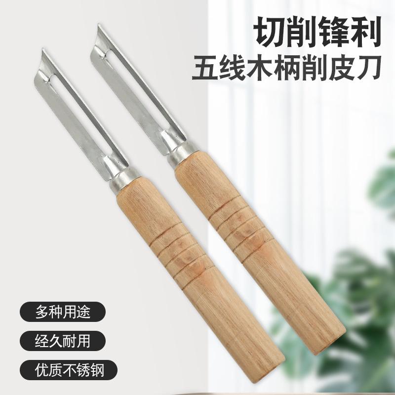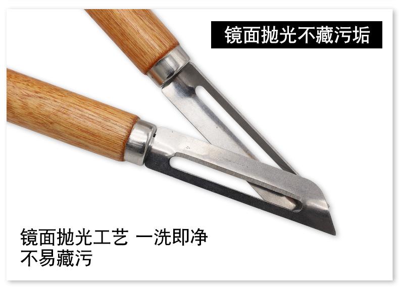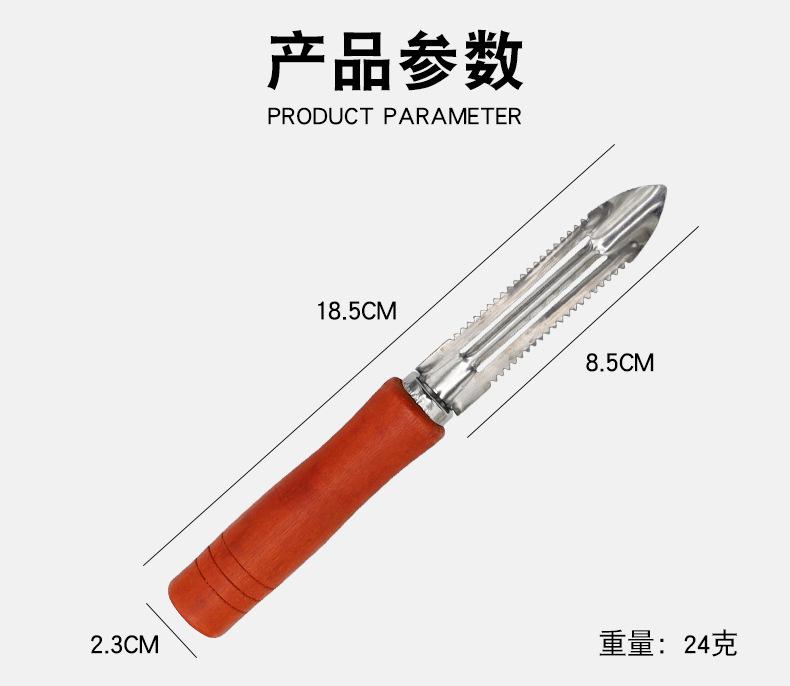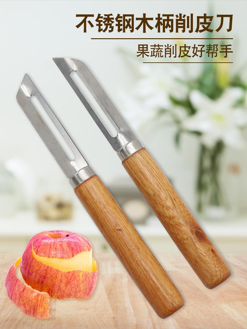 Compra Pelador de acero inoxidable, pelador con mango de madera, raspador de manzanas y patatas, esparcidor, cepillo de frutas, cepillo de melones y zanahorias. al por mayor en Joom.pro