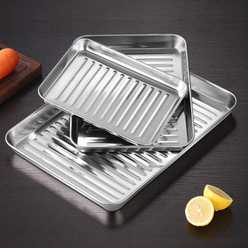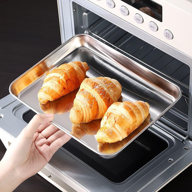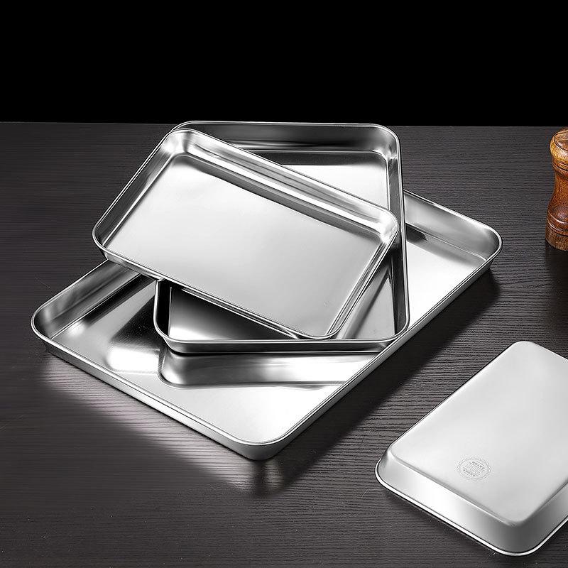 Bandeja para Hornear Comercial Antibacteriana de Acero Inoxidable 304 de Fondo Plano para Cocina Japonesa, Bandeja para Postres, Almacenamiento para Té de la Tarde, Diseño Creativo