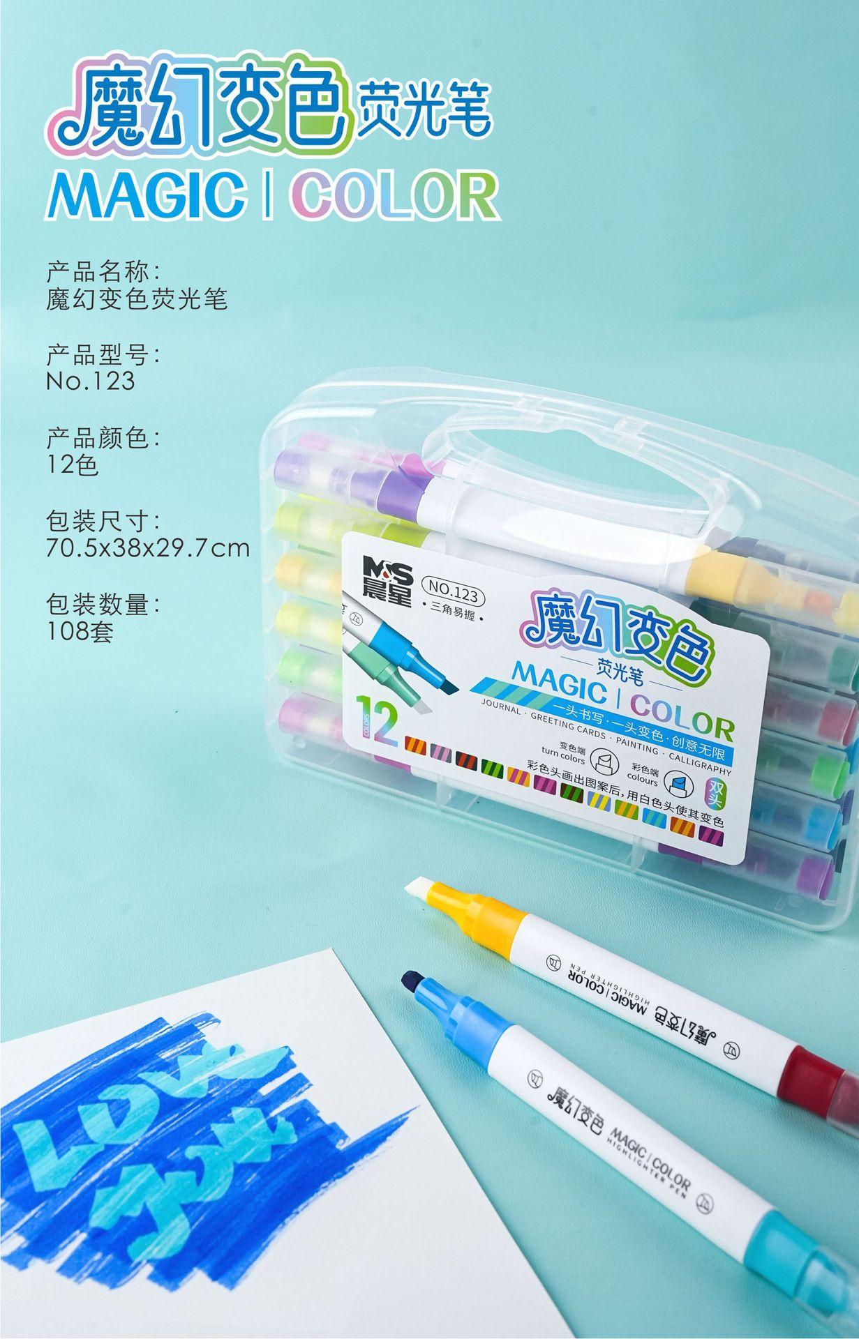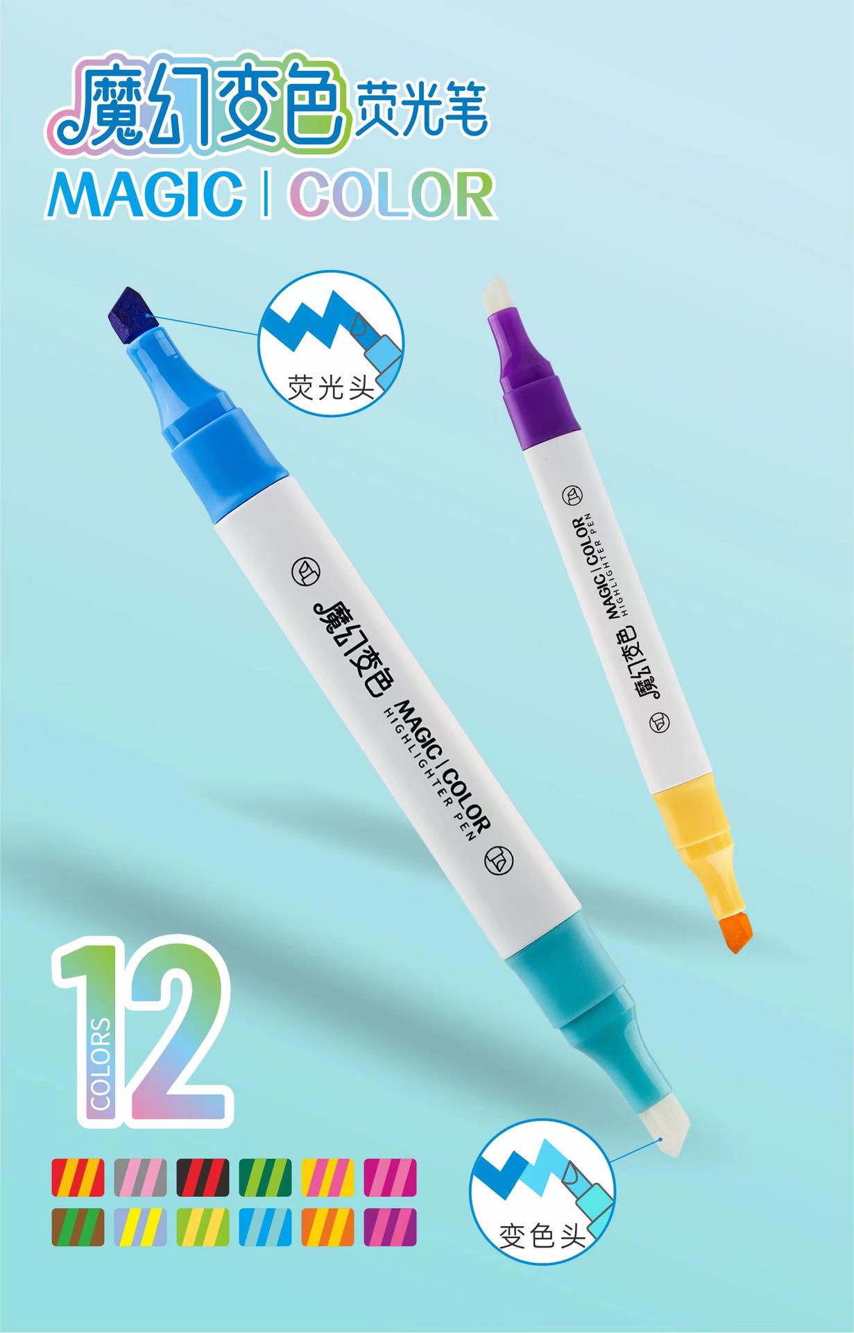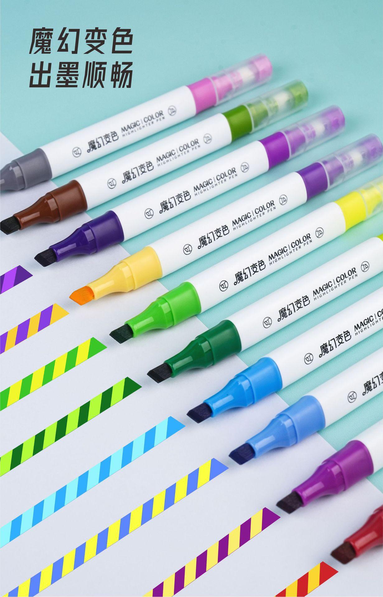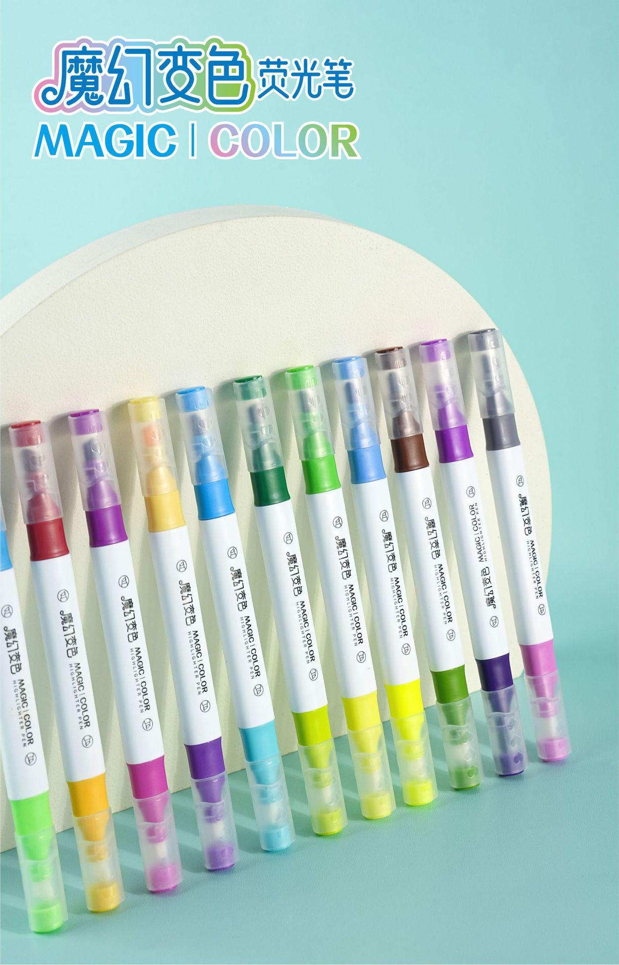 Resaltador de doble cabezal que cambia de color, bolígrafo mágico creativo de grafiti de color, marcador de llave para estudiantes, juego de bolígrafos de cuenta manual de secado rápido