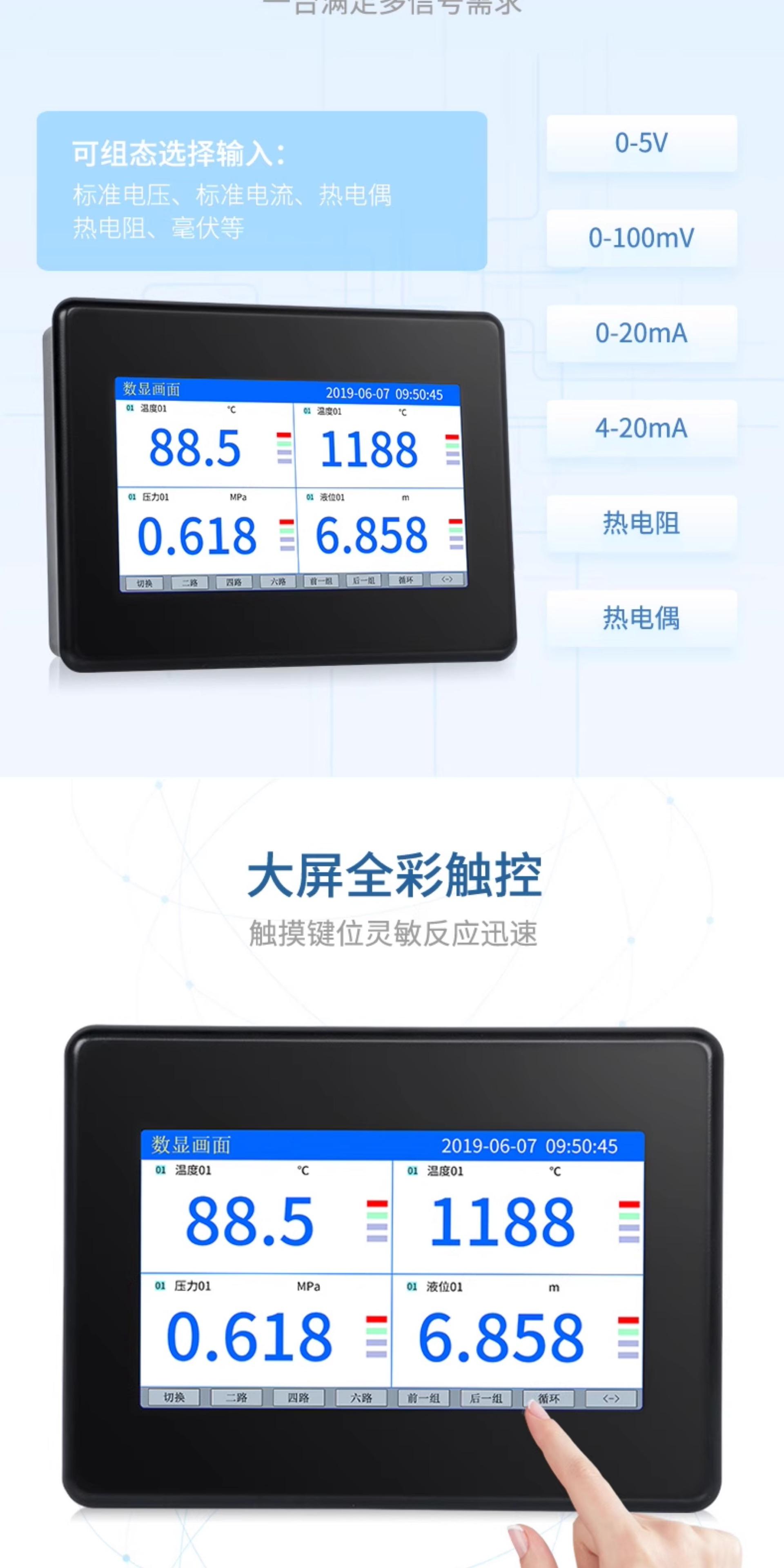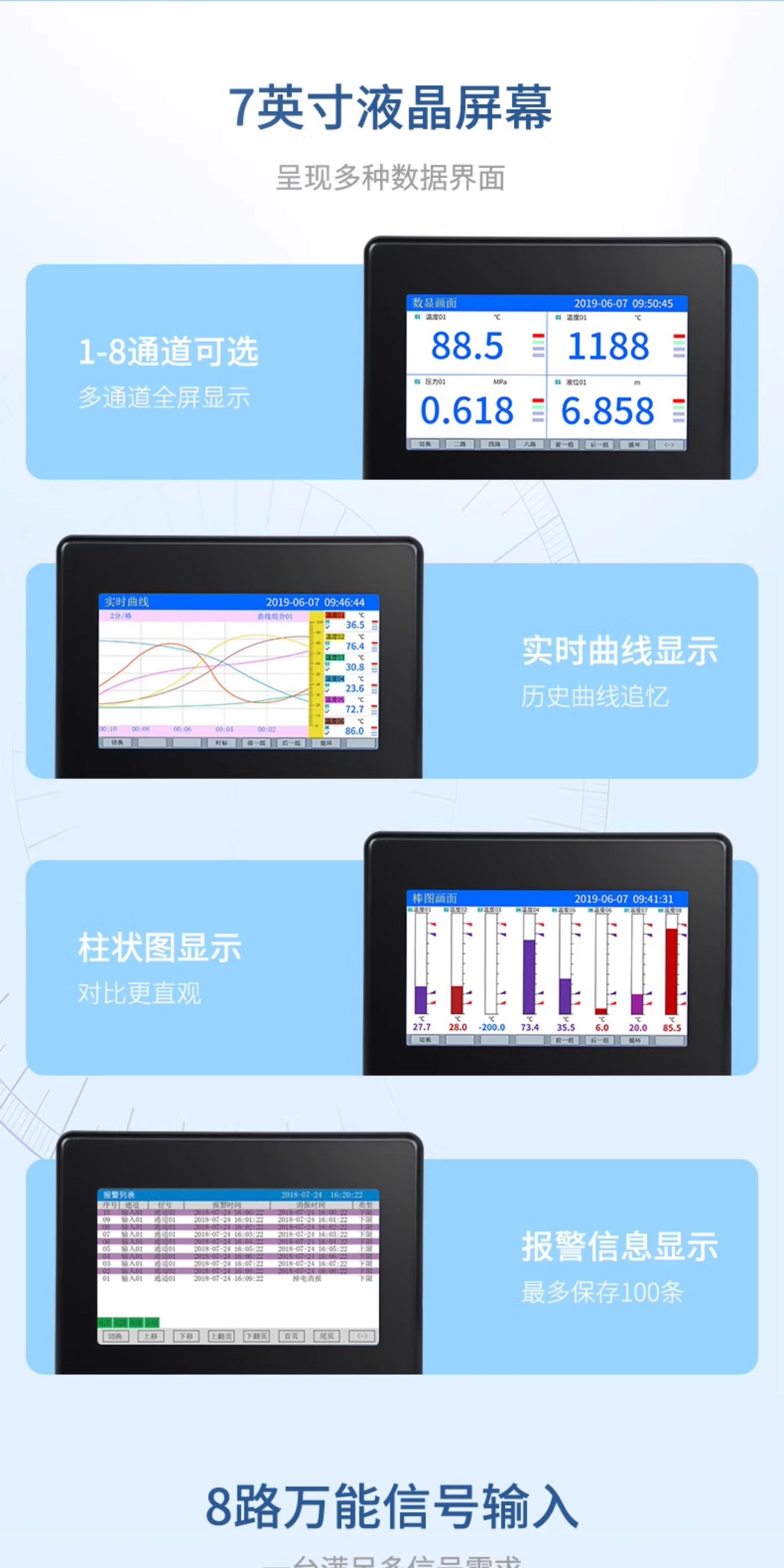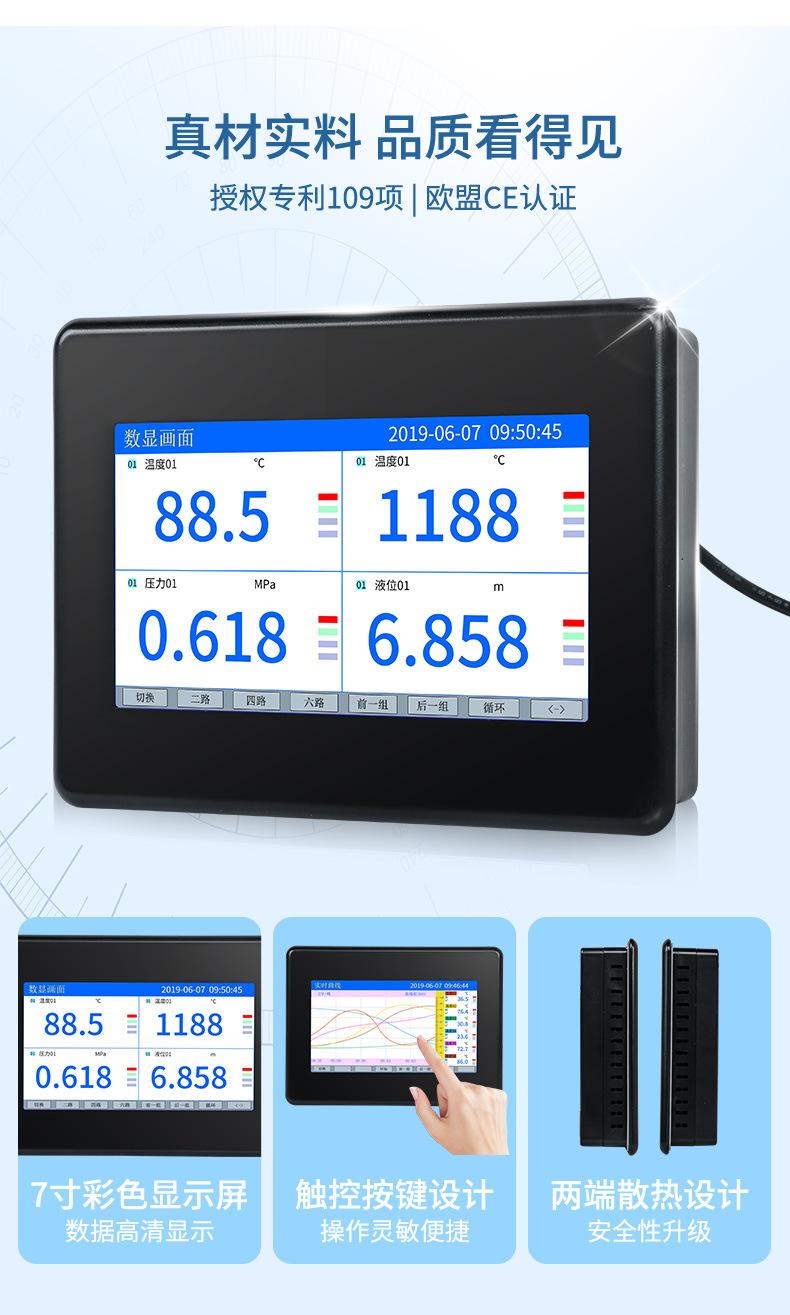 Registrador de presión, flujo de electricidad, temperatura y humedad con pantalla a color multicanal de 1 a 18 canales, sin papel
