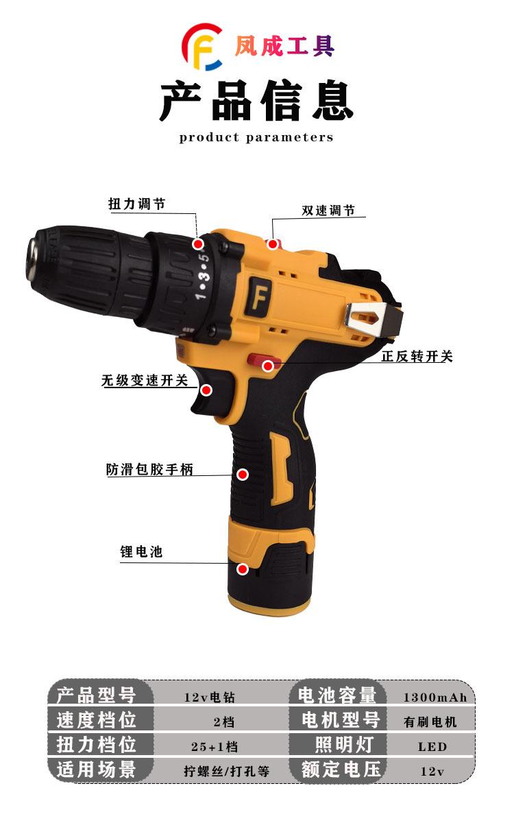 Taladro de Mano 12V Herramienta Eléctrica Batería de Litio Taladro de Mano Doméstico Taladro Recargable Transfronterizo Perforadora Cargador Recargable