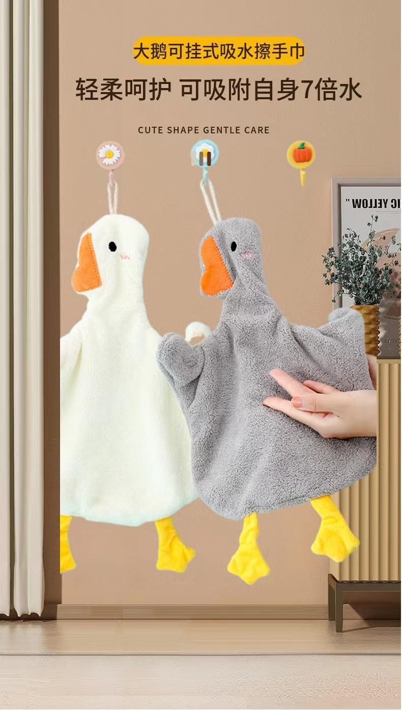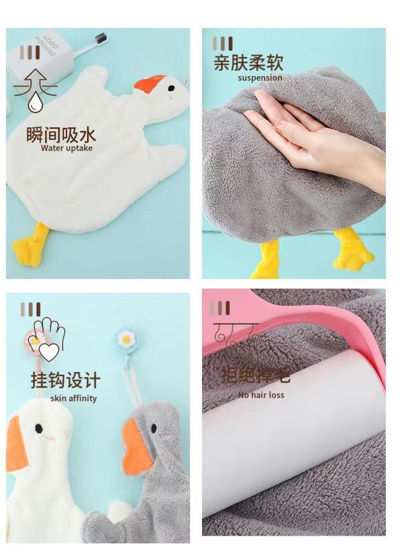 Toalla de Mano de Ganso Cocina Baño Hogar Lindo Dibujo Animado Colgante Niños Adulto Toalla Gruesa Absorbente de Agua