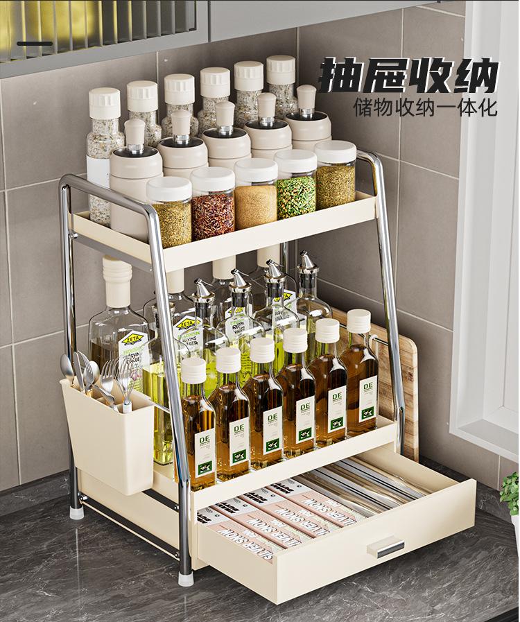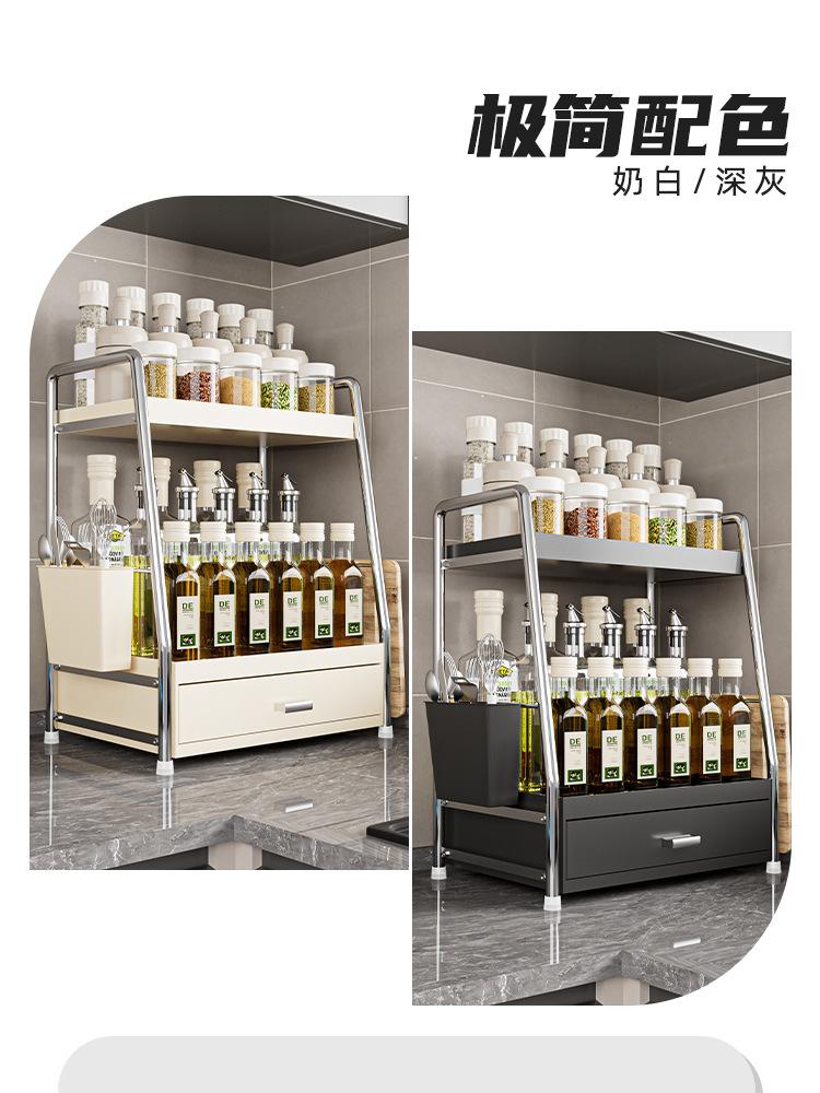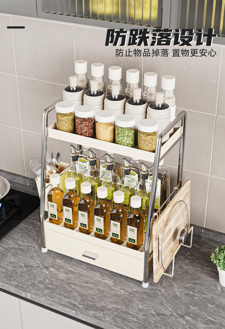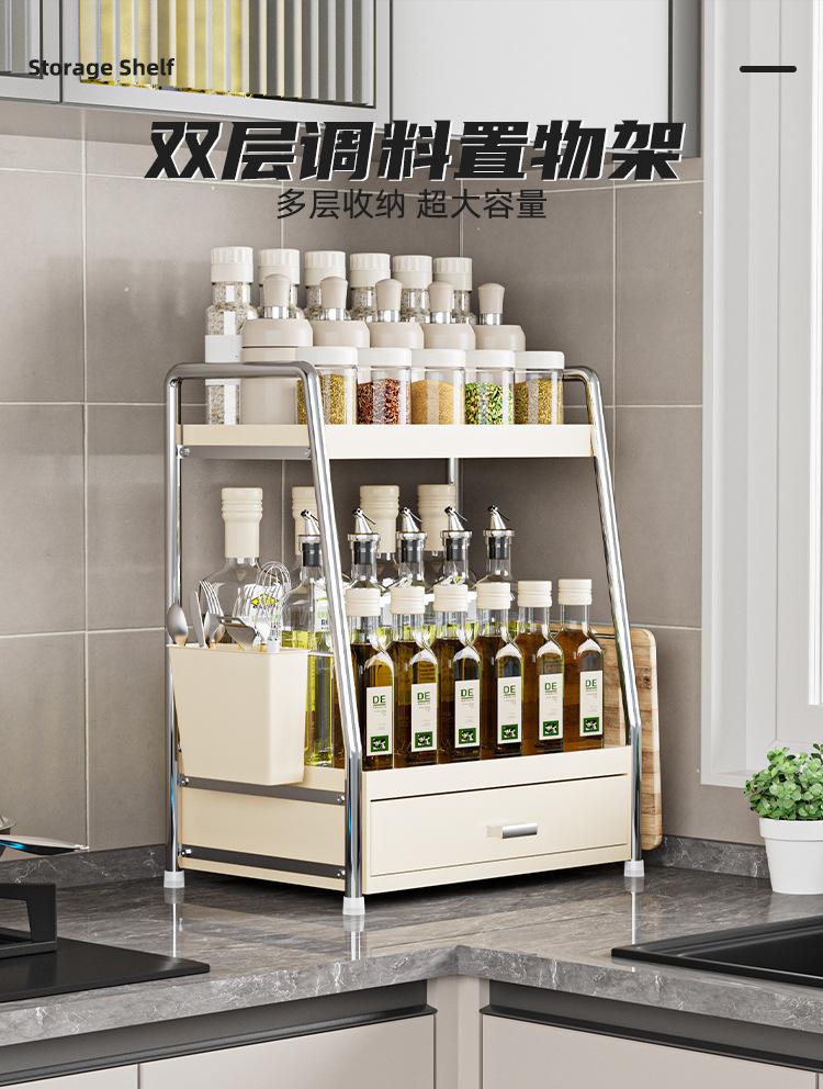 Compra Estante de Cocina Estilo Crema Encimera Especiero Multicapa Condimento Sazonador Hogar Aceite Sal Salsa Vinagre Estante de Almacenamiento al por mayor en Joom.pro