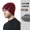 Gorro de invierno para hombre con forro polar, protección para las orejas, tejido elástico, color liso, combina con todo, informal, de cabeza grande, adecuado para fábrica de gorros cálidos.