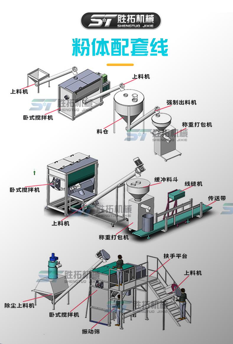 Equipo completo de mezclador horizontal de polvo de alimentación Línea de producción de mezclador de cinta de tornillo de acero inoxidable a juego con masilla en polvo