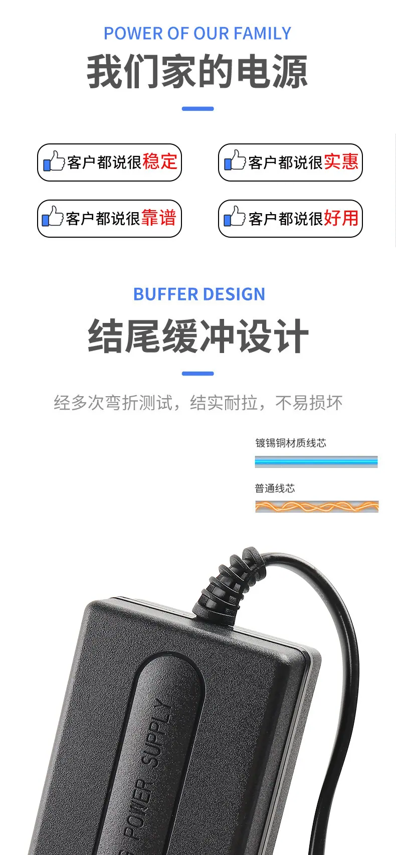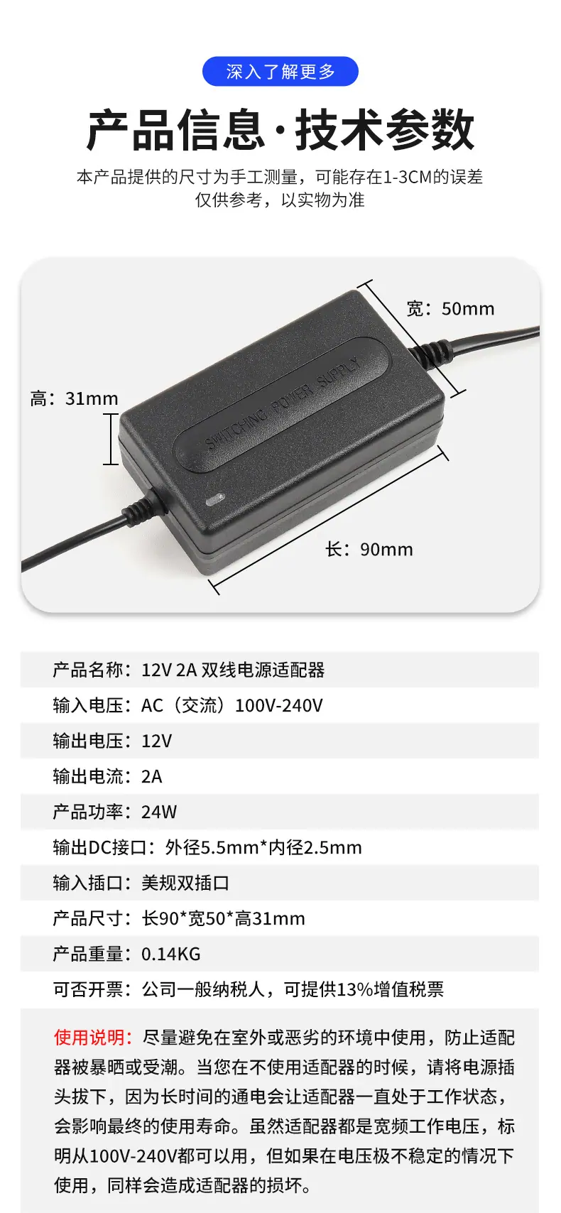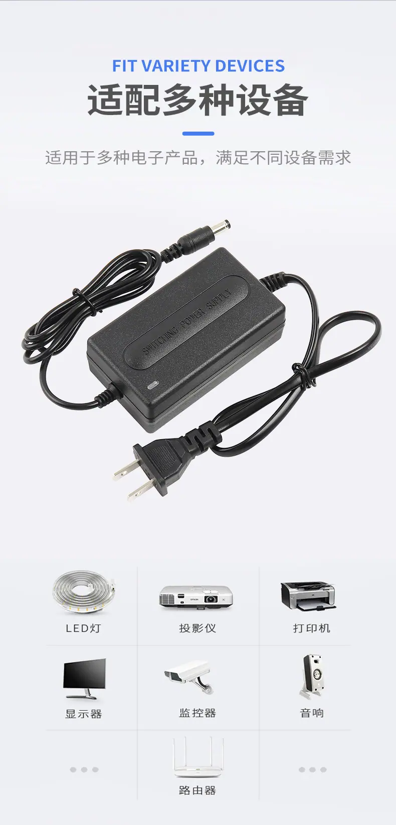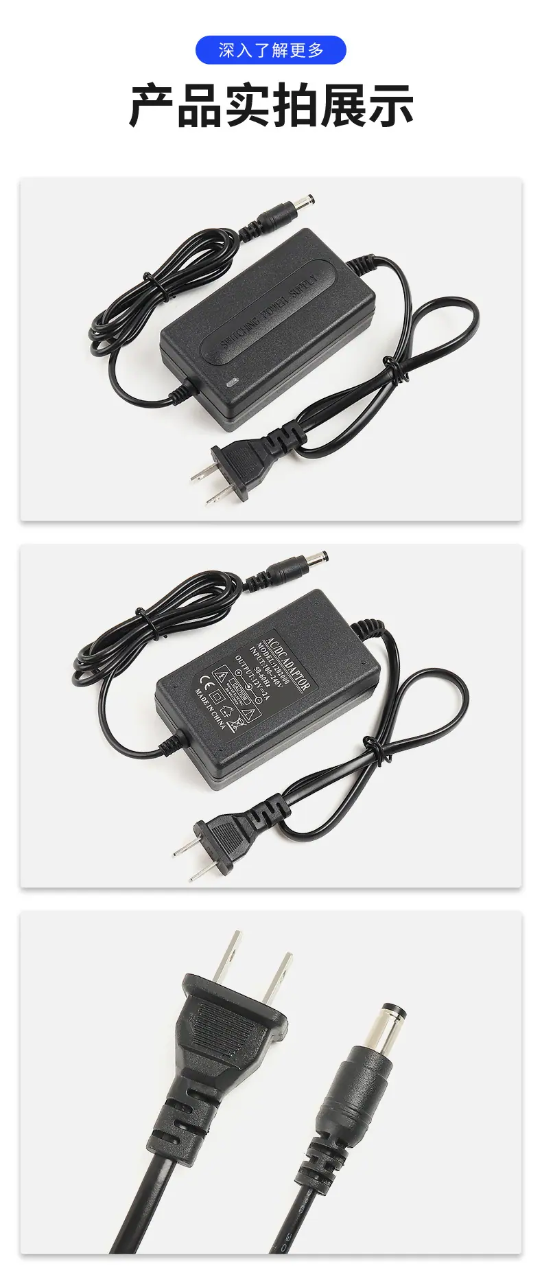 Adaptador de corriente de dos cables de 12 V 2 A, luz LED con monitorización de instrumento de belleza, masajeador, luz de relleno, fuente de alimentación conmutada