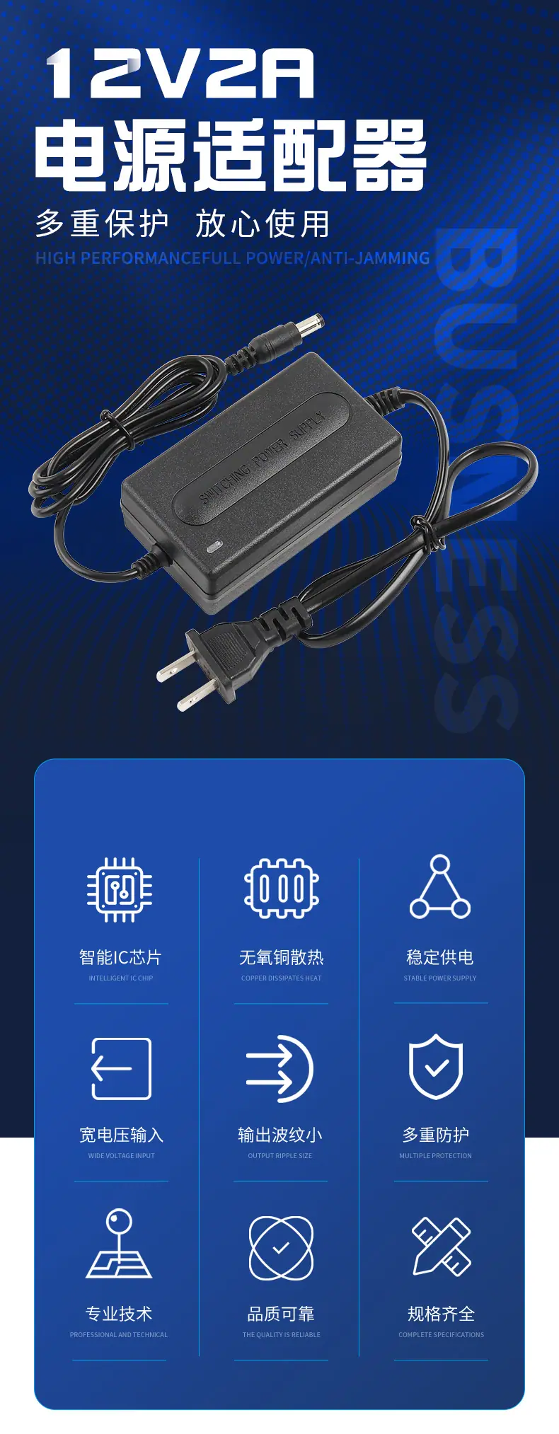 12v 2a dual-wire us standard