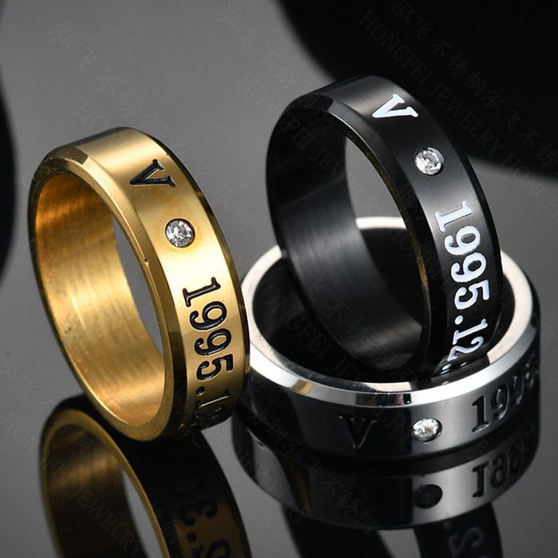 BTS con el grupo juvenil alrededor de Jin Taiheng V anillo de letra de diamante acero de titanio anillo para hombre y mujer venta al por mayor una generación de cabello
