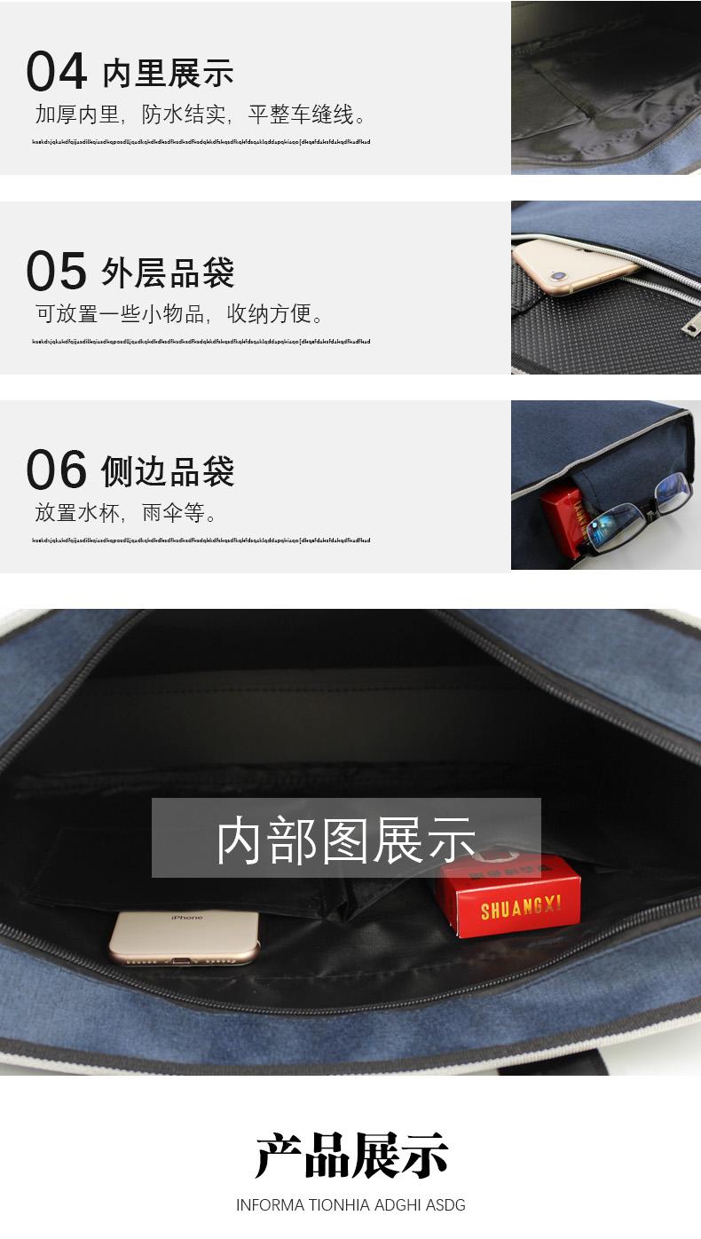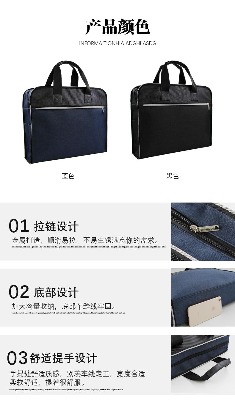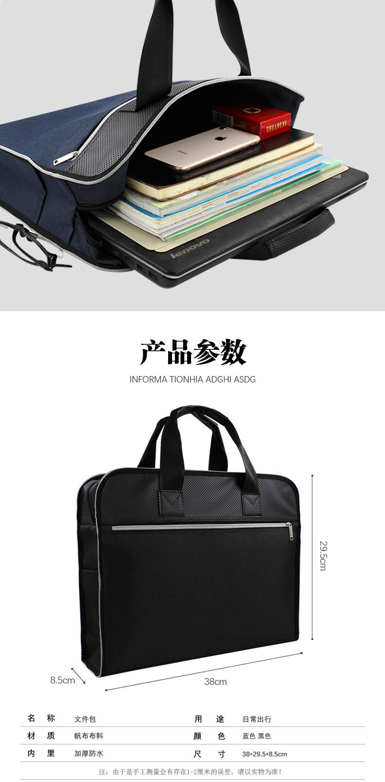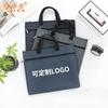Maletín de lona Oxford de doble capa para oficina, reuniones, portátil, archivo, logotipo imprimible, texto, para negocios