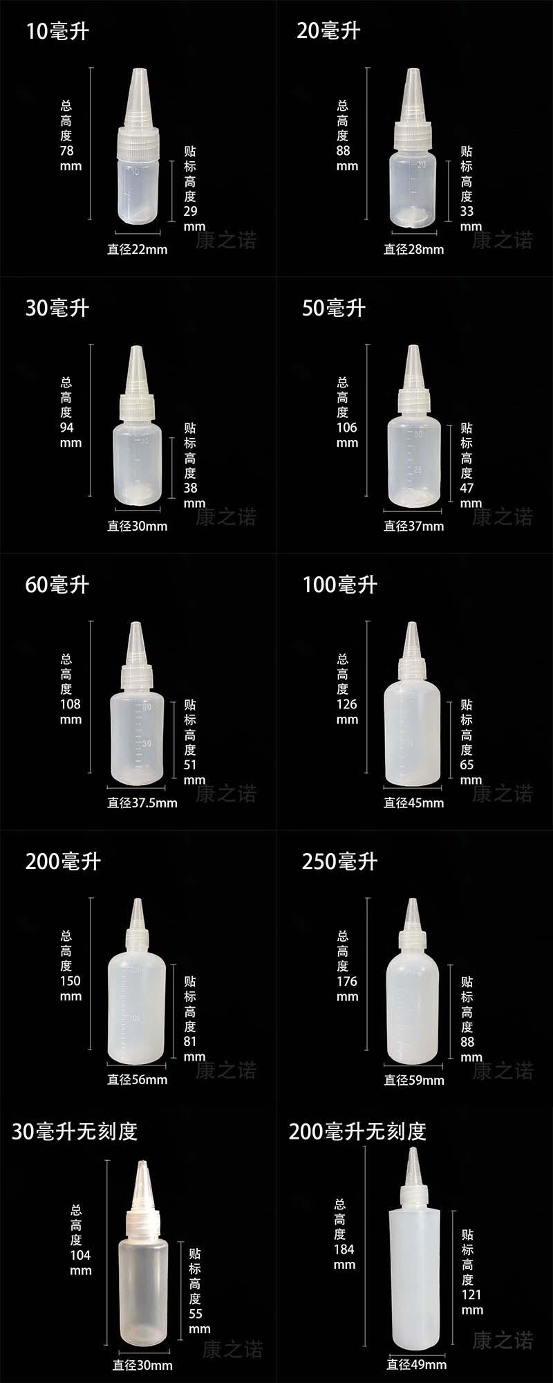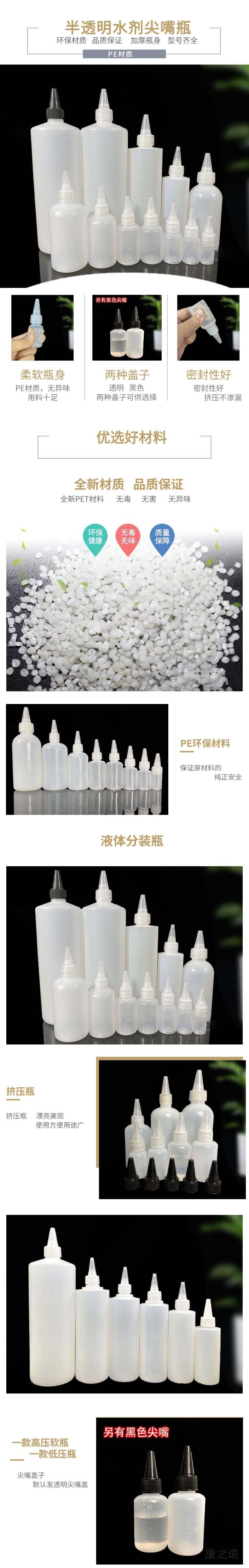 Venta al por mayor 500/1000ml Botella Grande de Plástico para Exprimir Translúcida Botella con Punta Emulsión Tinte Color Embotellado Dividido
