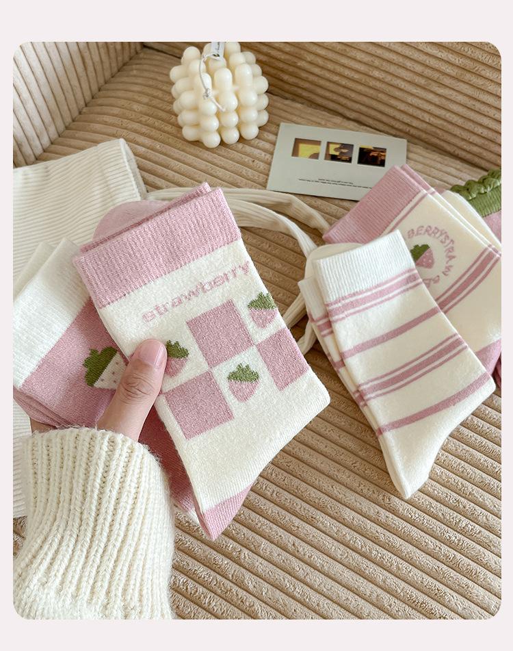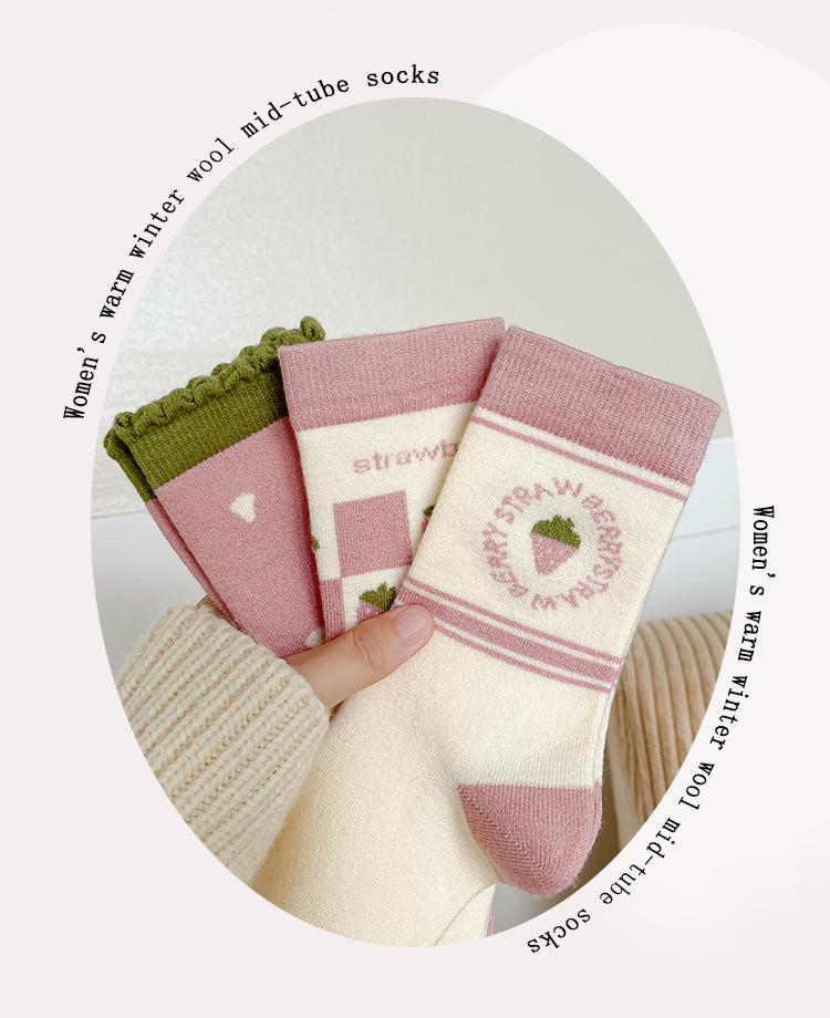 Calcetines de Lana Largos Otoño e Invierno para Mujer Calcetines Gruesos Cálidos de Media Caña Calcetines de Mujer Rosa Calcetines de Cachemira Industria de Calcetines Zhuji