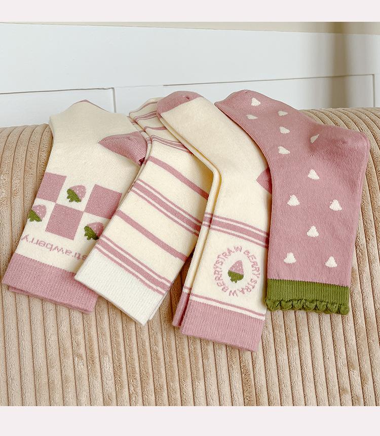 circle strawberry, checkered strawberry, pinstripe, Green socks, foundation strawberry