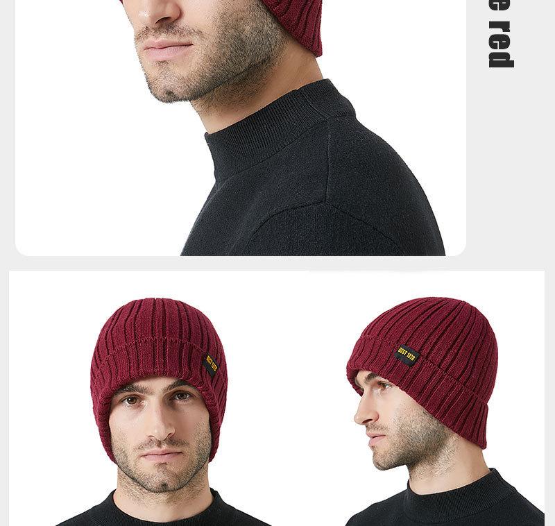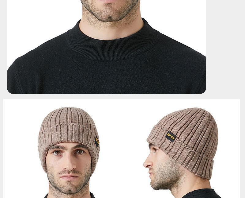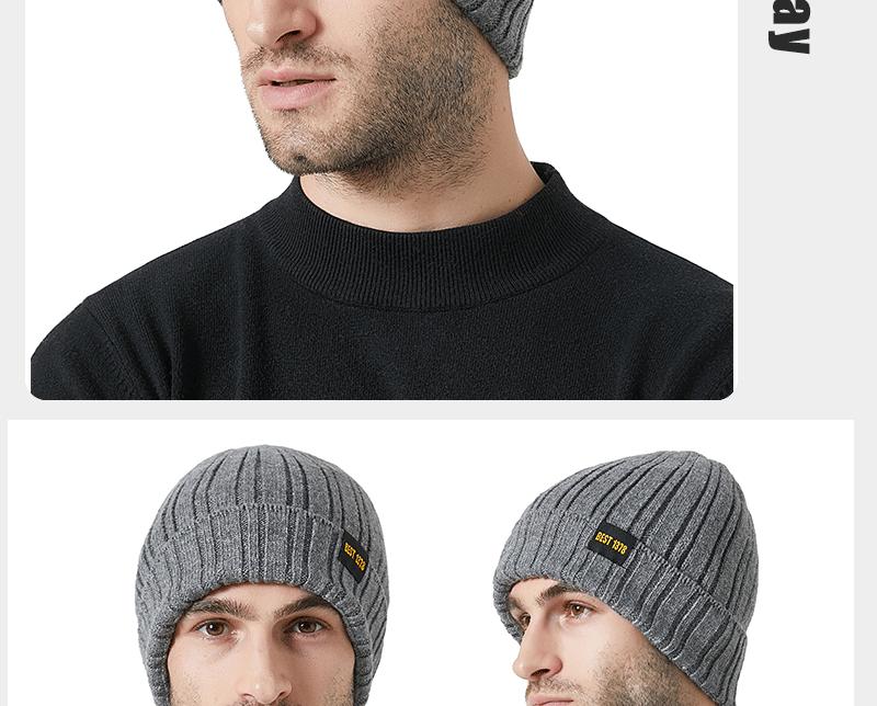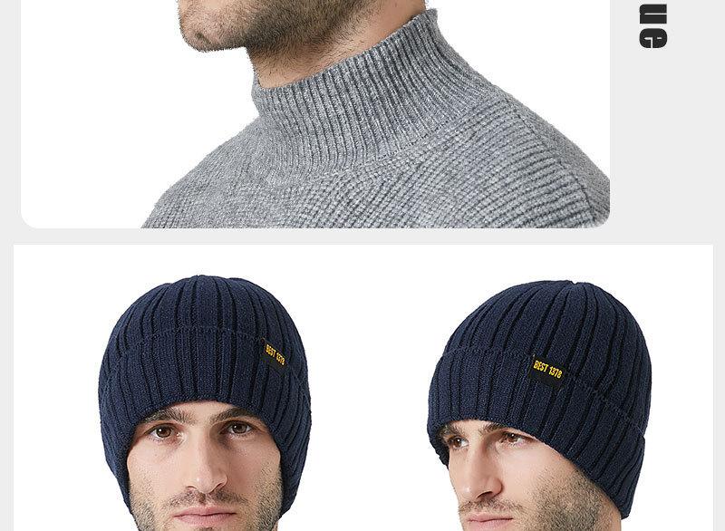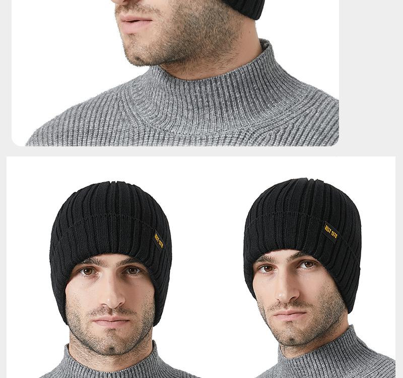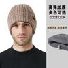 Gorro de punto para hombre, de invierno, de doble capa, grueso, con forro polar, con protección para las orejas, cálido, de color sólido, versátil, informal, de lana de alta elasticidad.