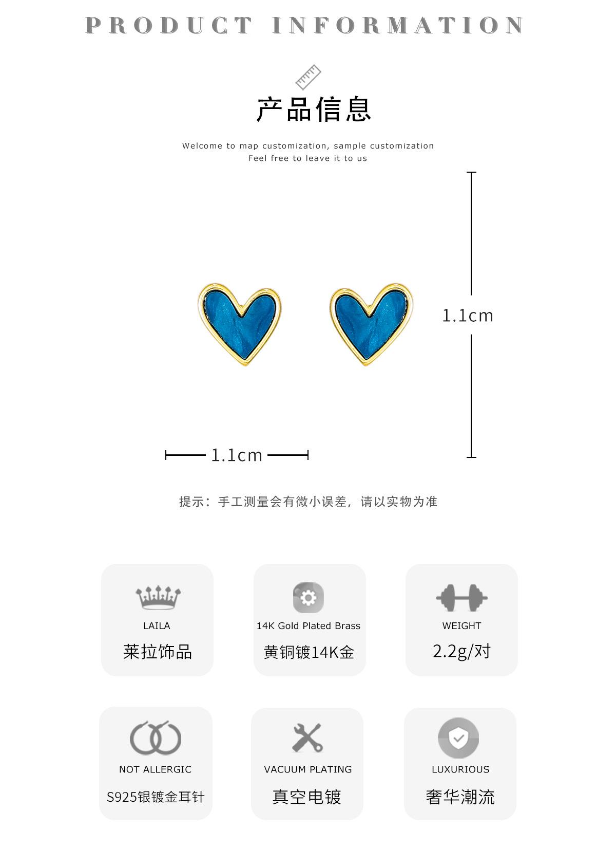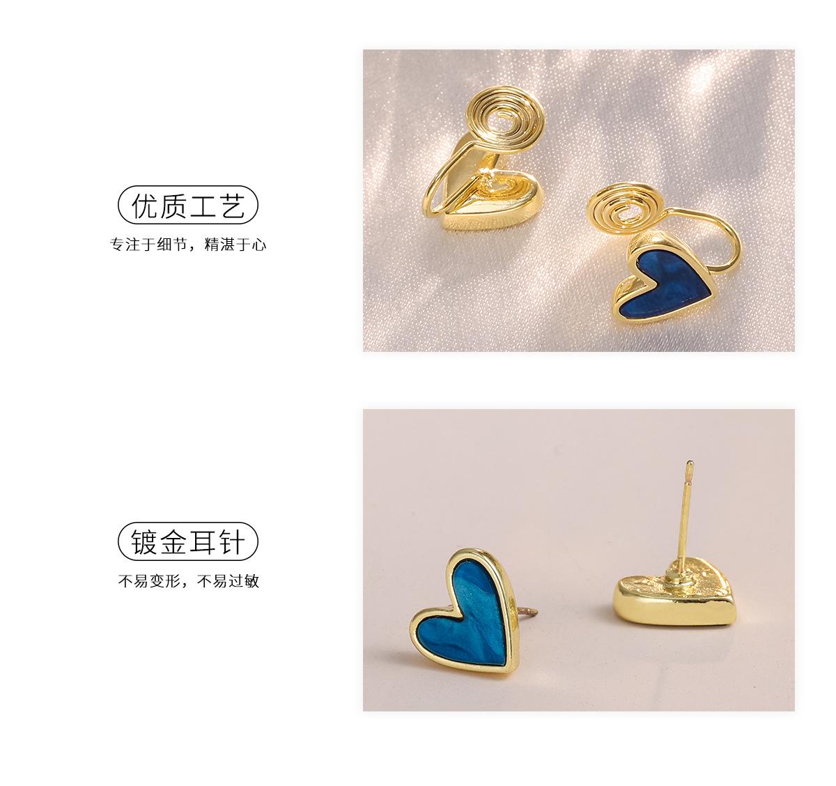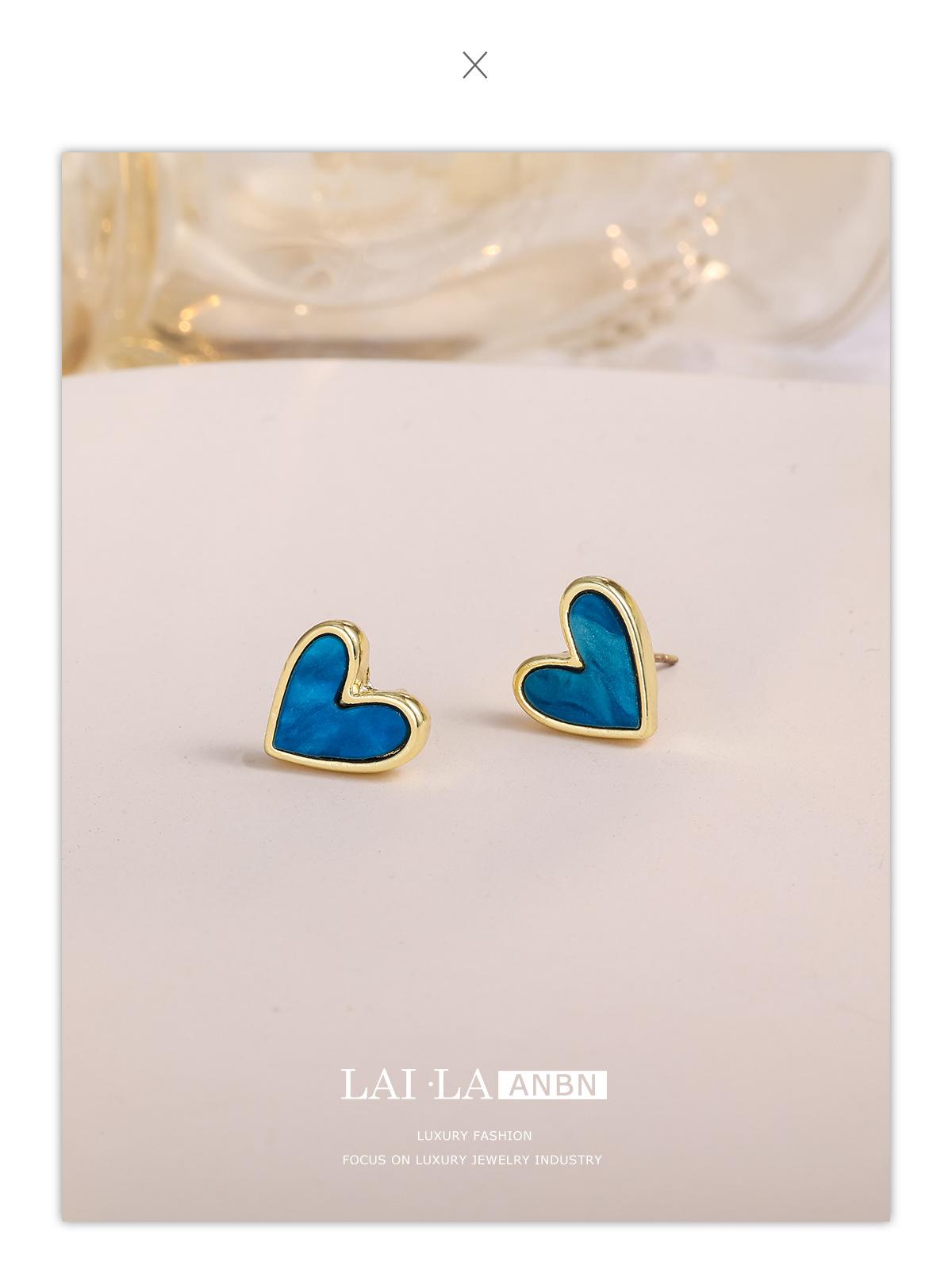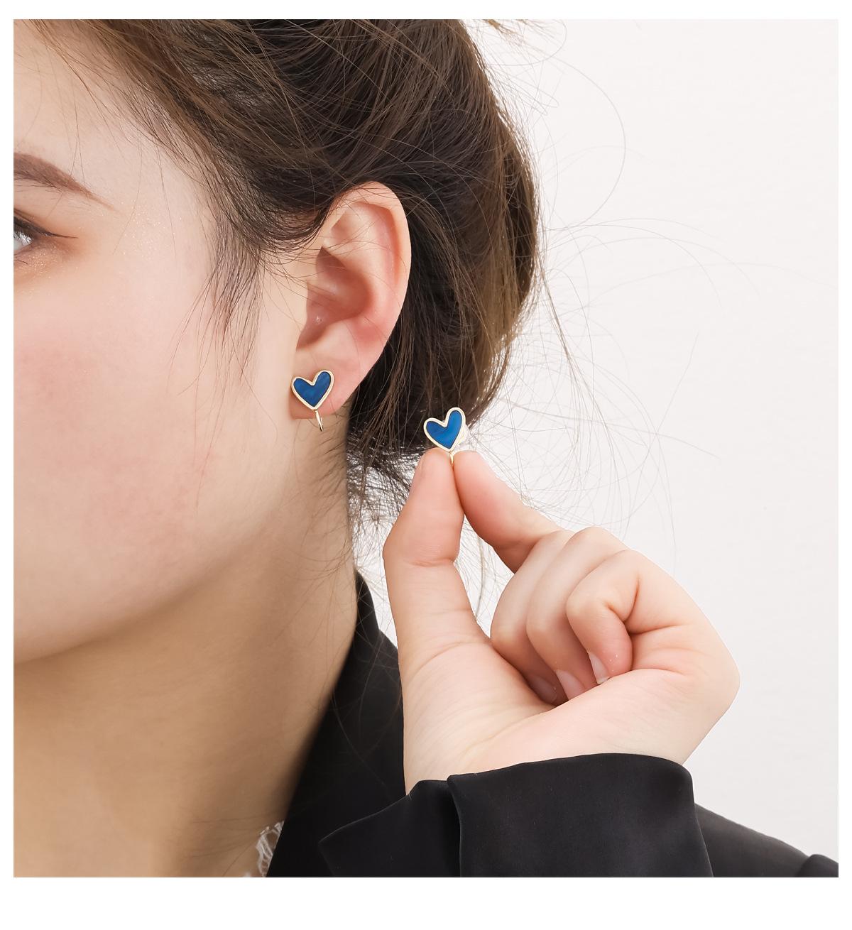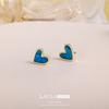 Nuevos Pendientes Nicho de Moda Lindos de Alta Gama para Mujer Pendientes Estilo Coreano Clips para Oreja Pendientes de Tuerca Corazón Azul Klein